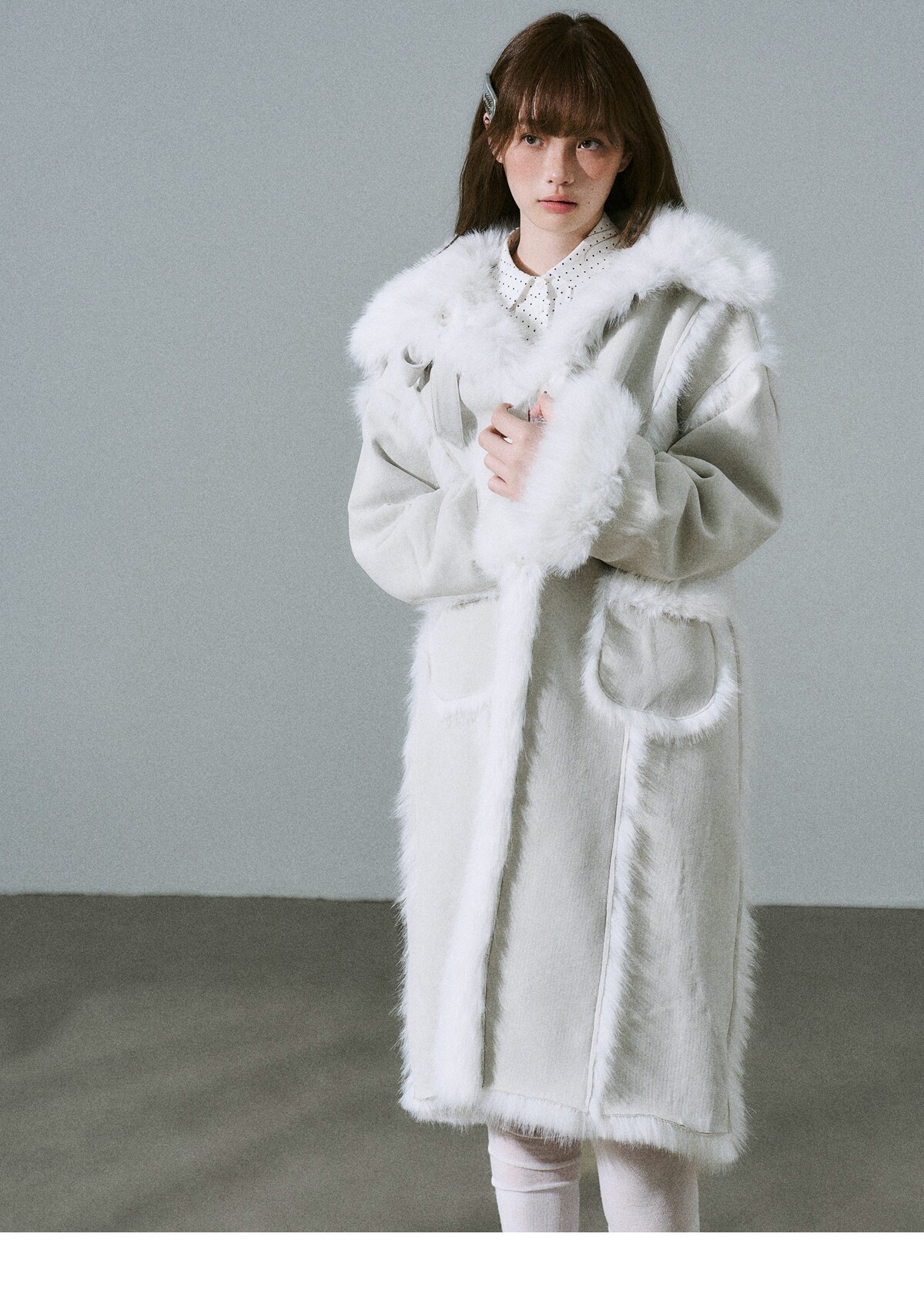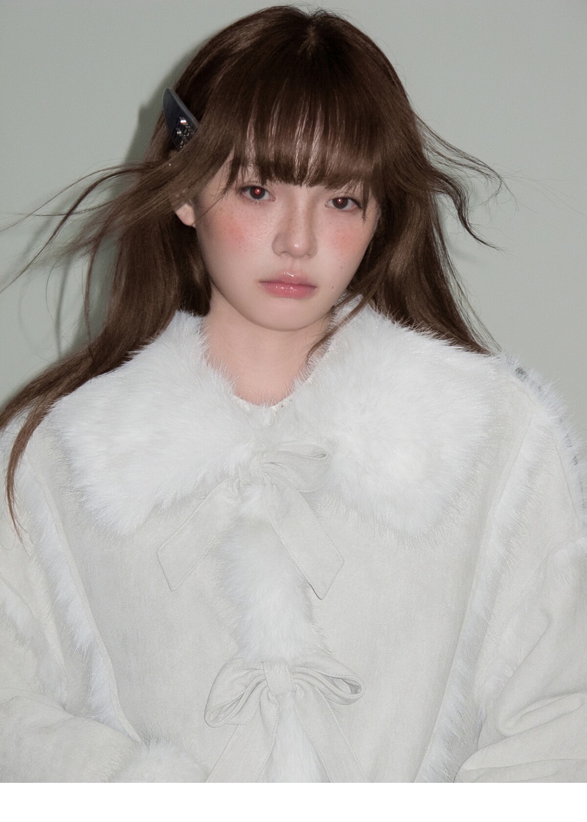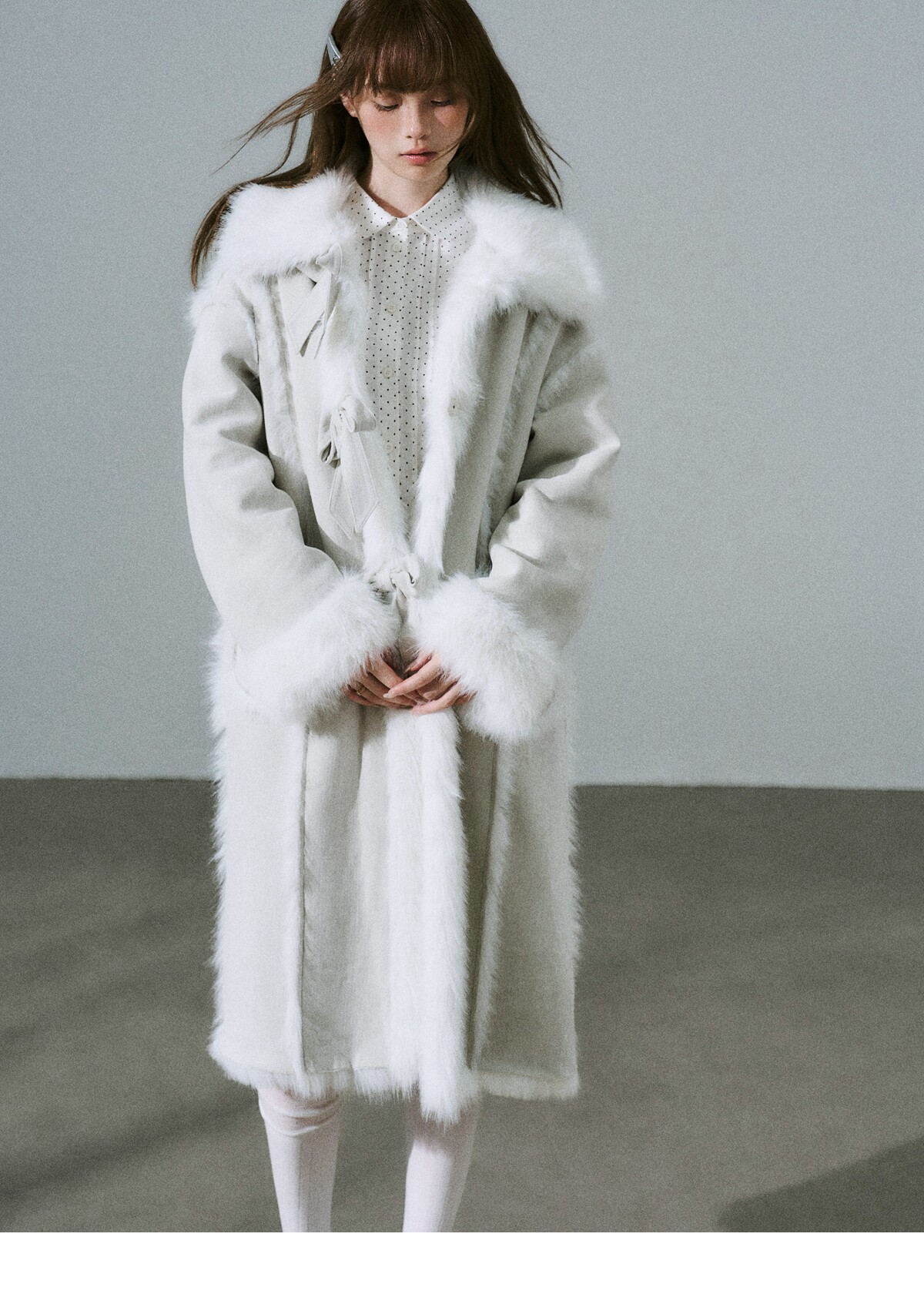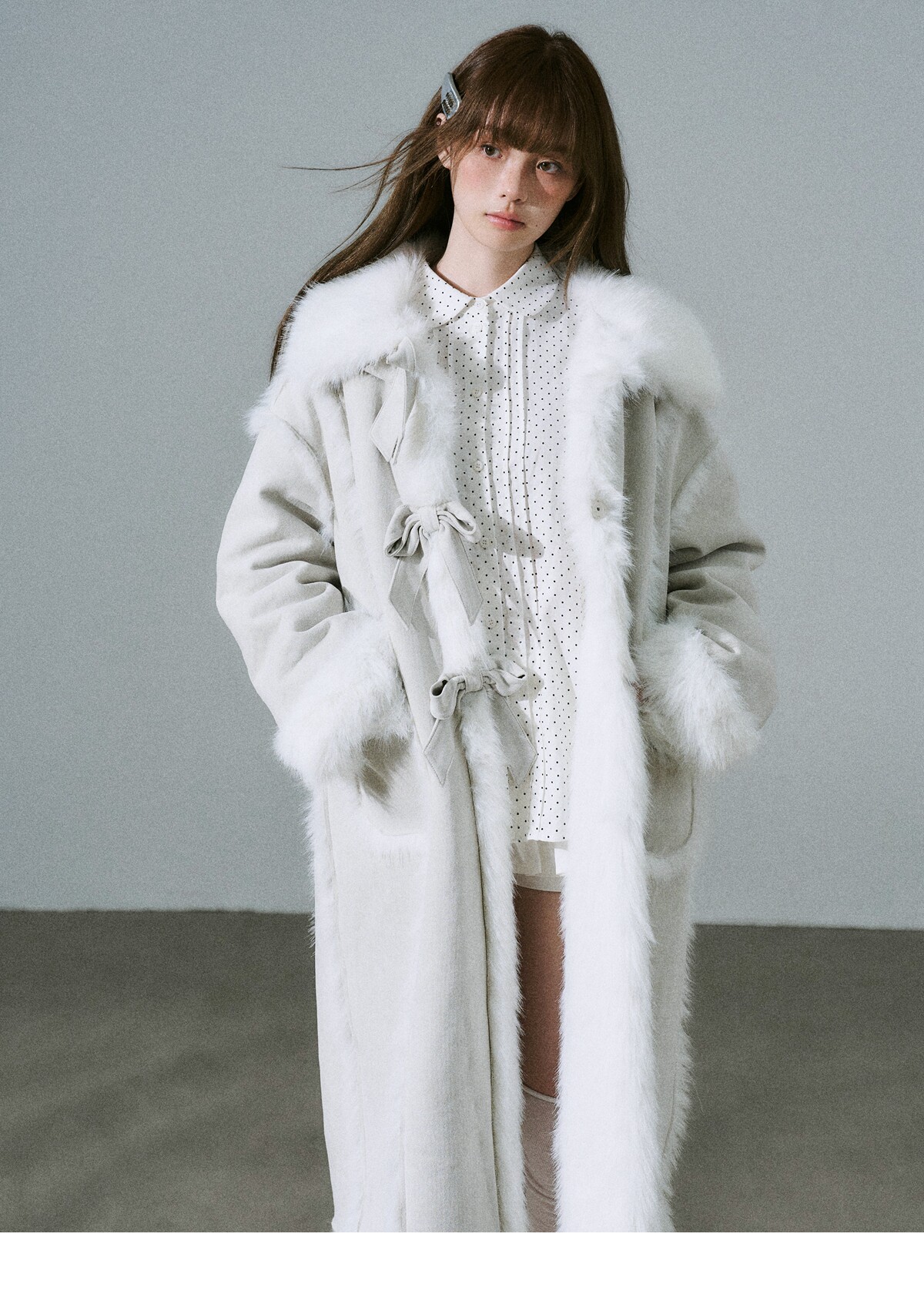 Bow Detail Fake Fur Trimmed Coat NA8825
