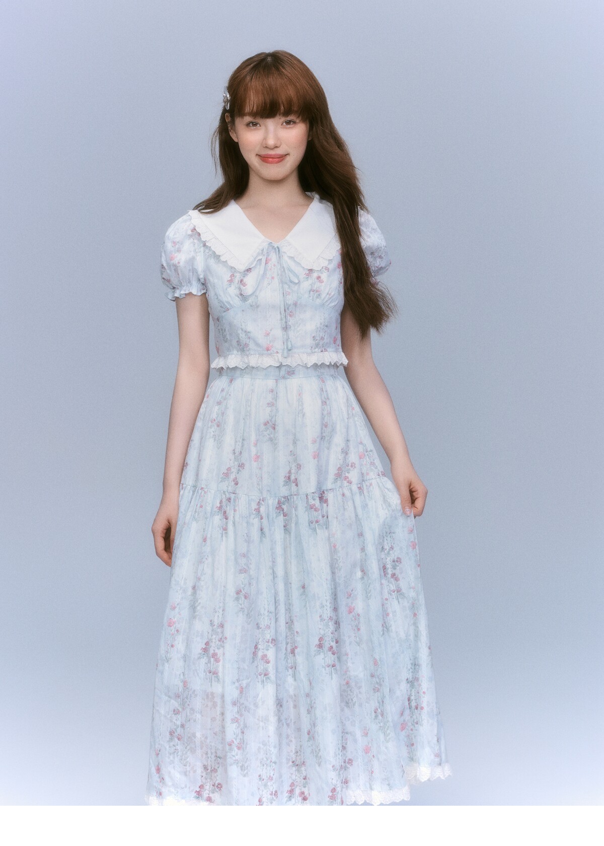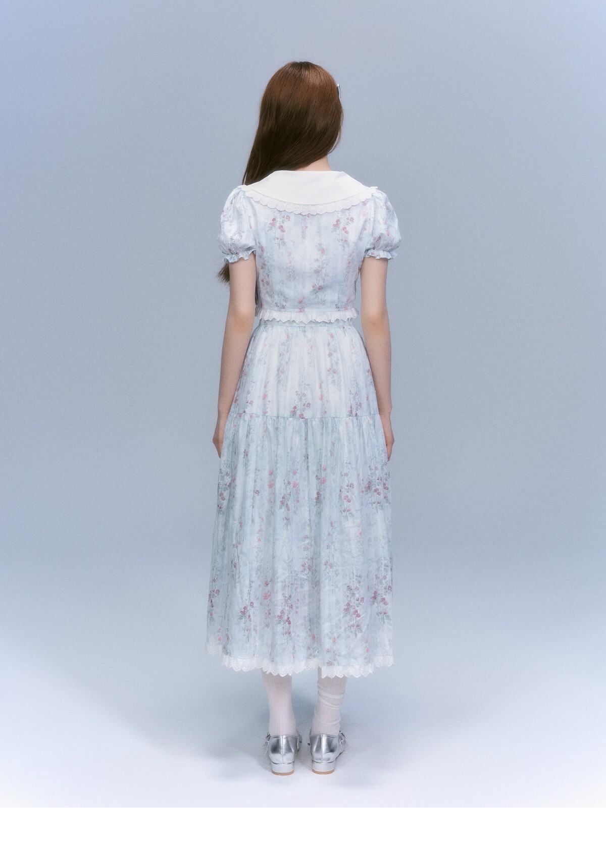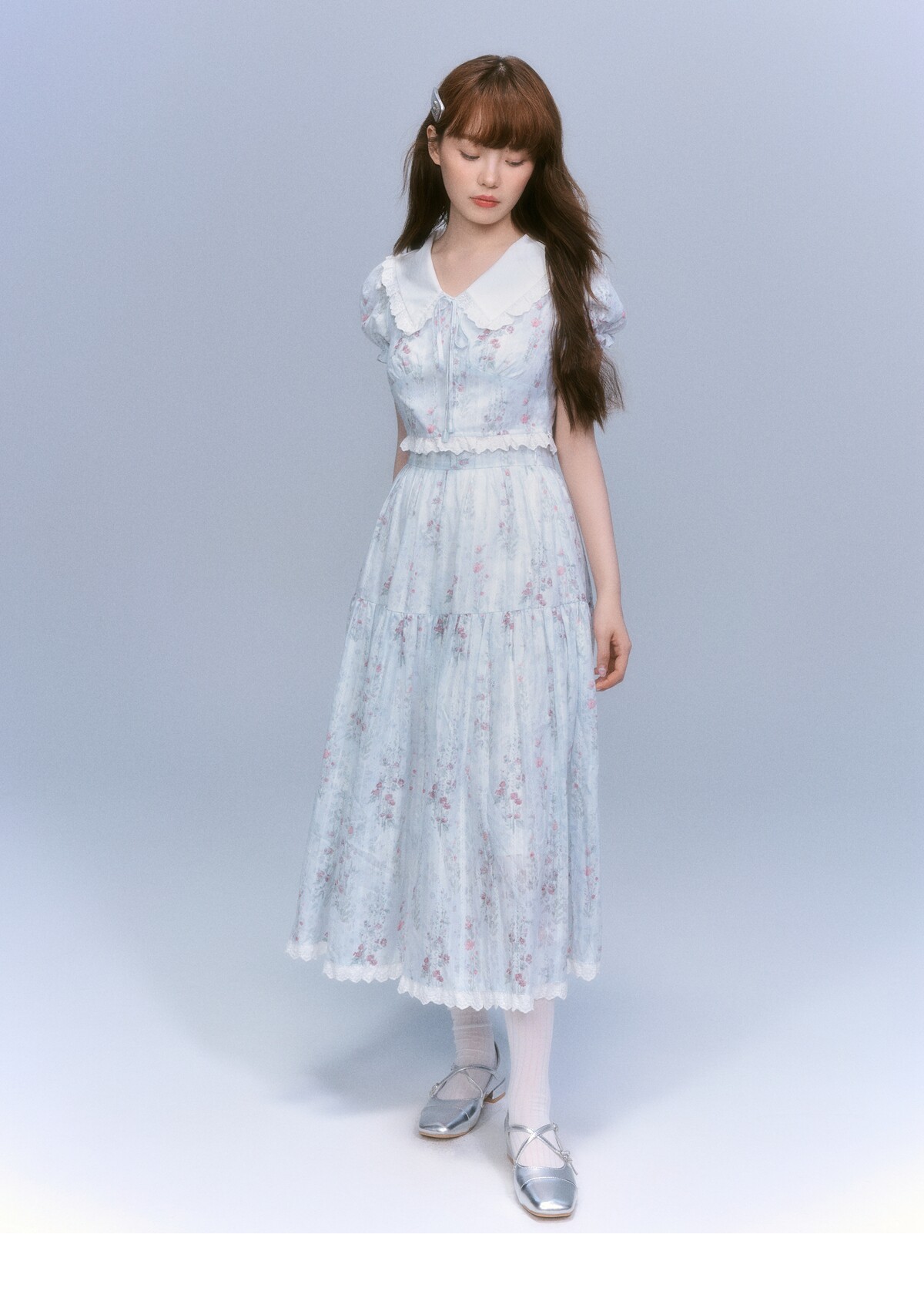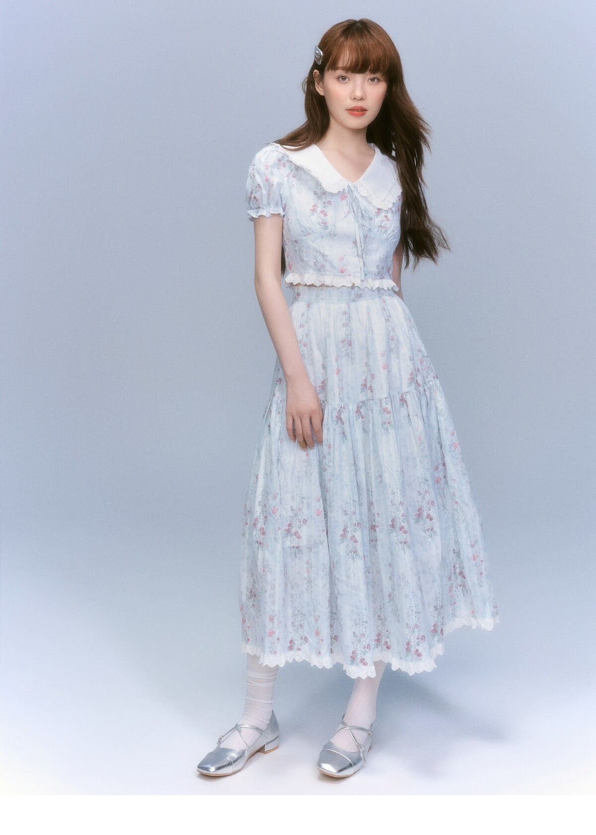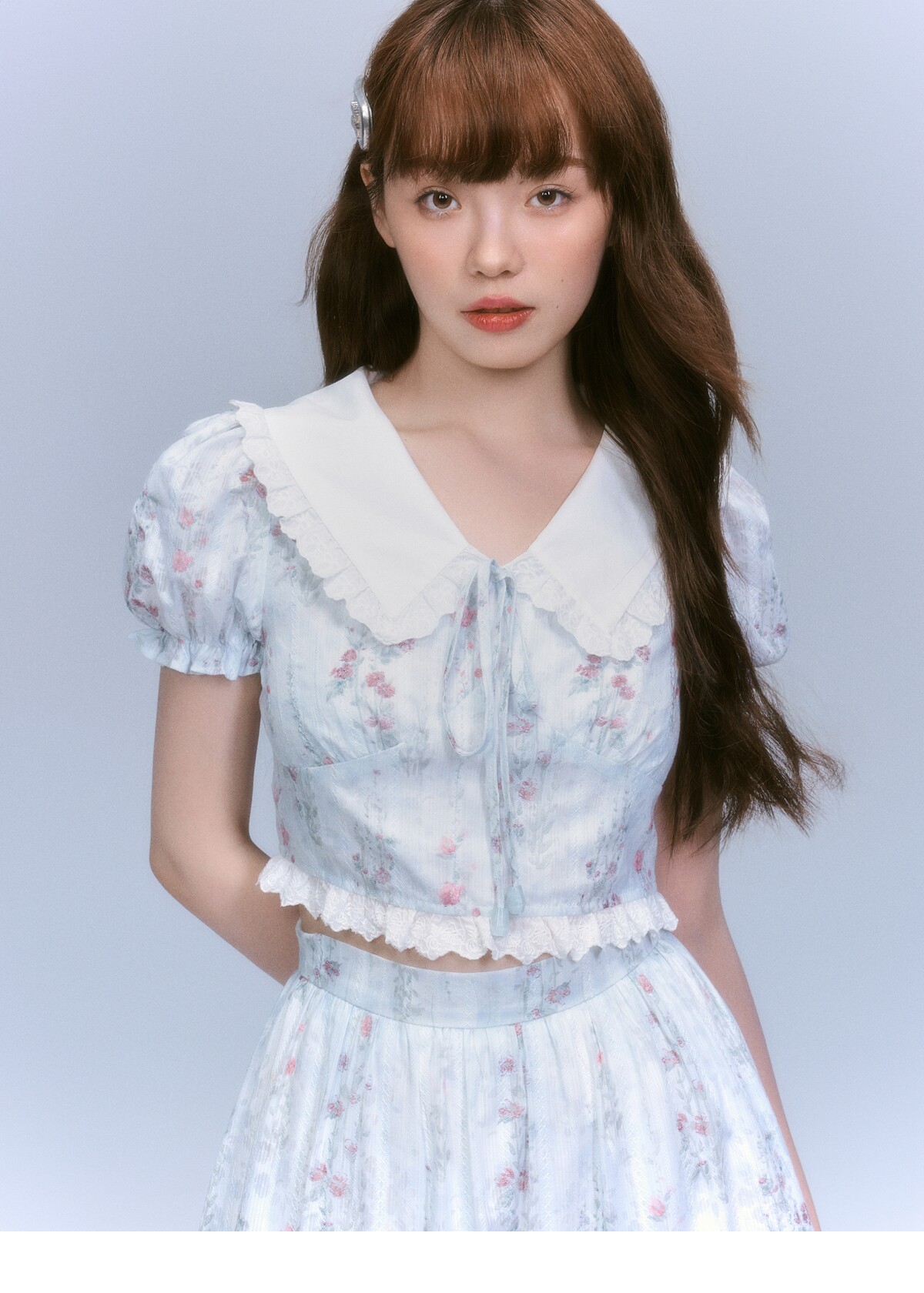 Floral-Print Blouse & Lace Trim Flared Skirt Setup NA8827
