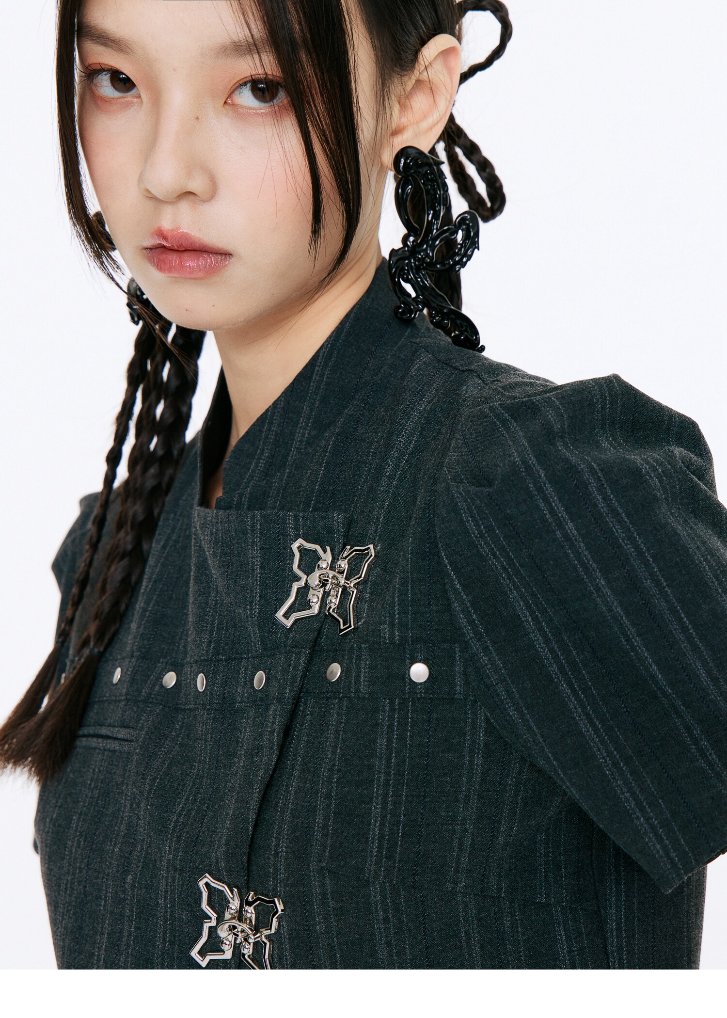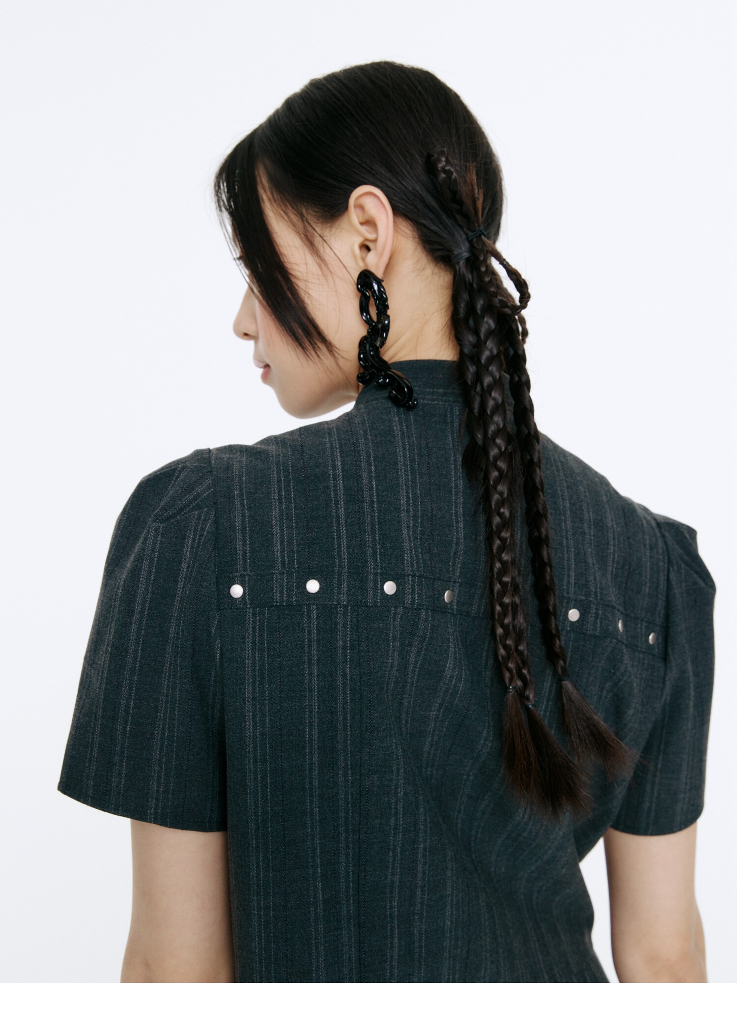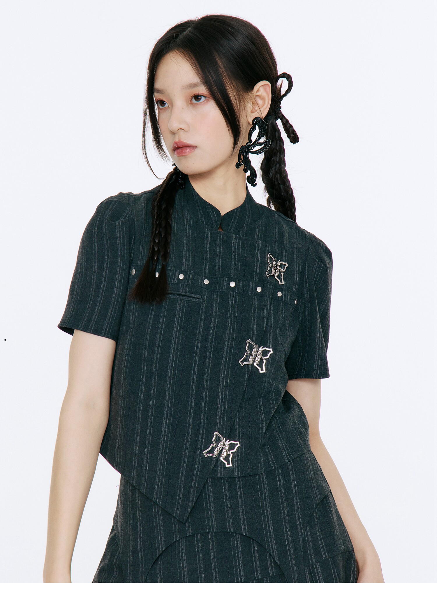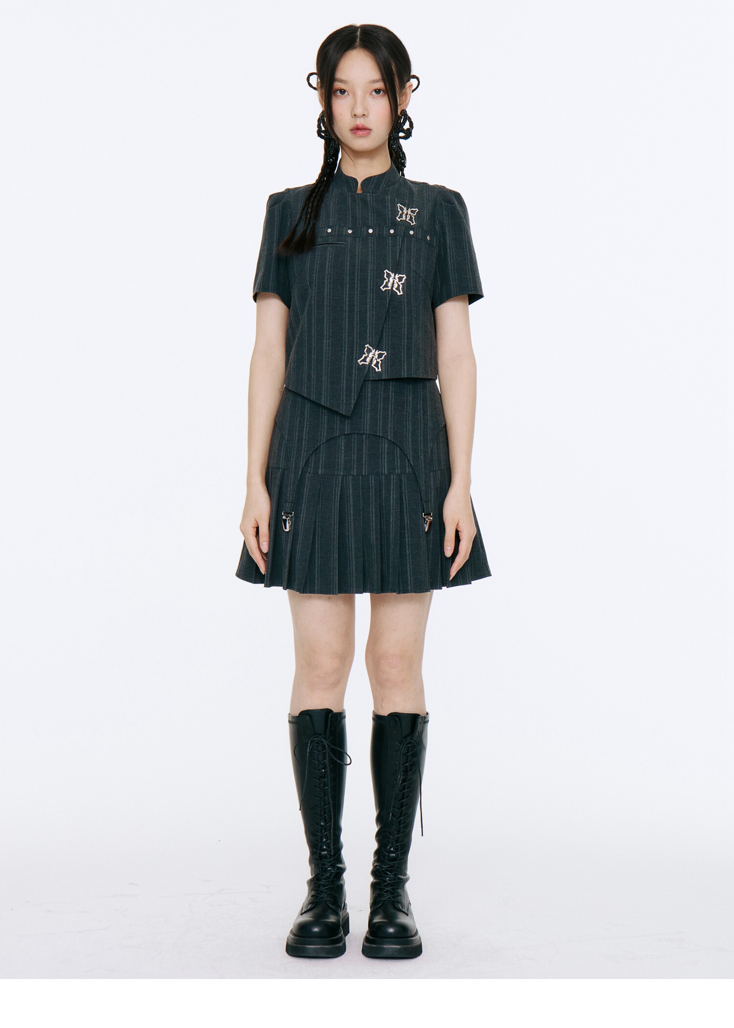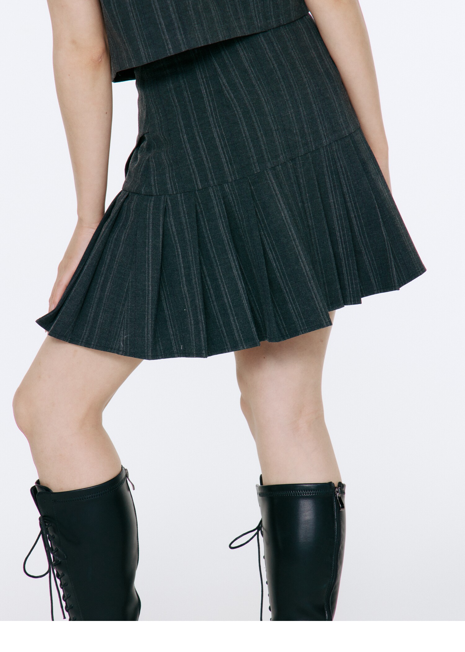 Bow Detail Pinstripe Cropped Shirt & Pleated Skirt Setup NA8838