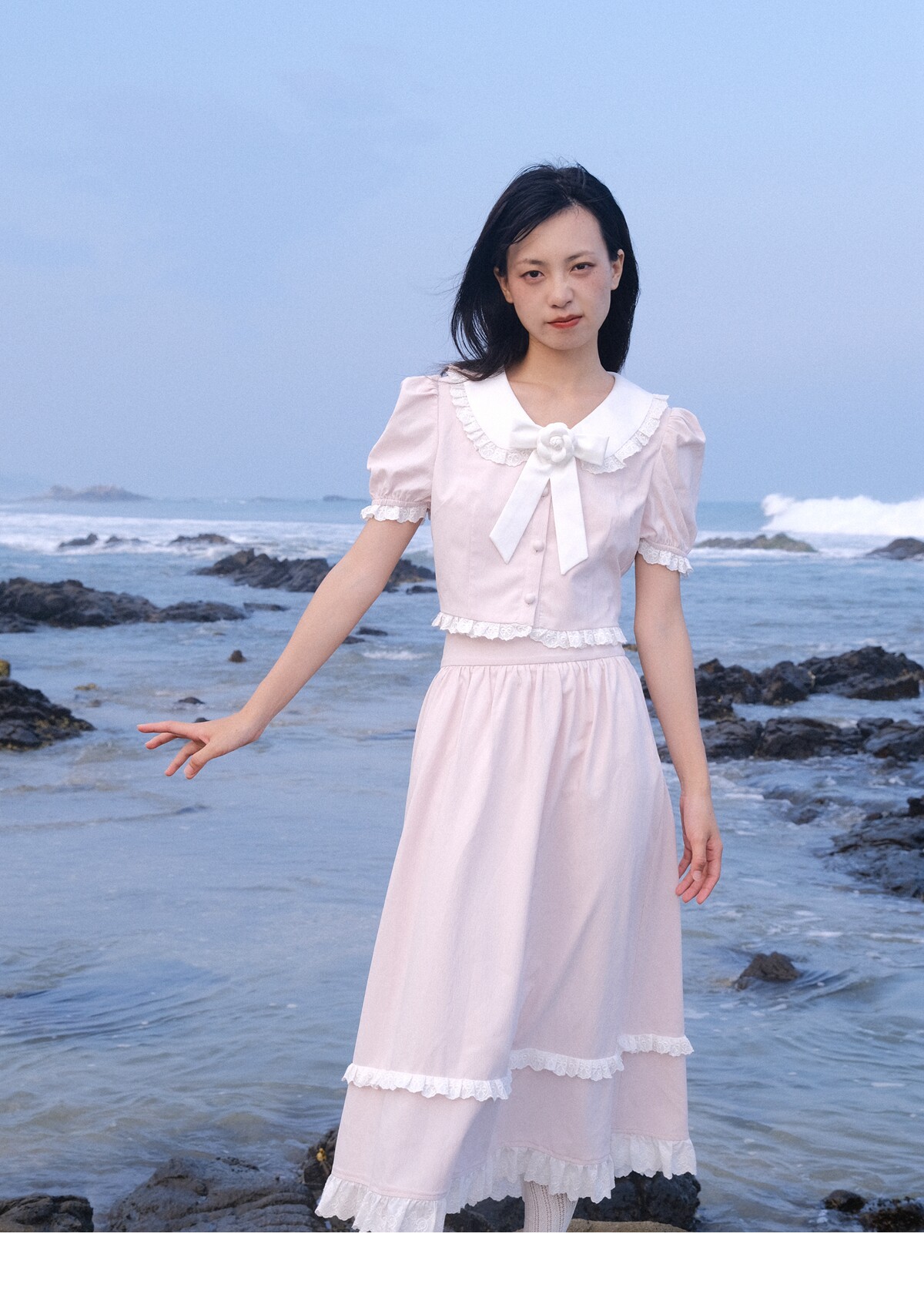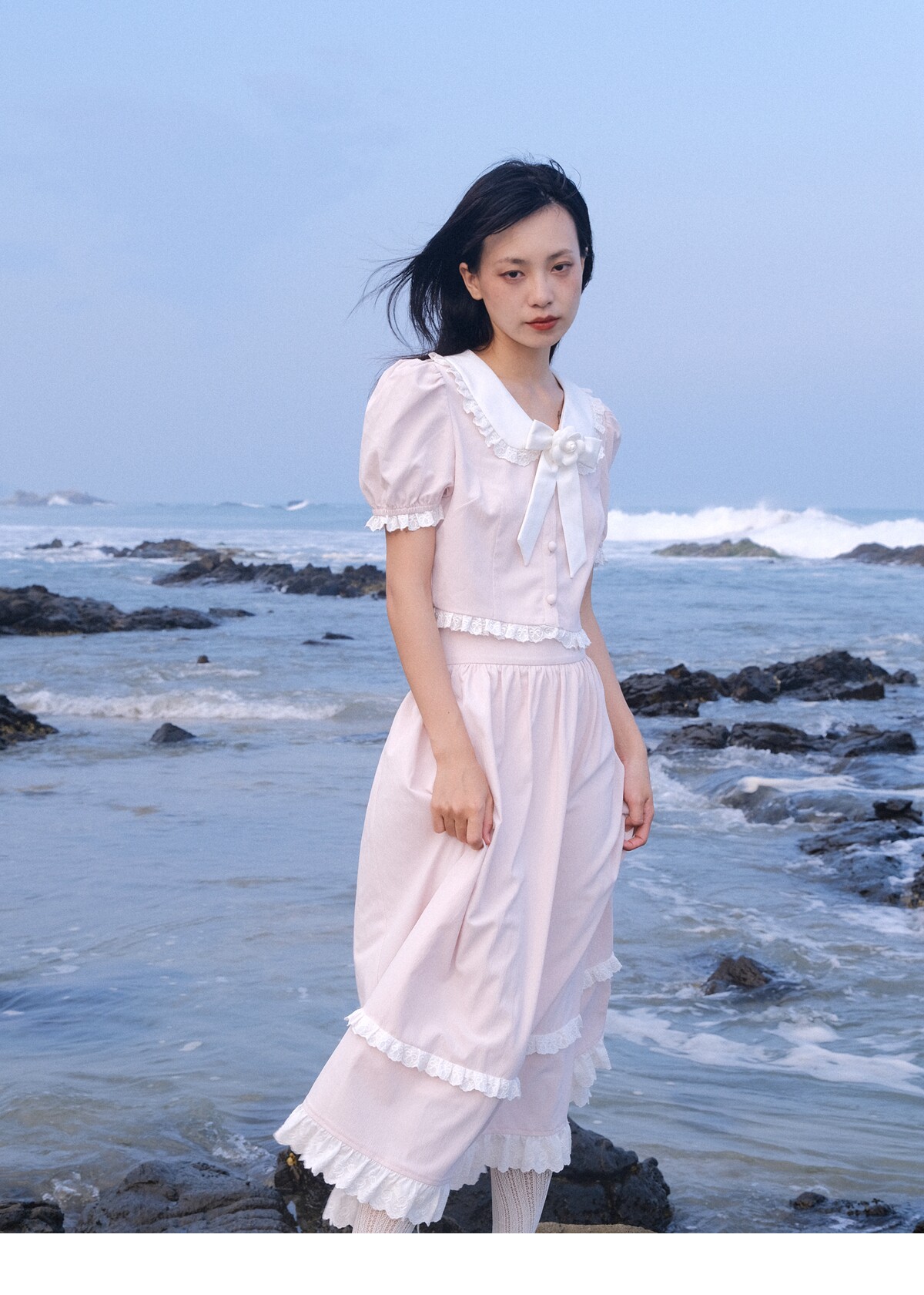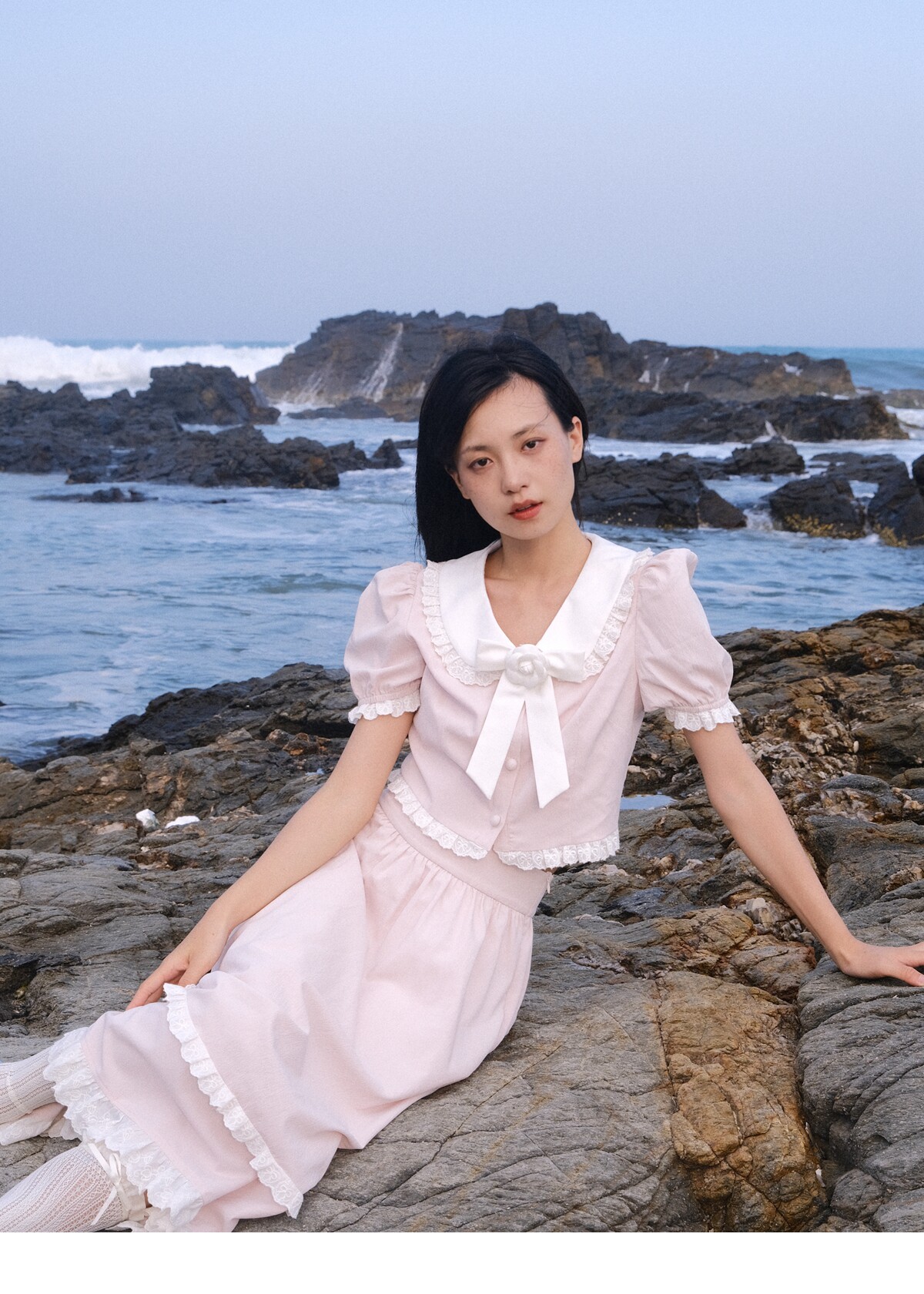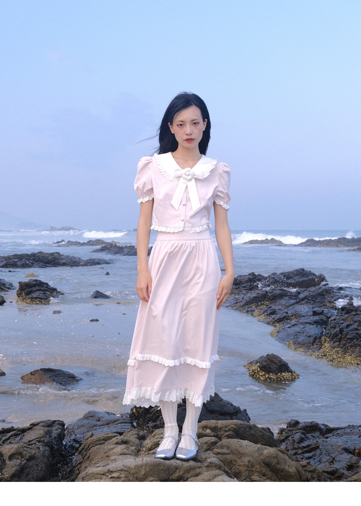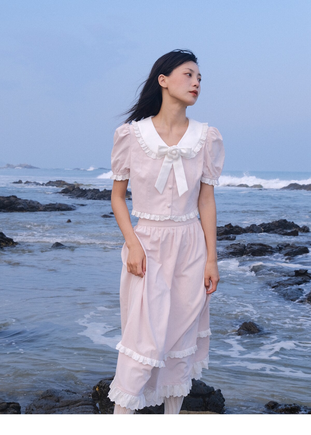Lace Details Bow Blouse & Lace Trim Skirt Setup NA8851