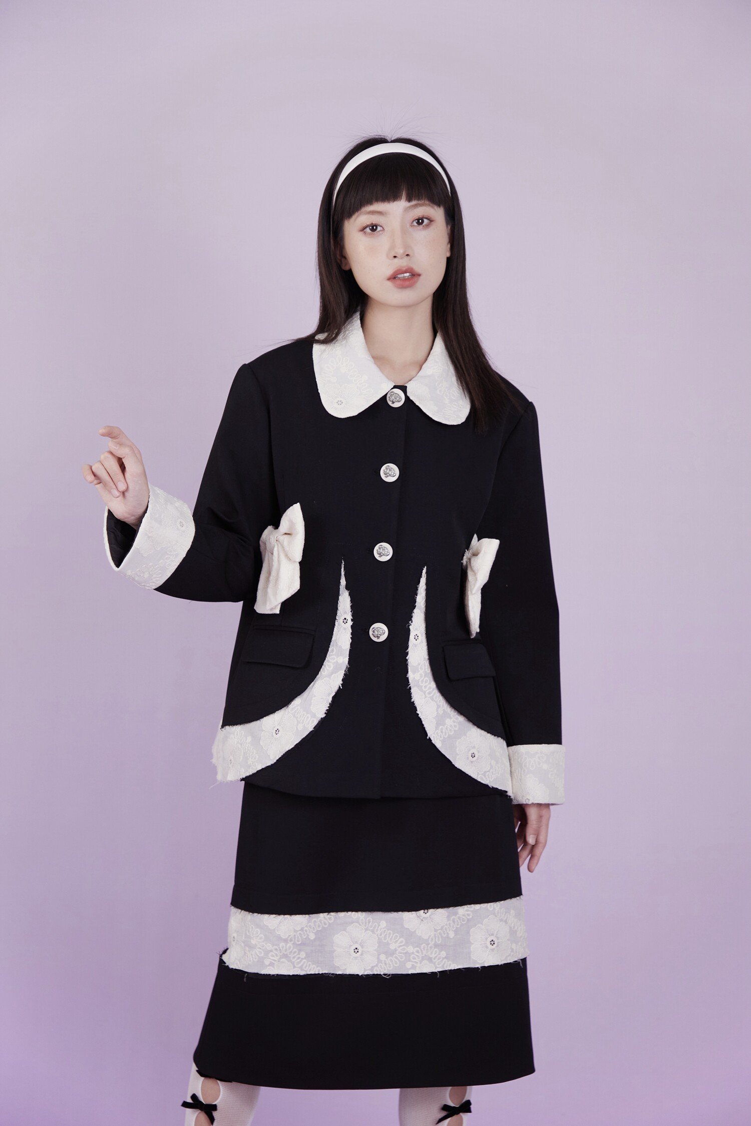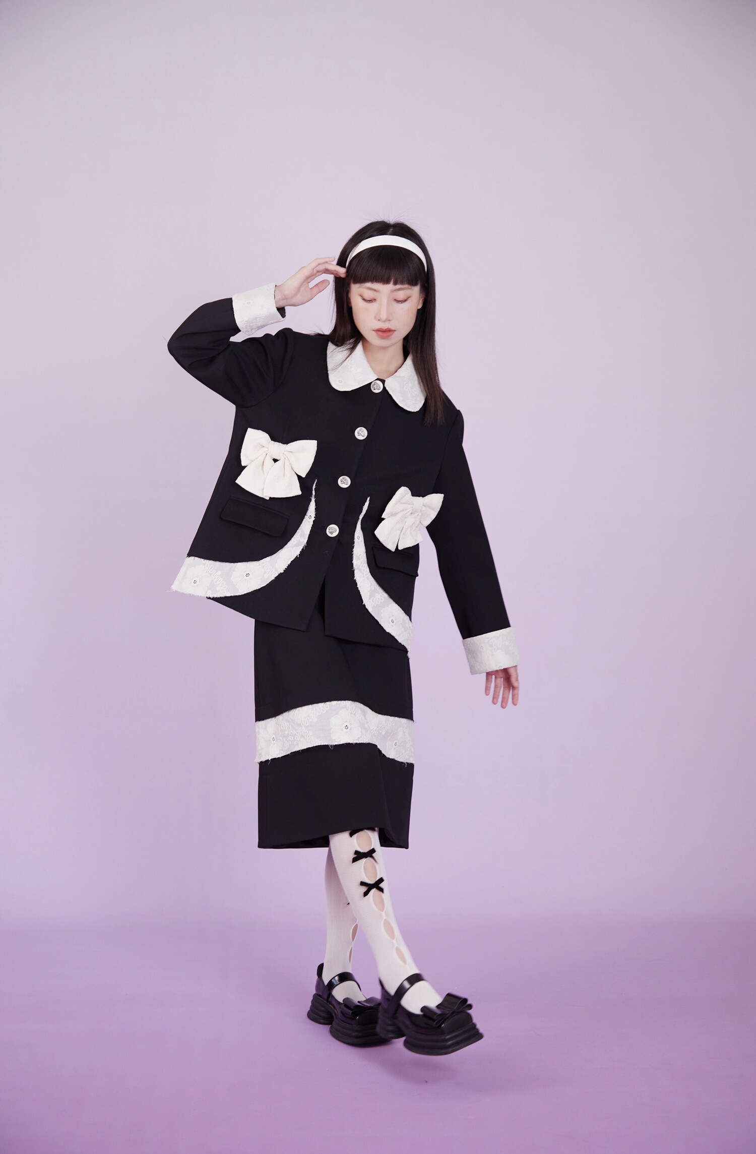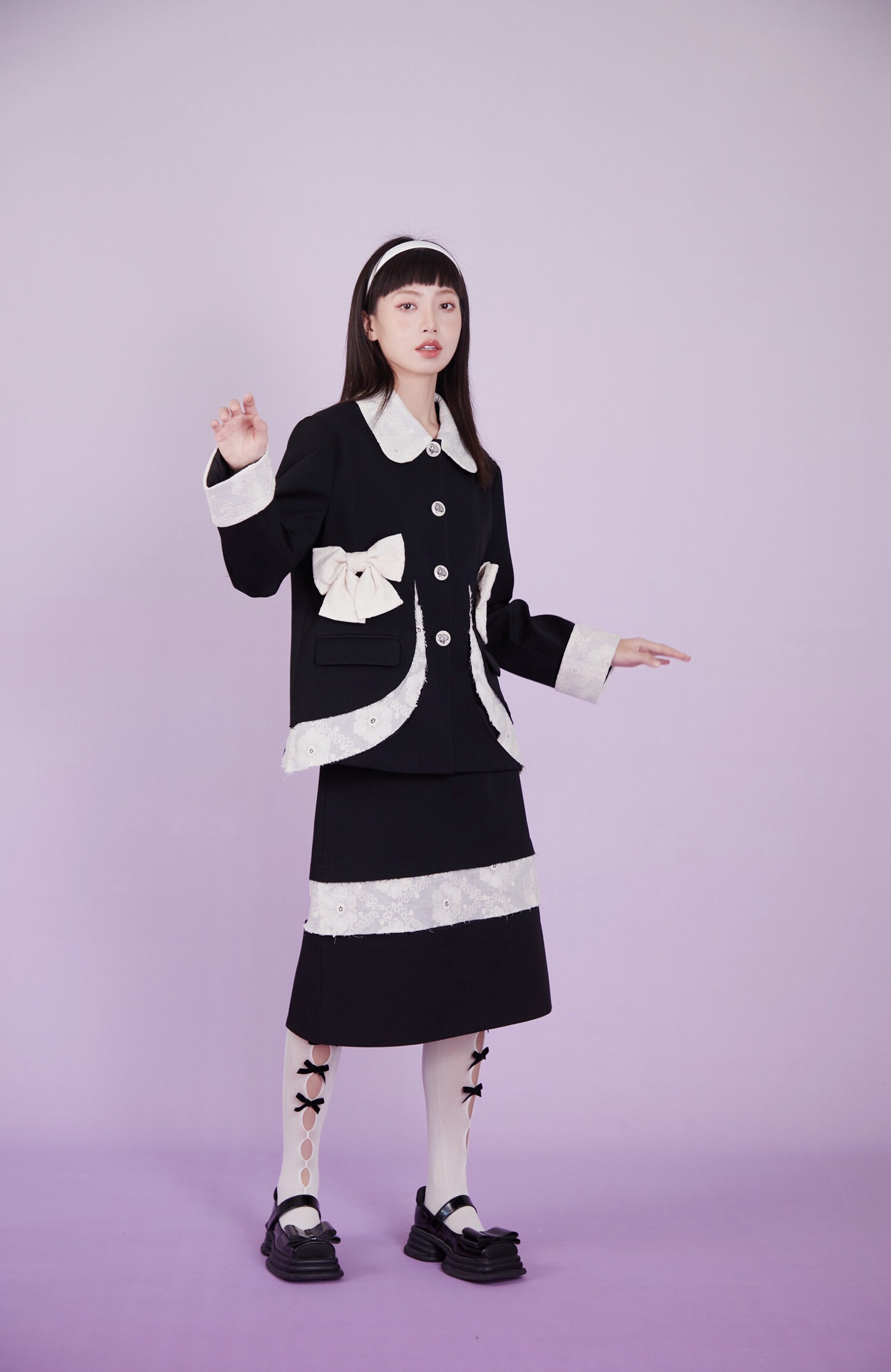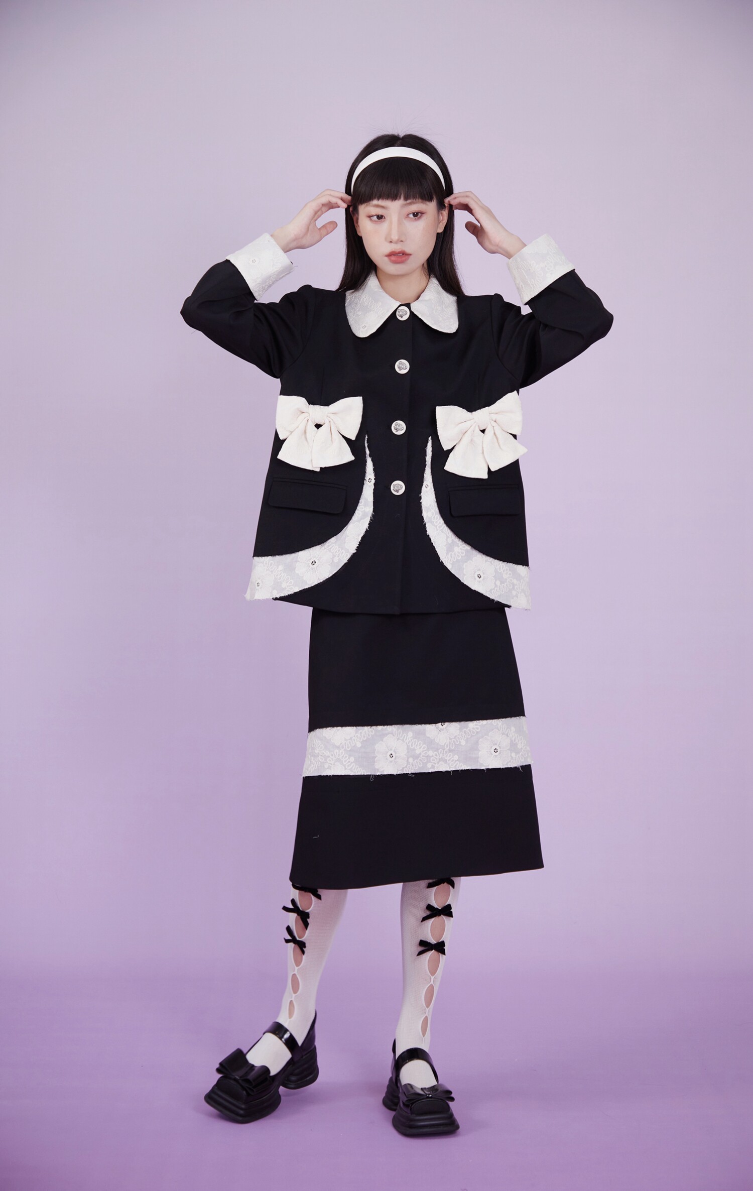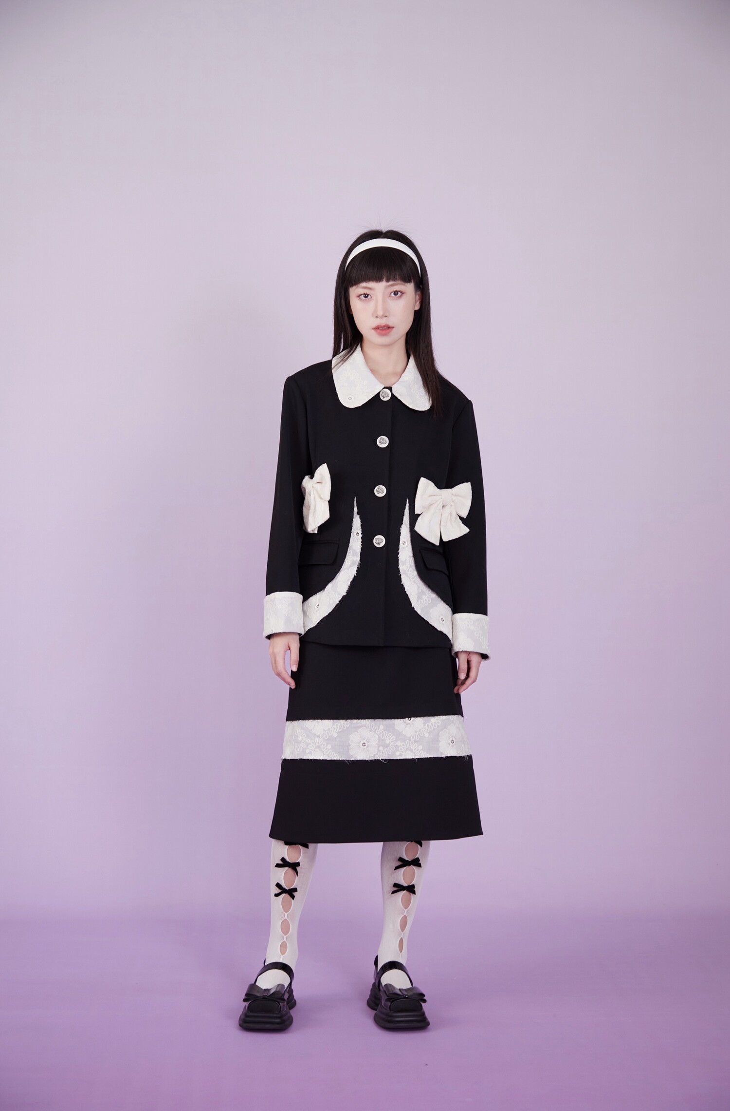 Bow-Detail Jacket & Midi Skirt Setup NA8862
