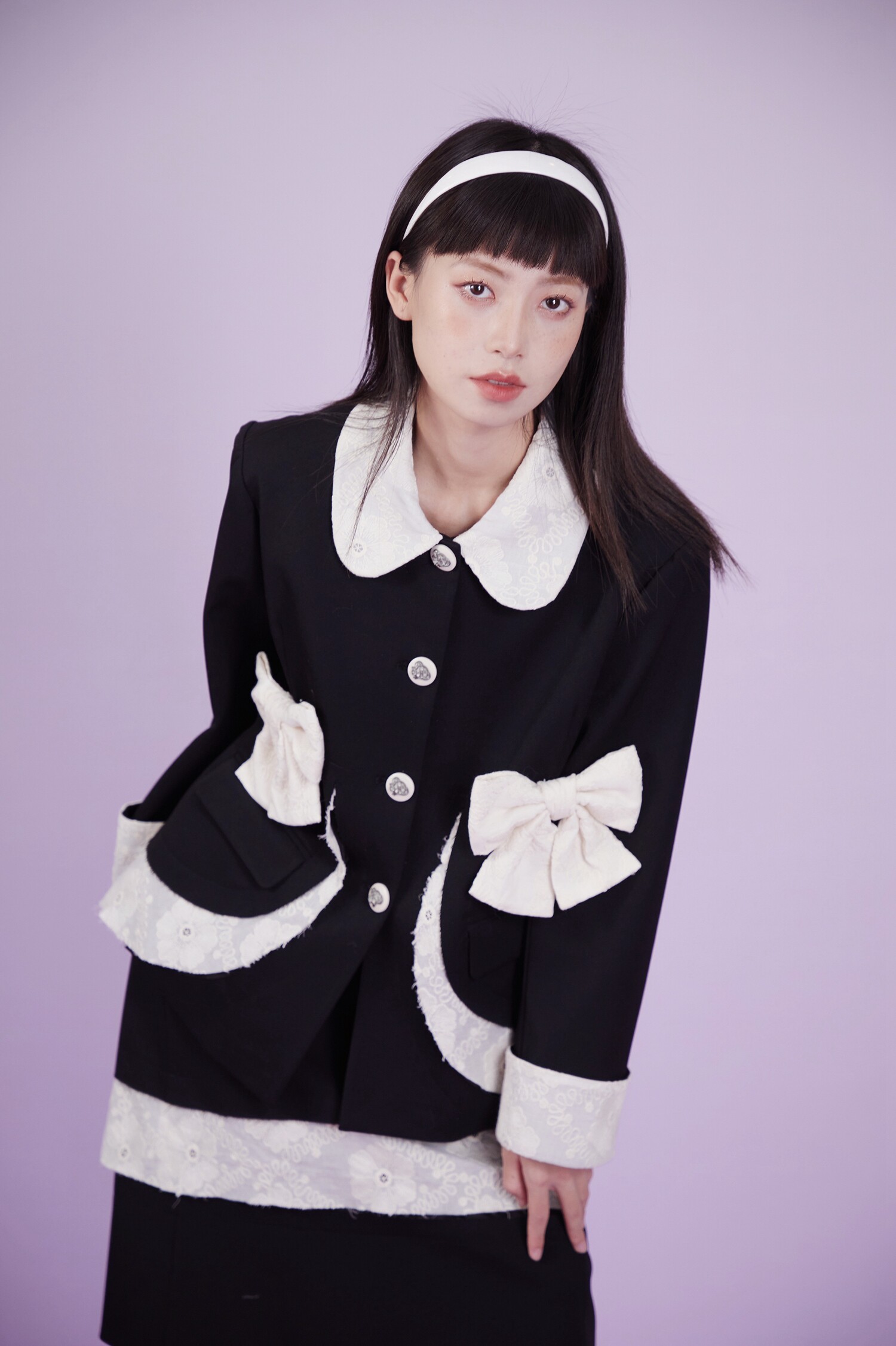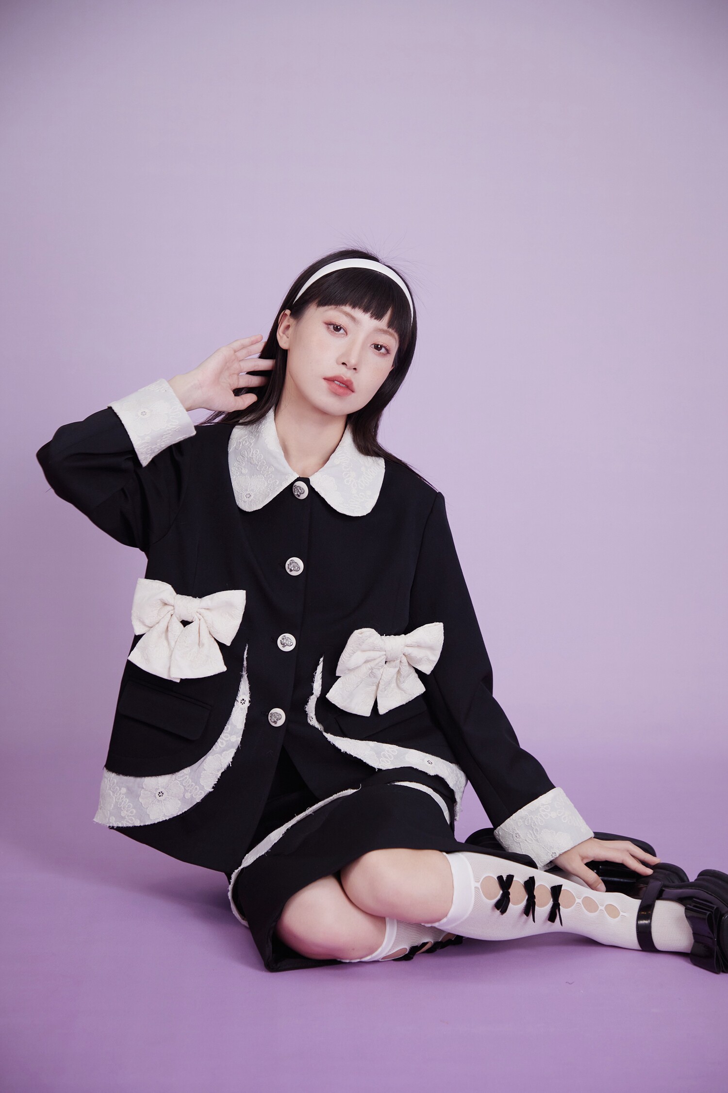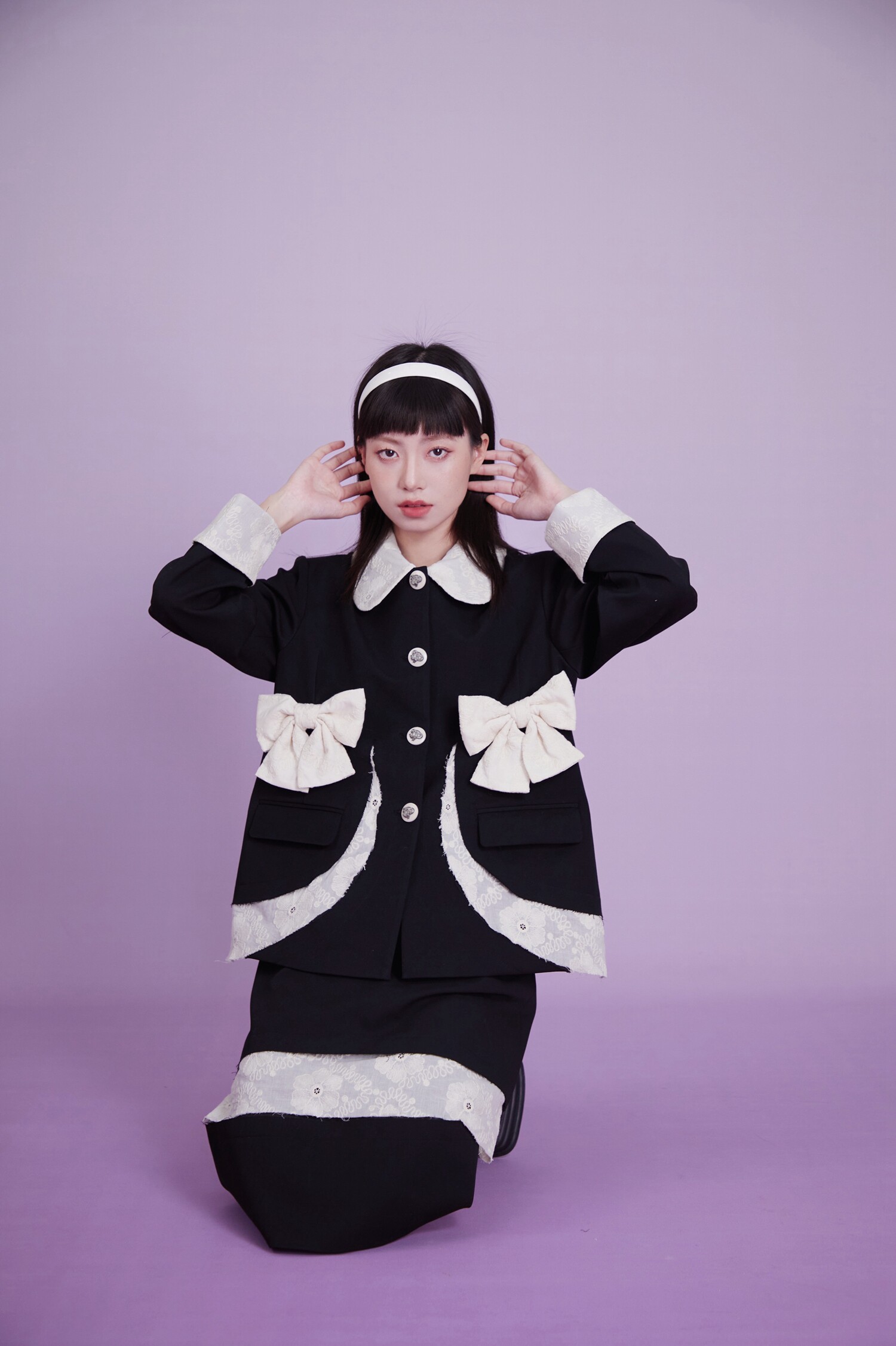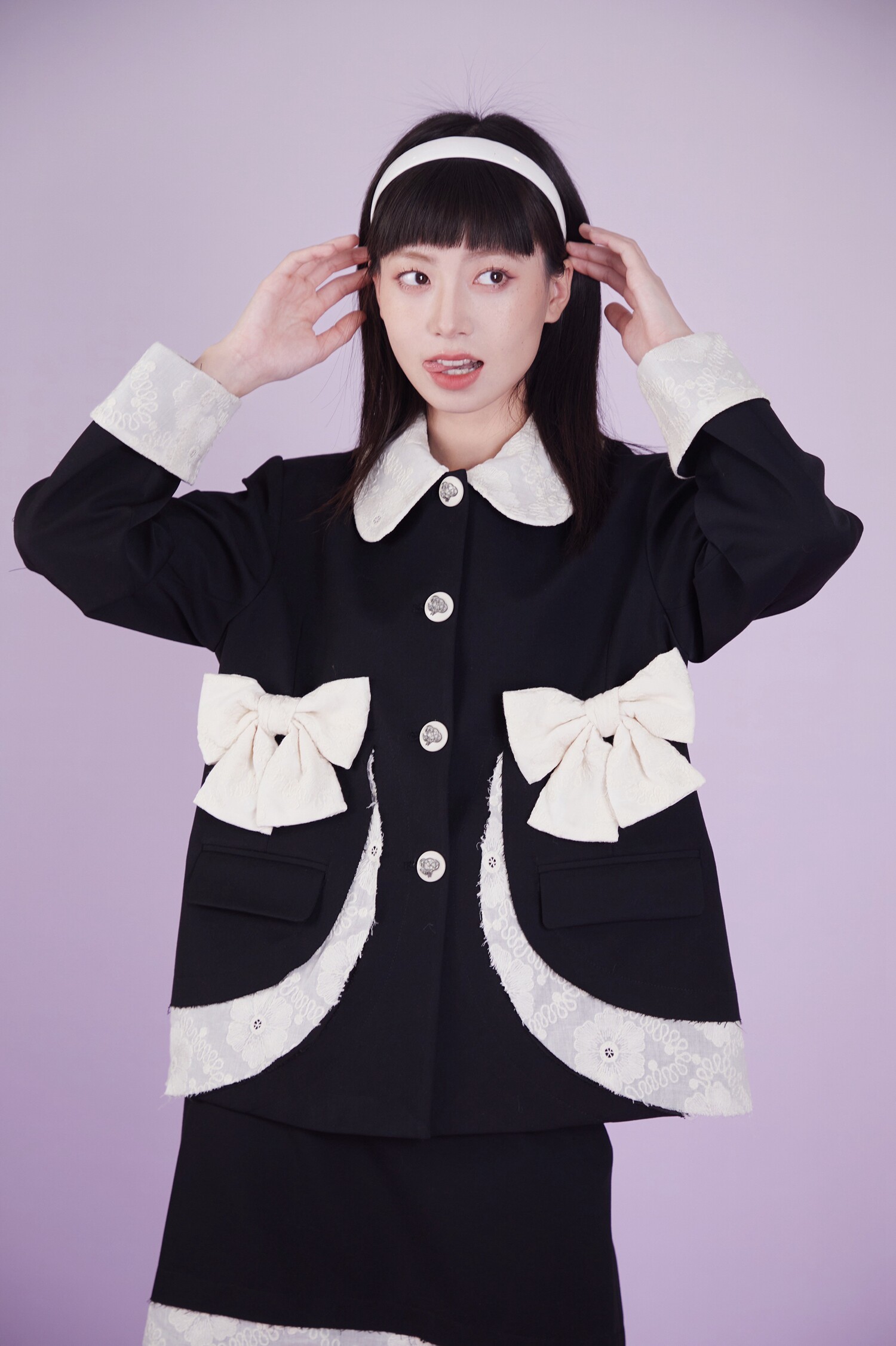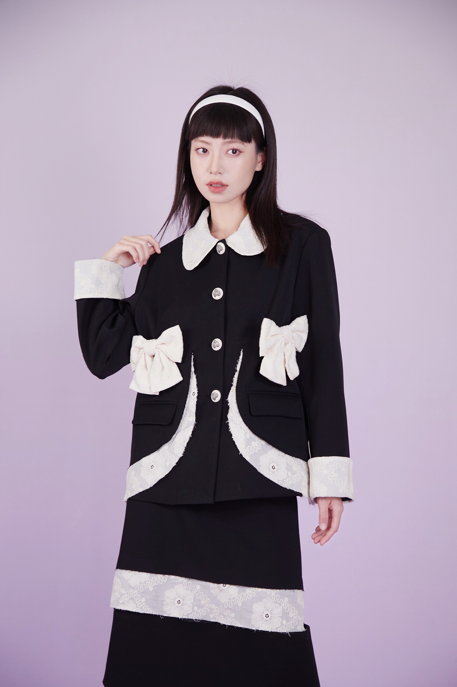 Bow-Detail Jacket & Midi Skirt Setup NA8862