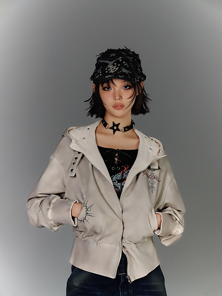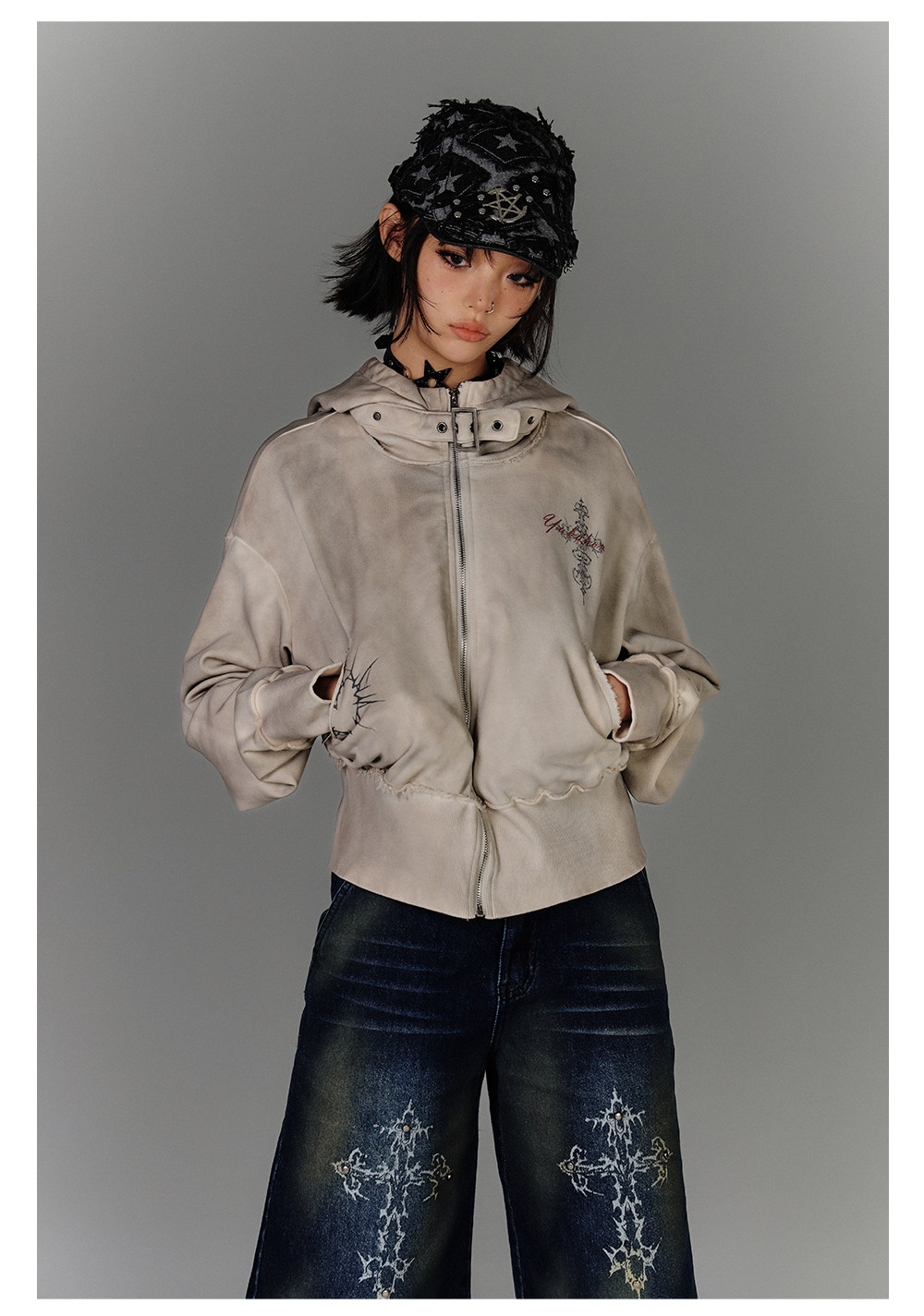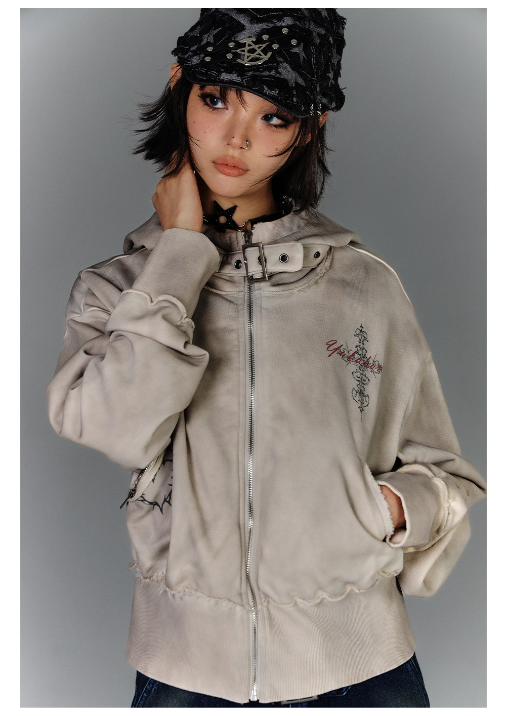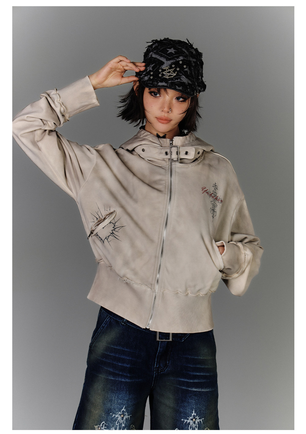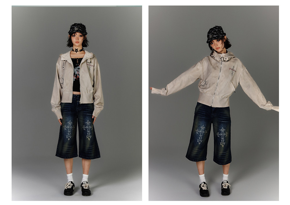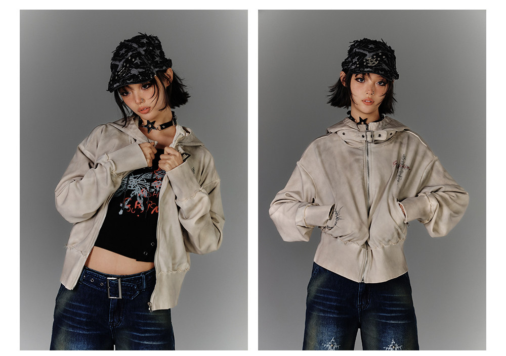 Washed Damage Oversize Zipper Hoodie NA8877
