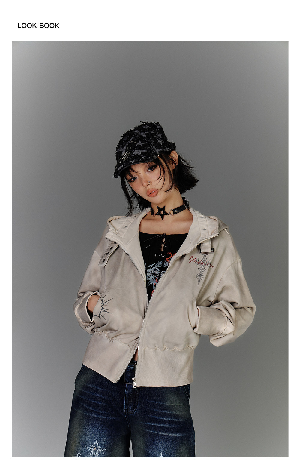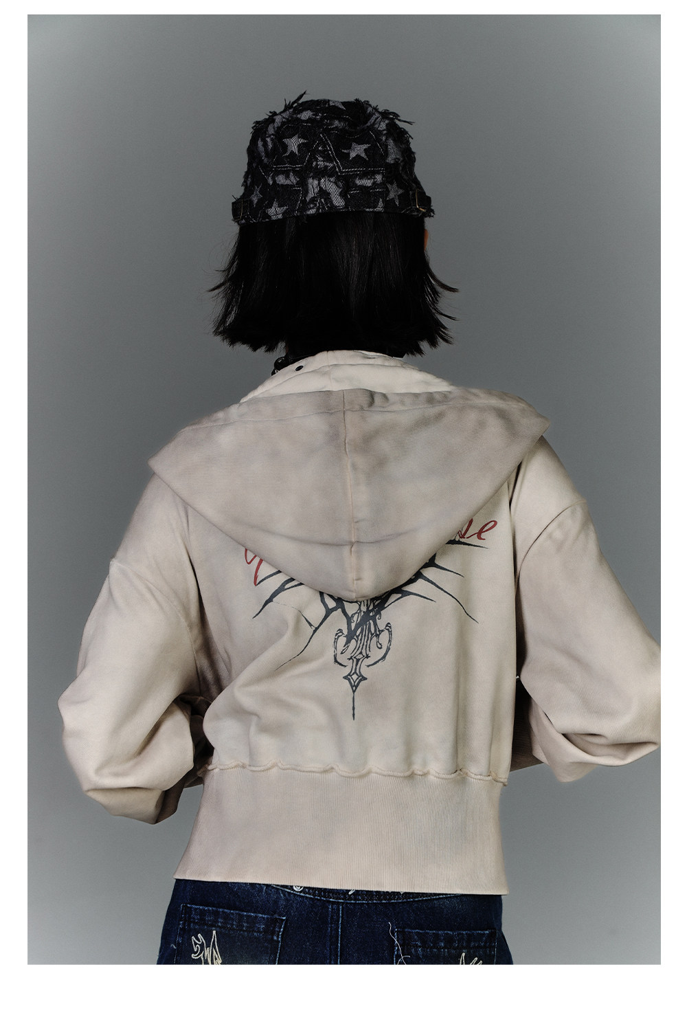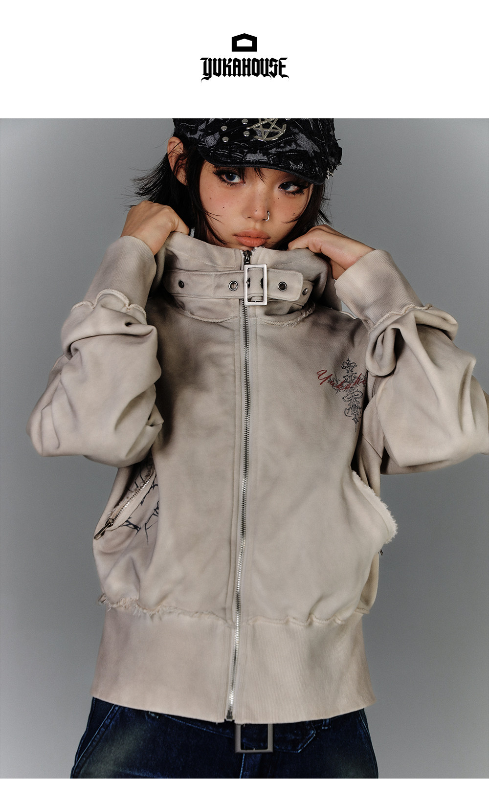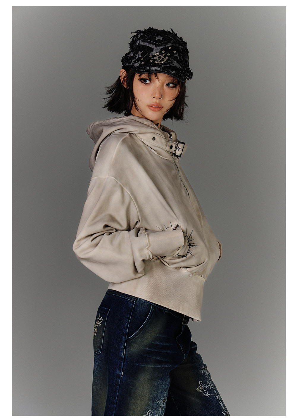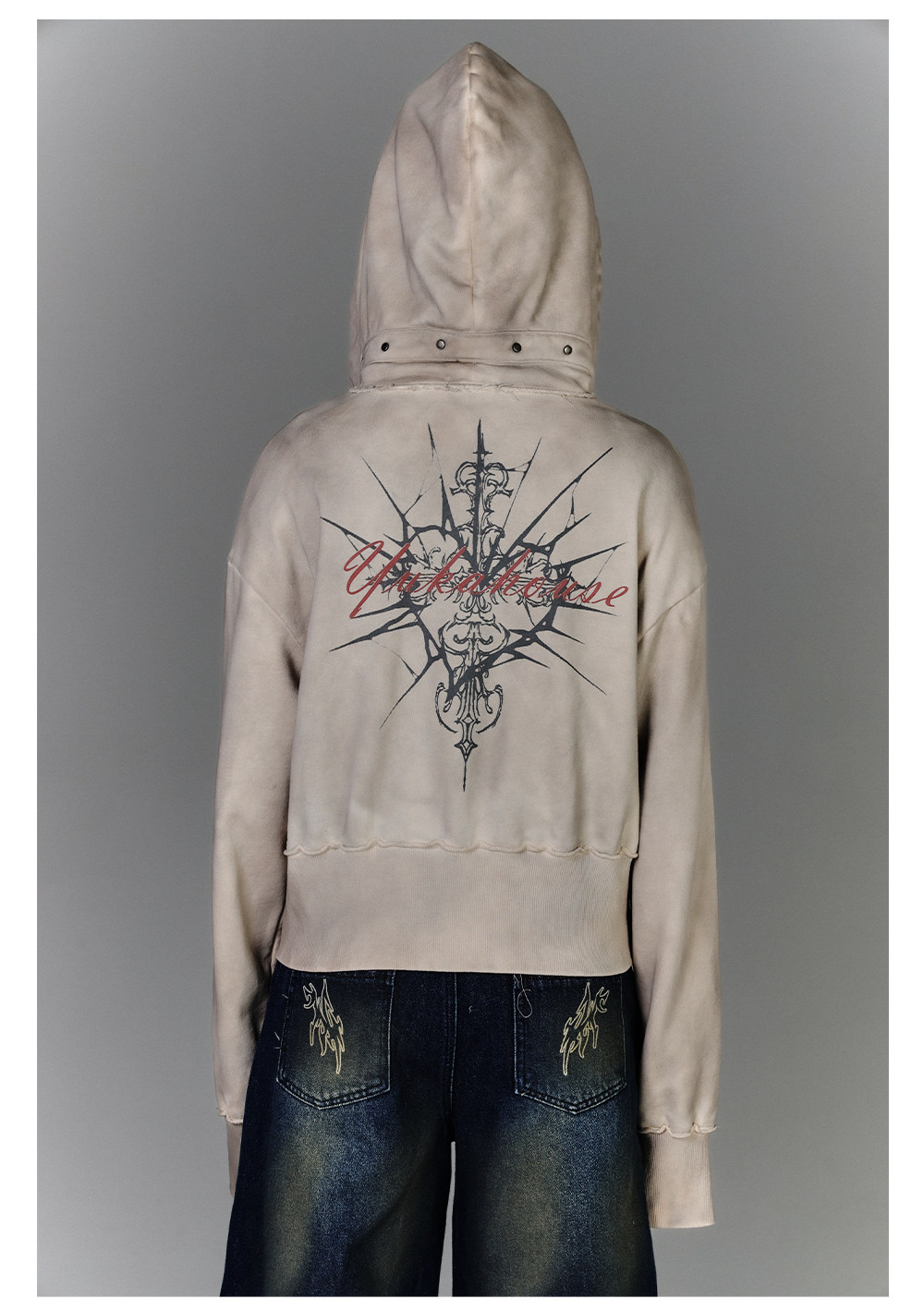 Washed Damage Oversize Zipper Hoodie NA8877