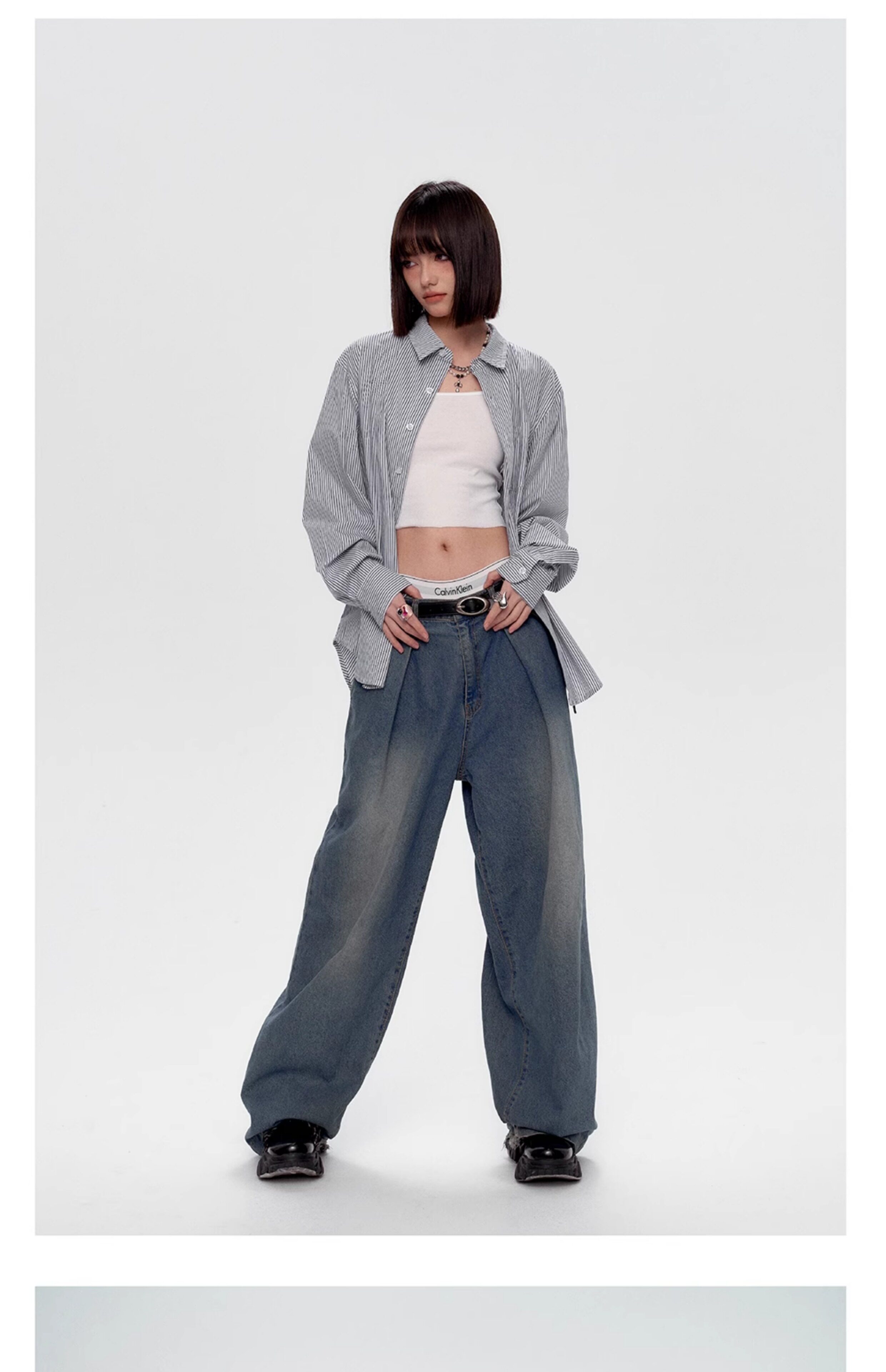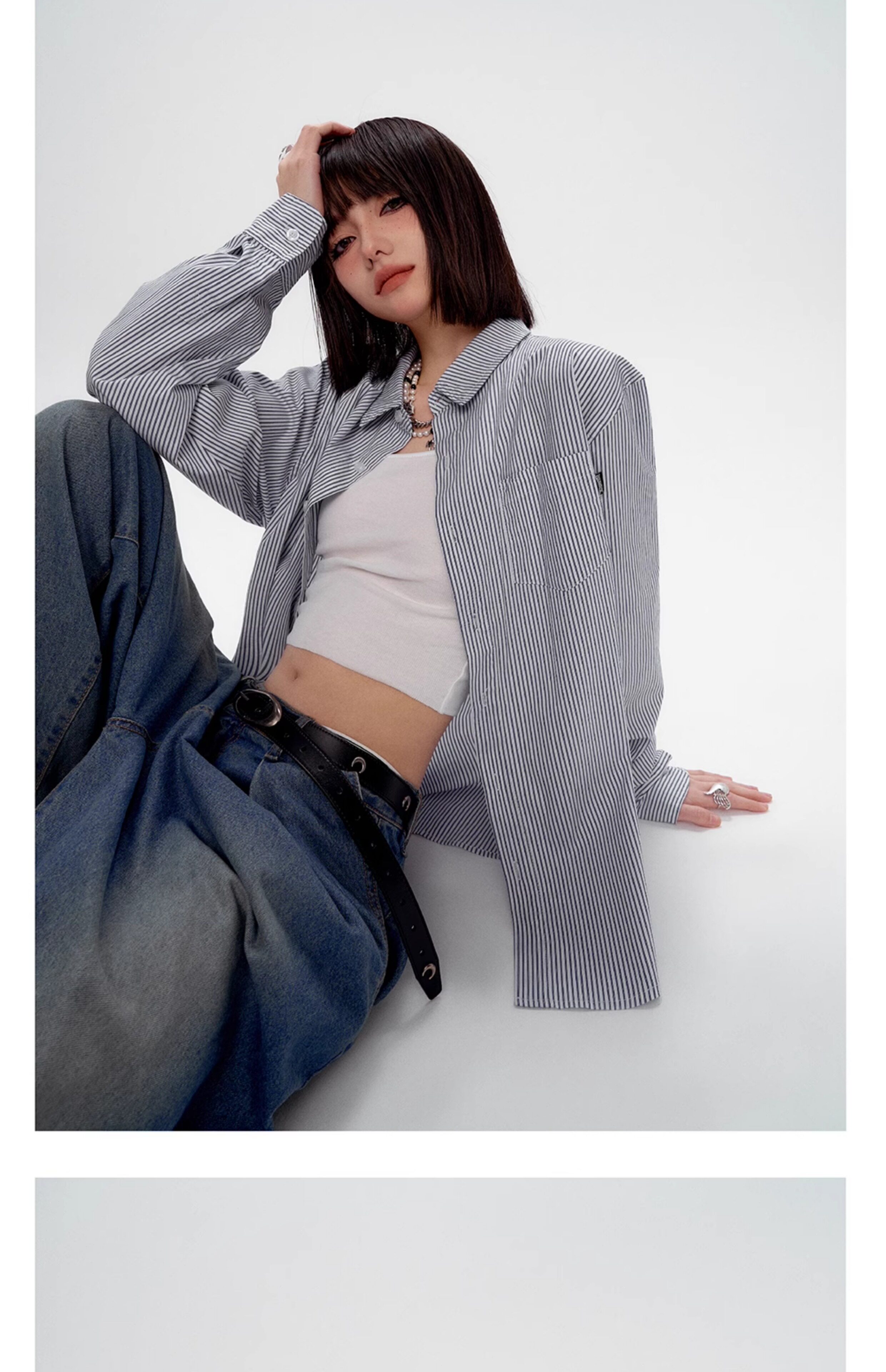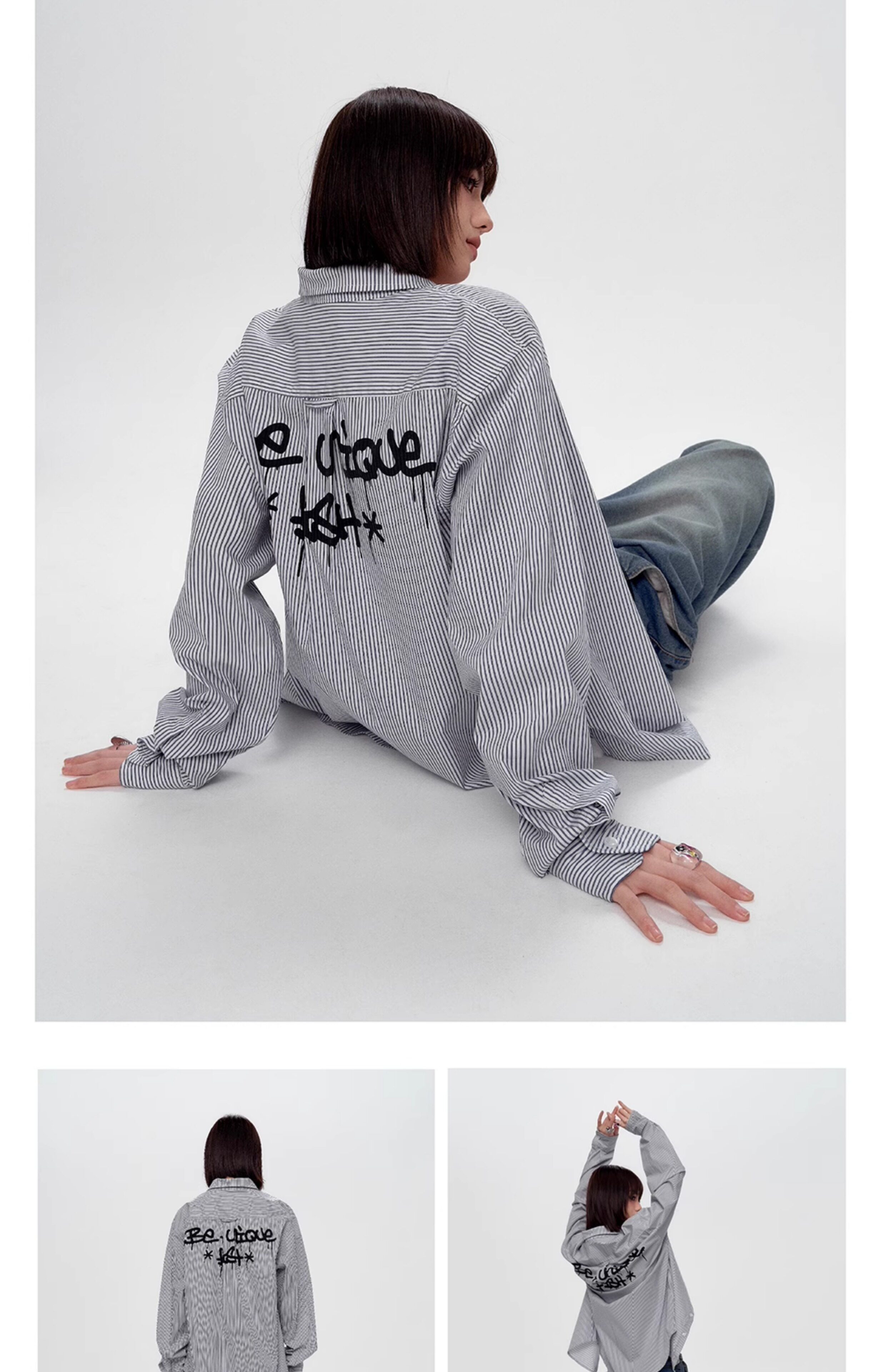 Blue White Stripe Oversize College Long Sleeve Shirt NA8879