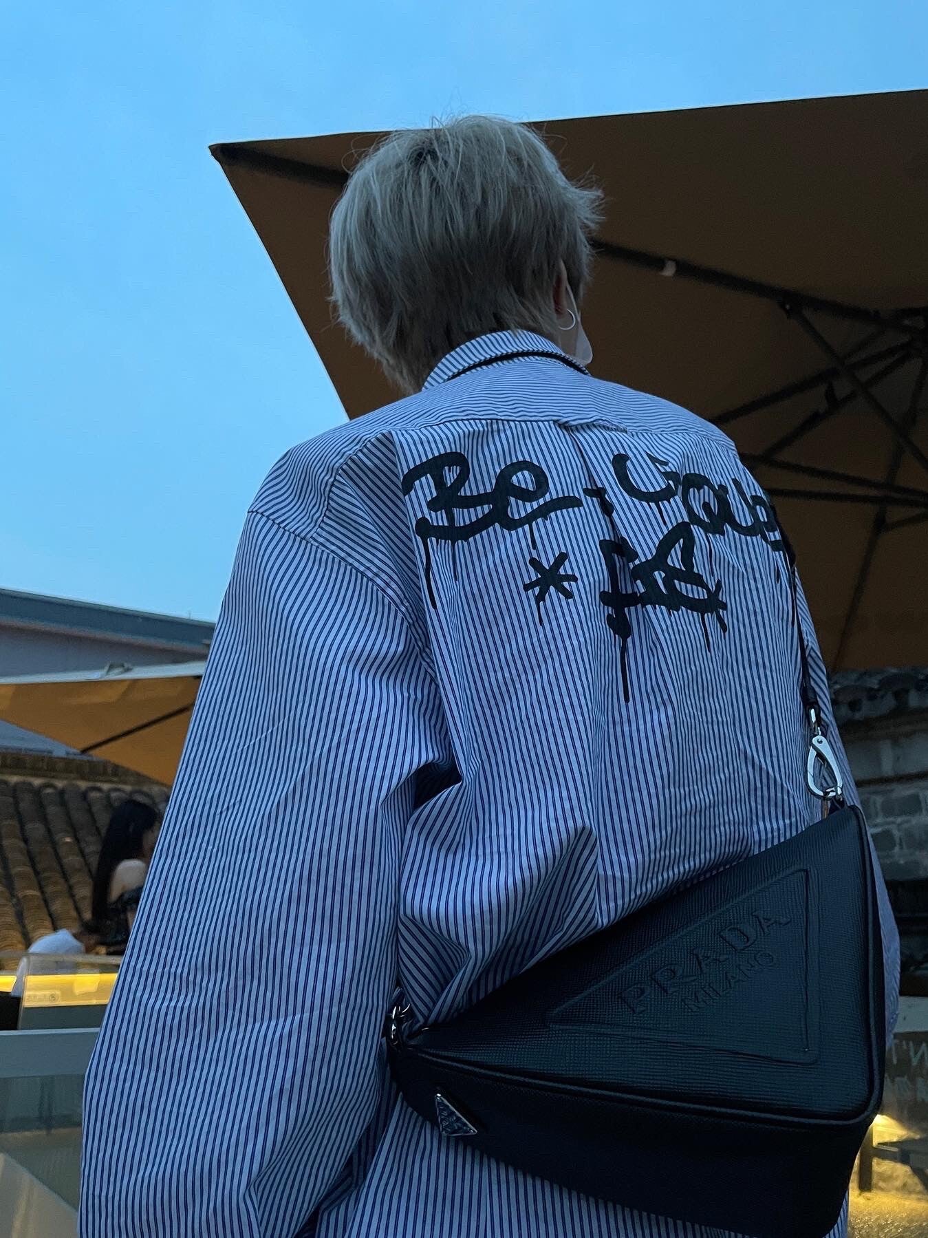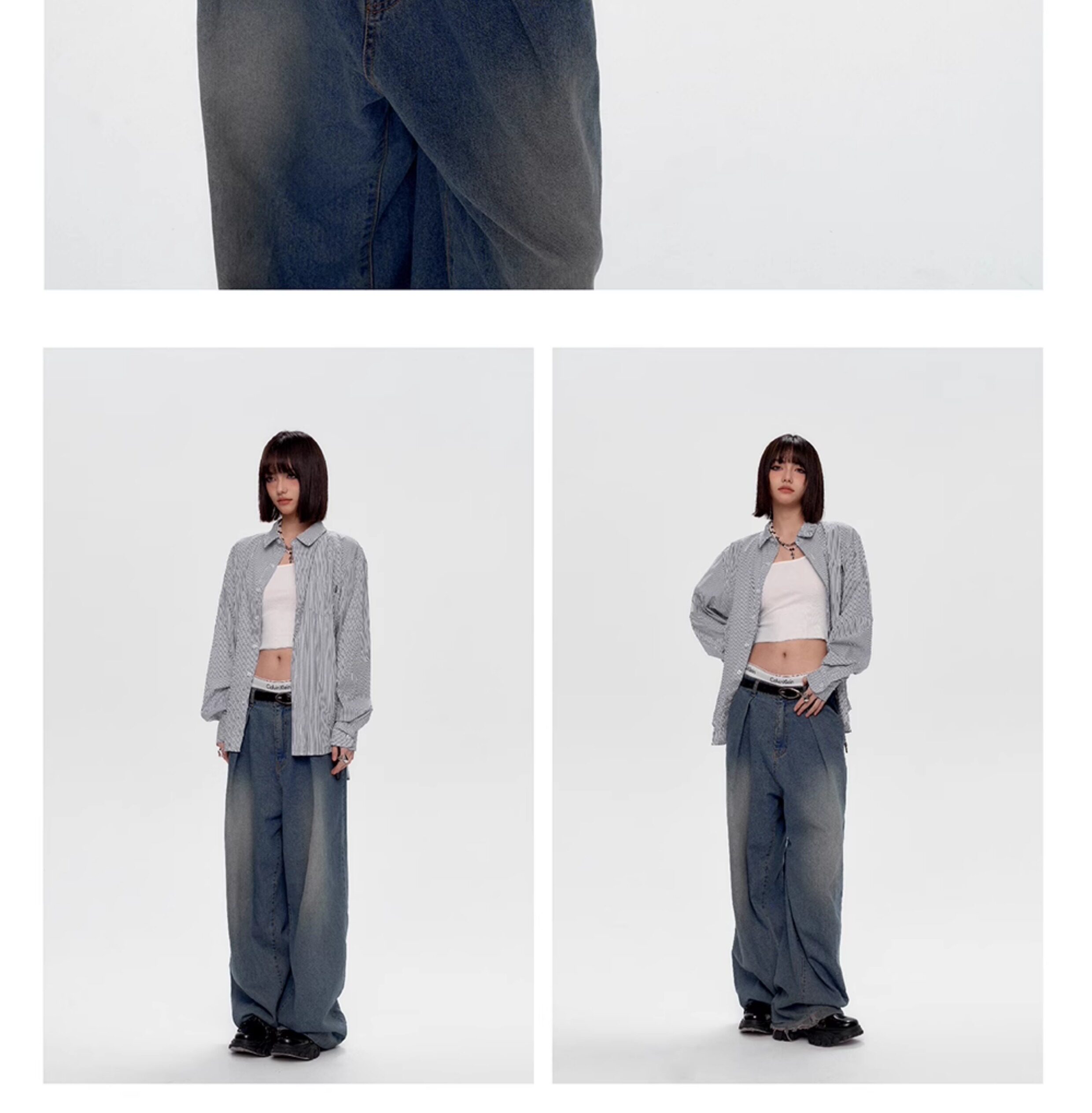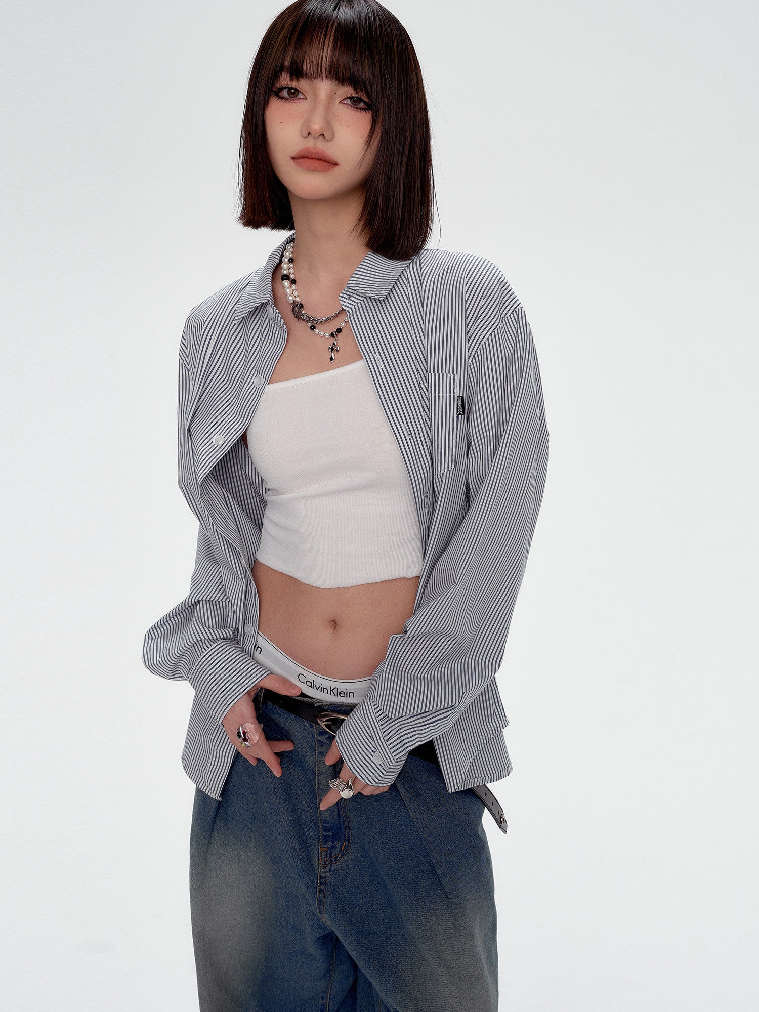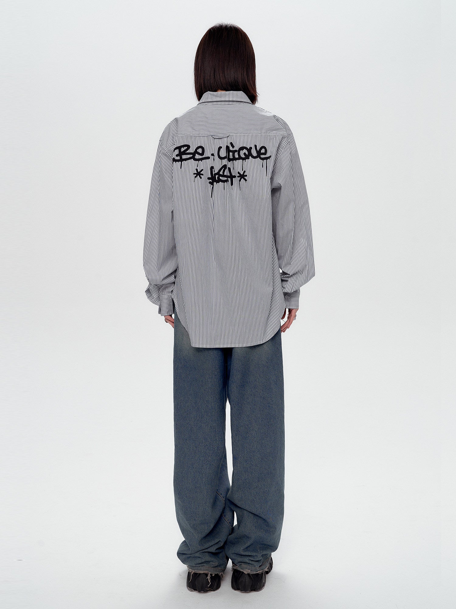 Blue White Stripe Oversize College Long Sleeve Shirt NA8879