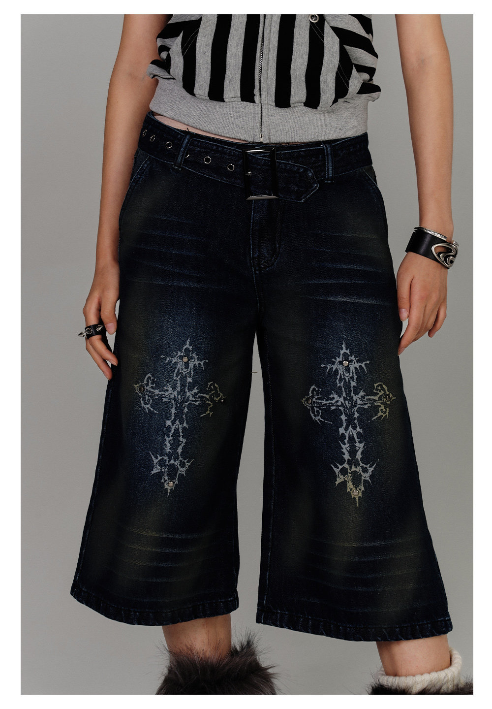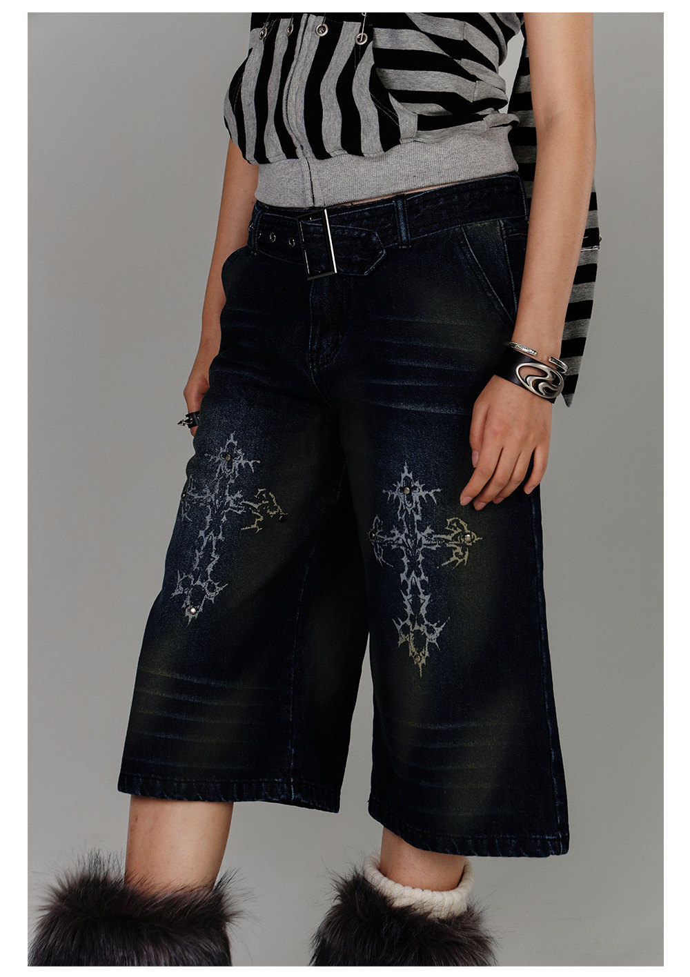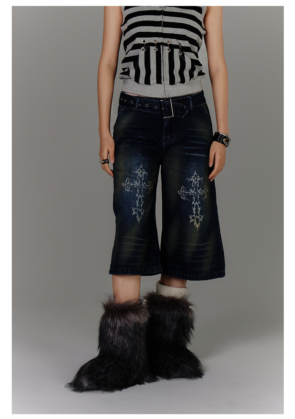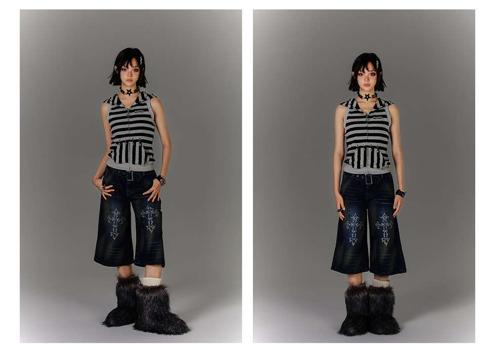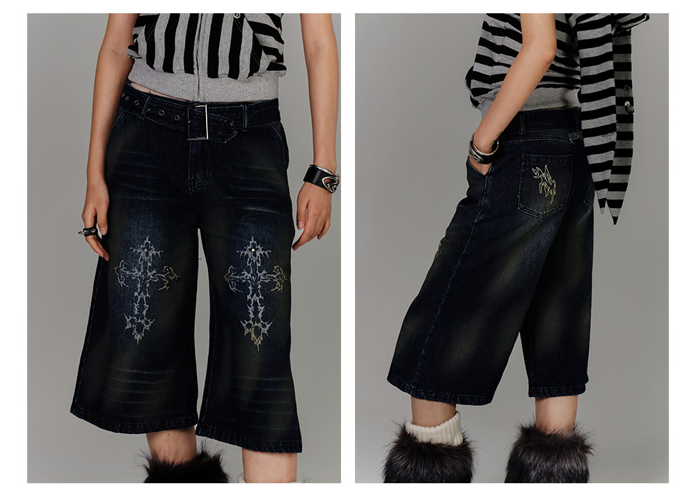Washed Damage High-Waist Cropped Straight Denim Jeans NA8880