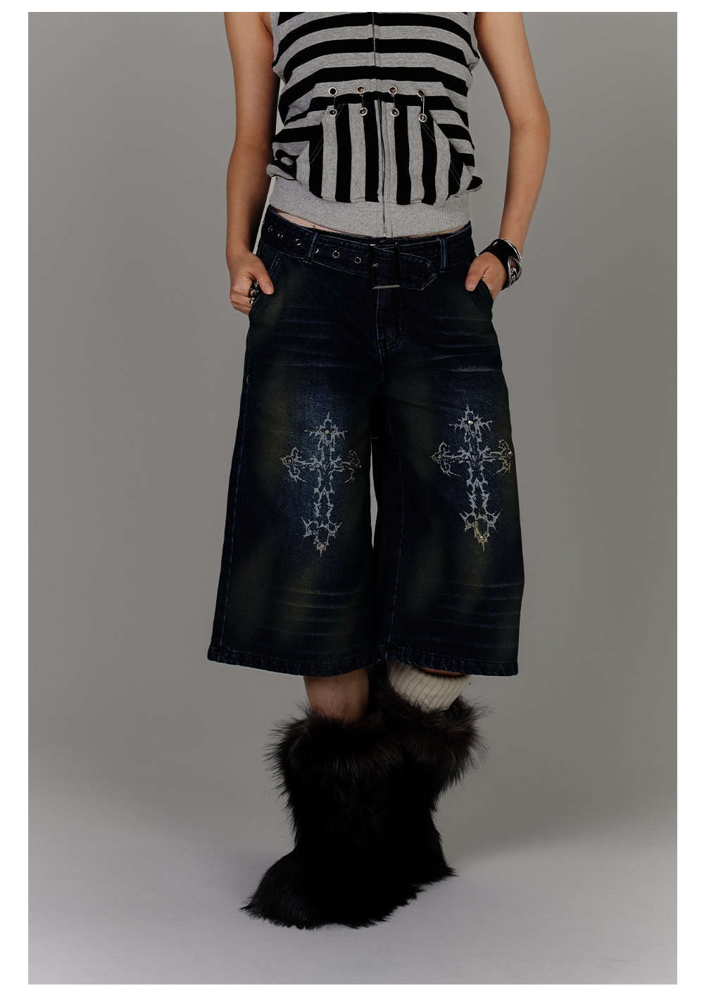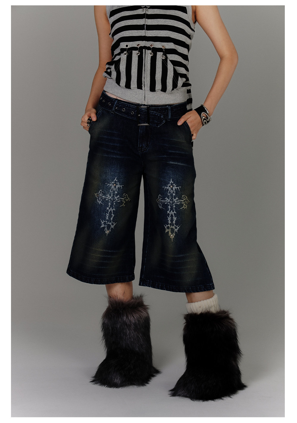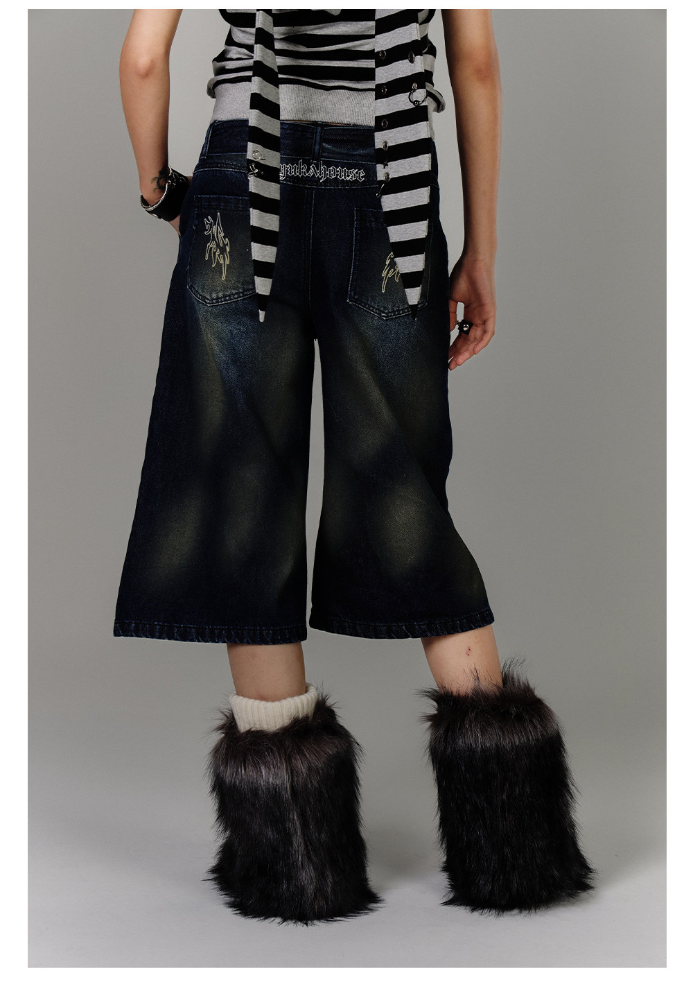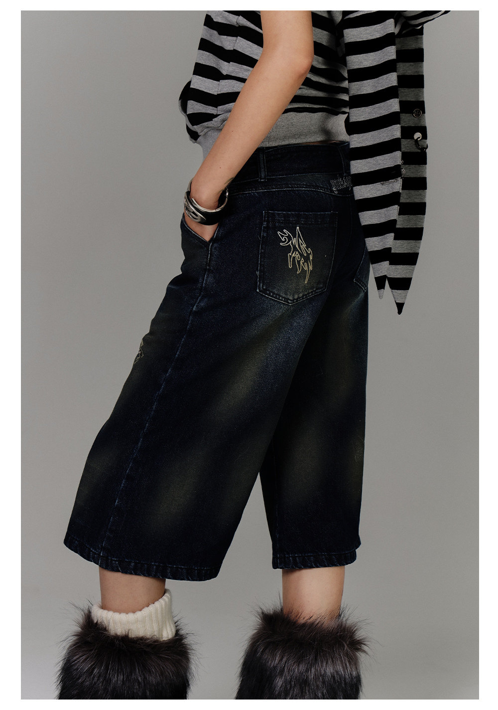 Washed Damage High-Waist Cropped Straight Denim Jeans NA8880
