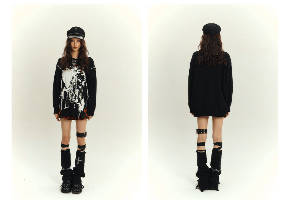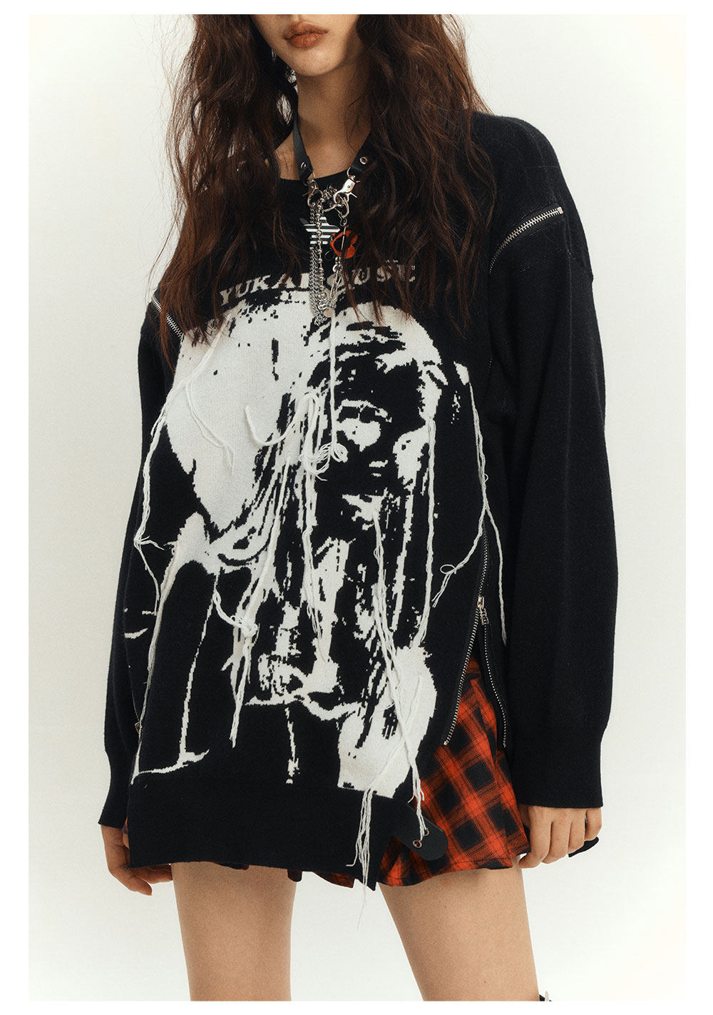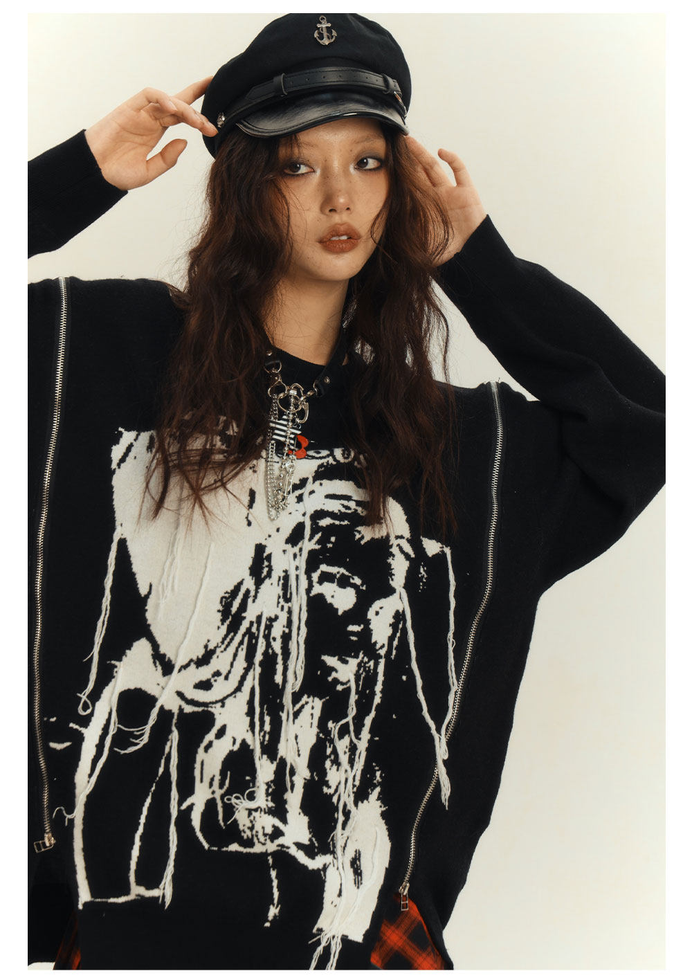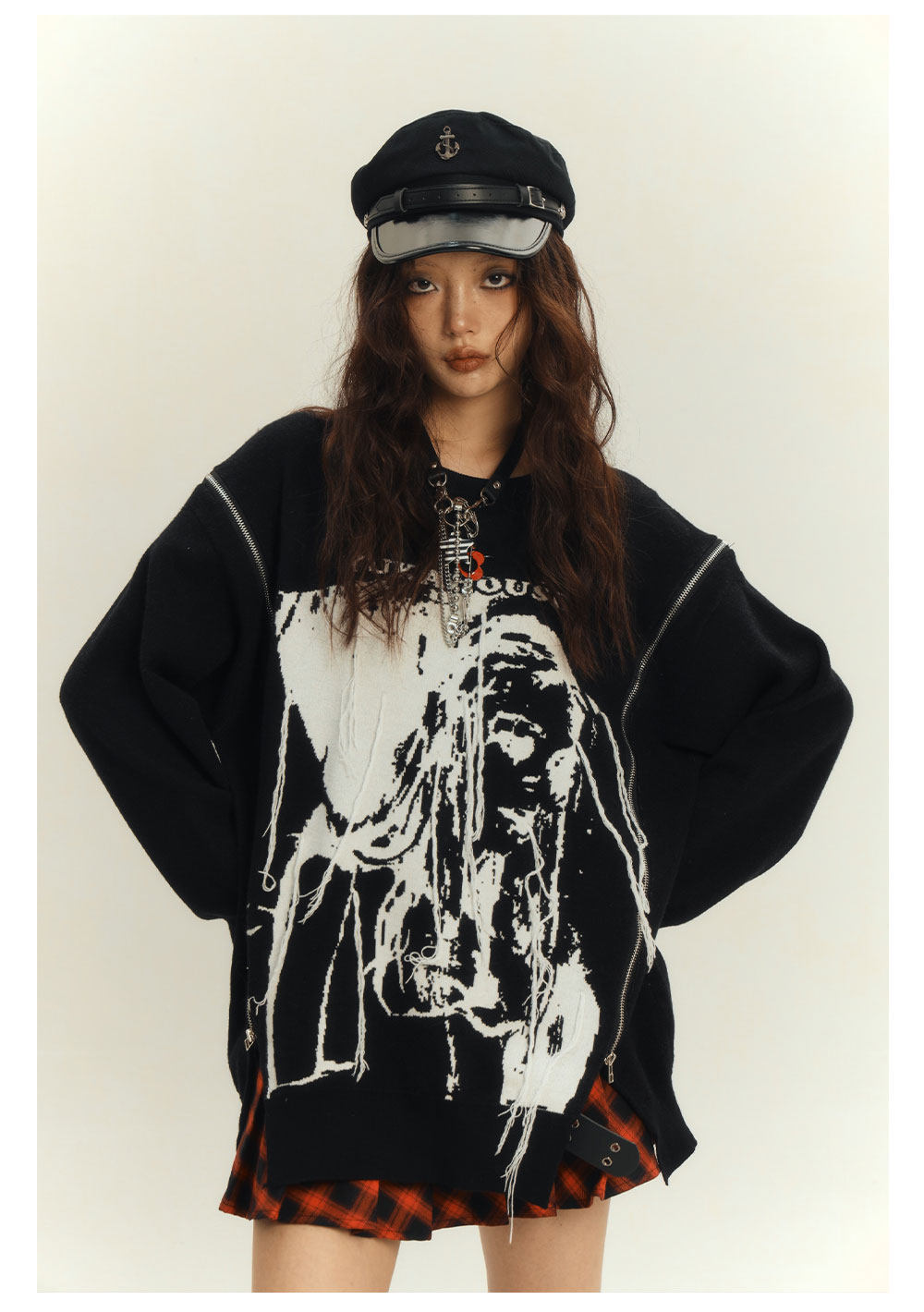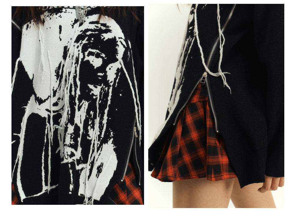 Zipper Design Oversize Knit Sweater NA8884