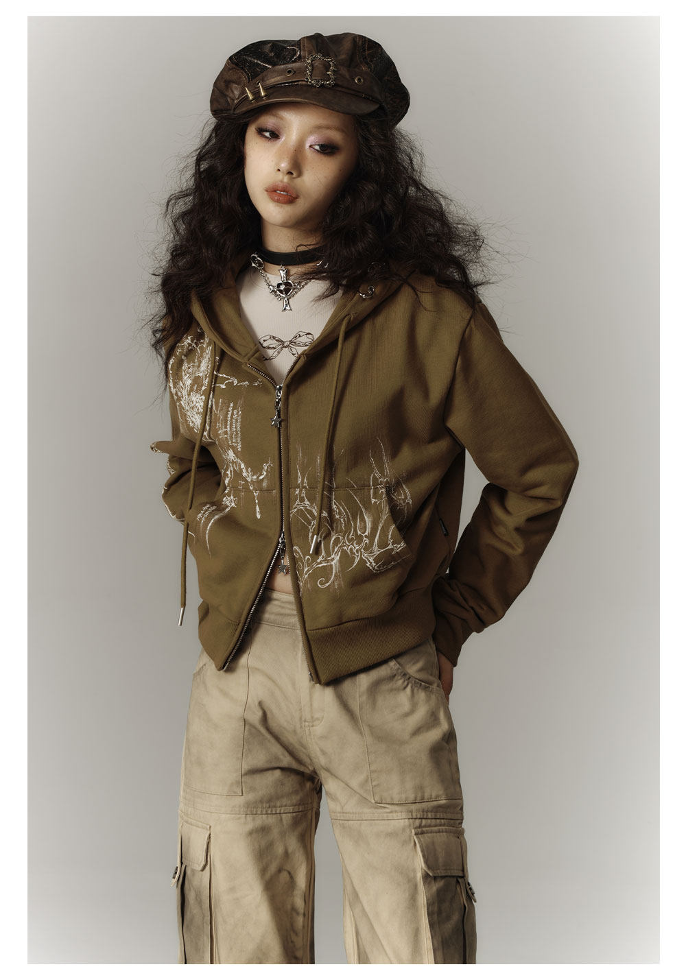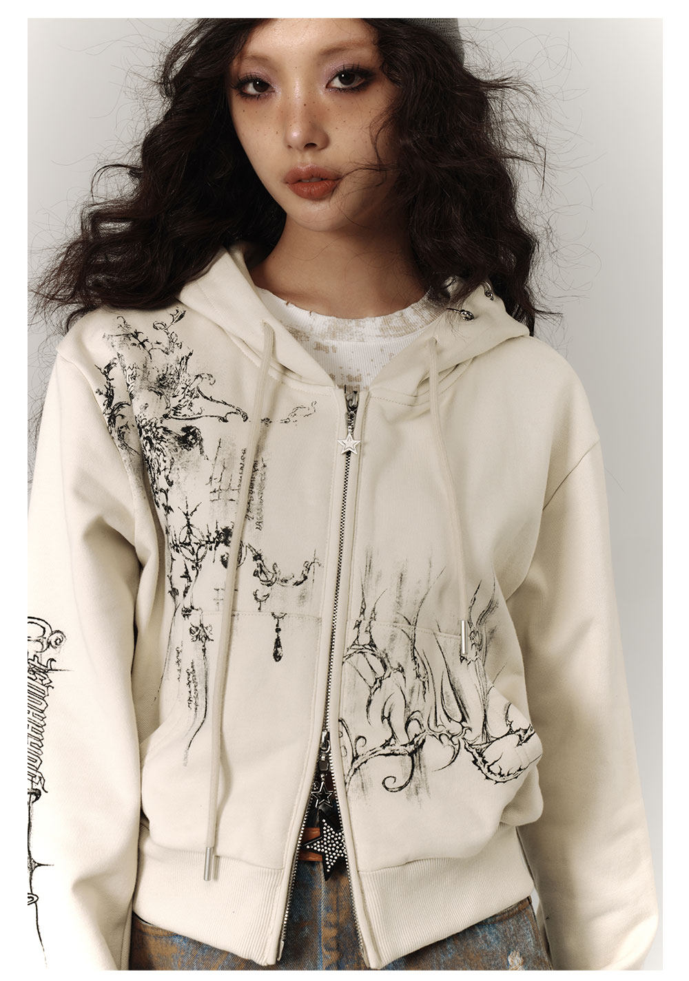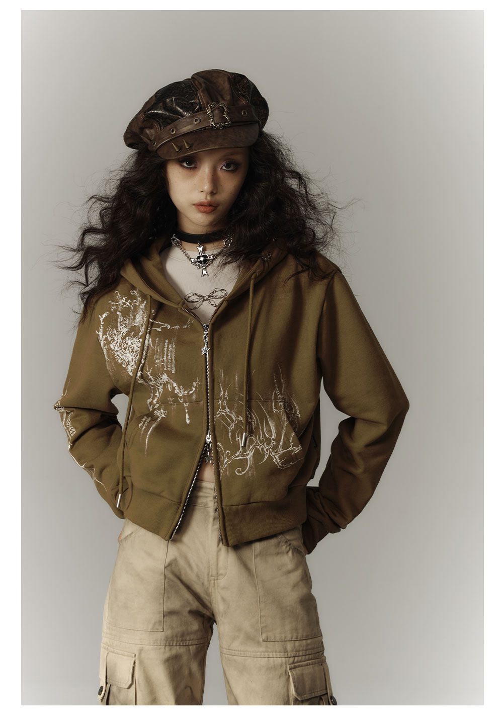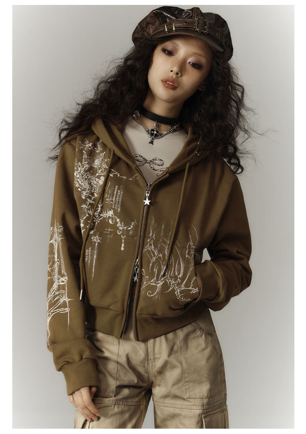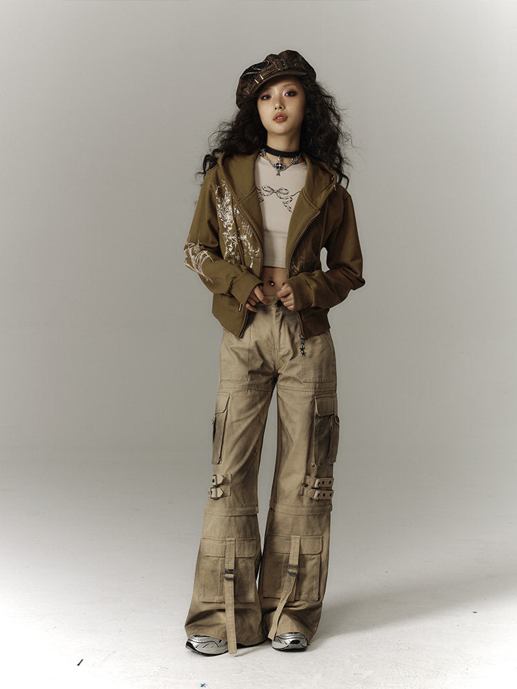 Cropped Graphic Print Zipper Hoodie NA8895