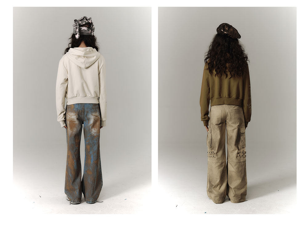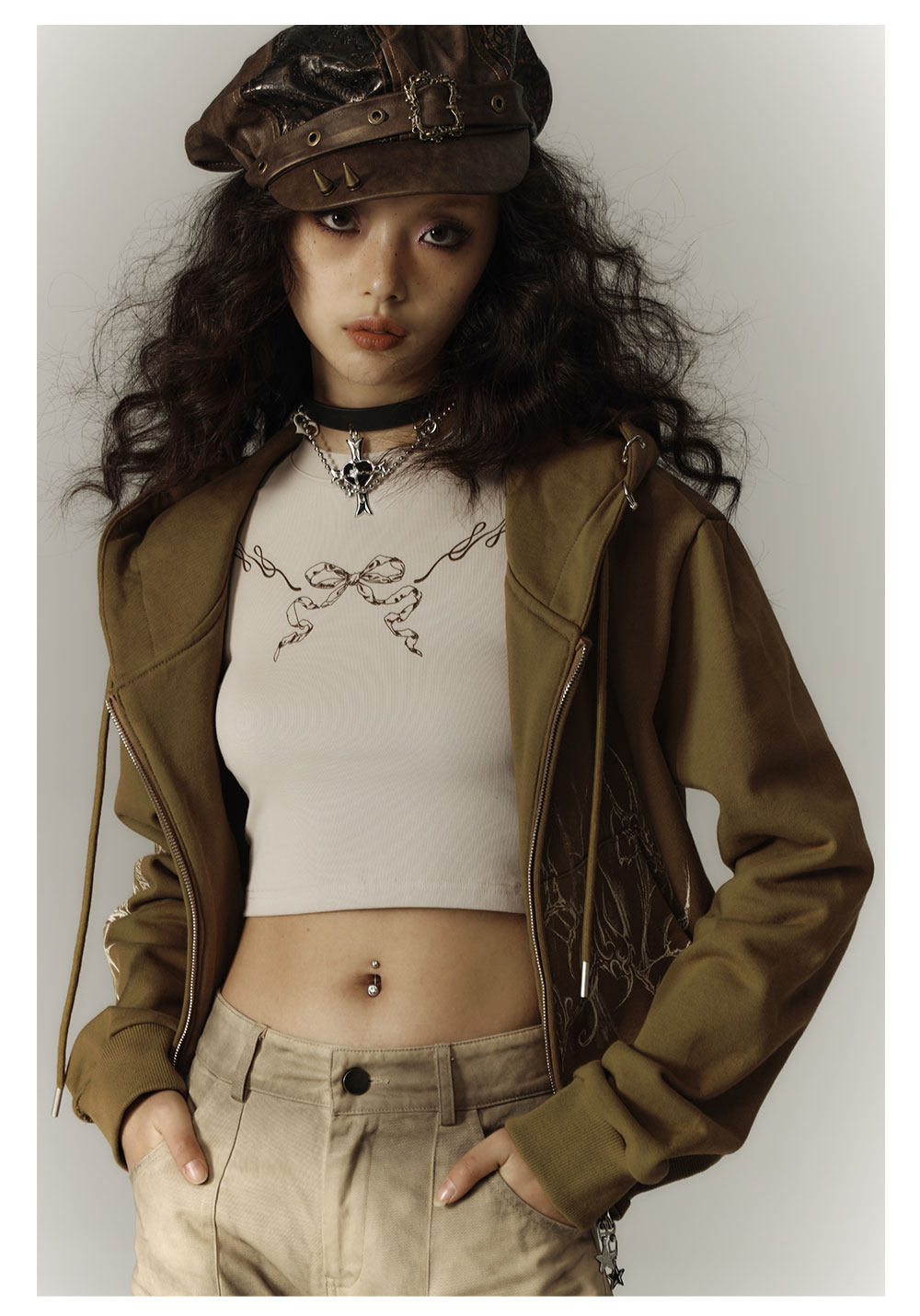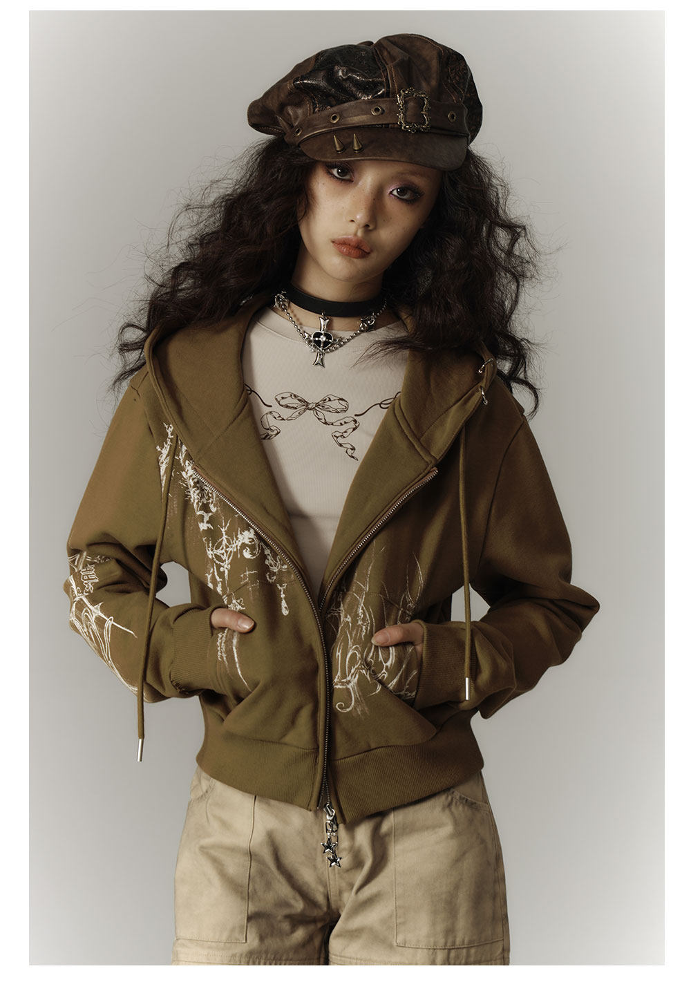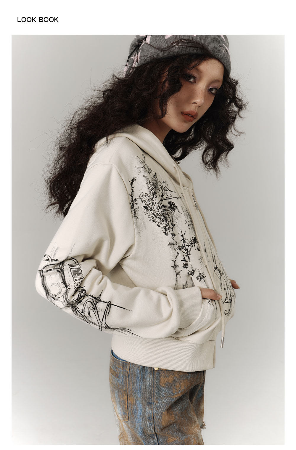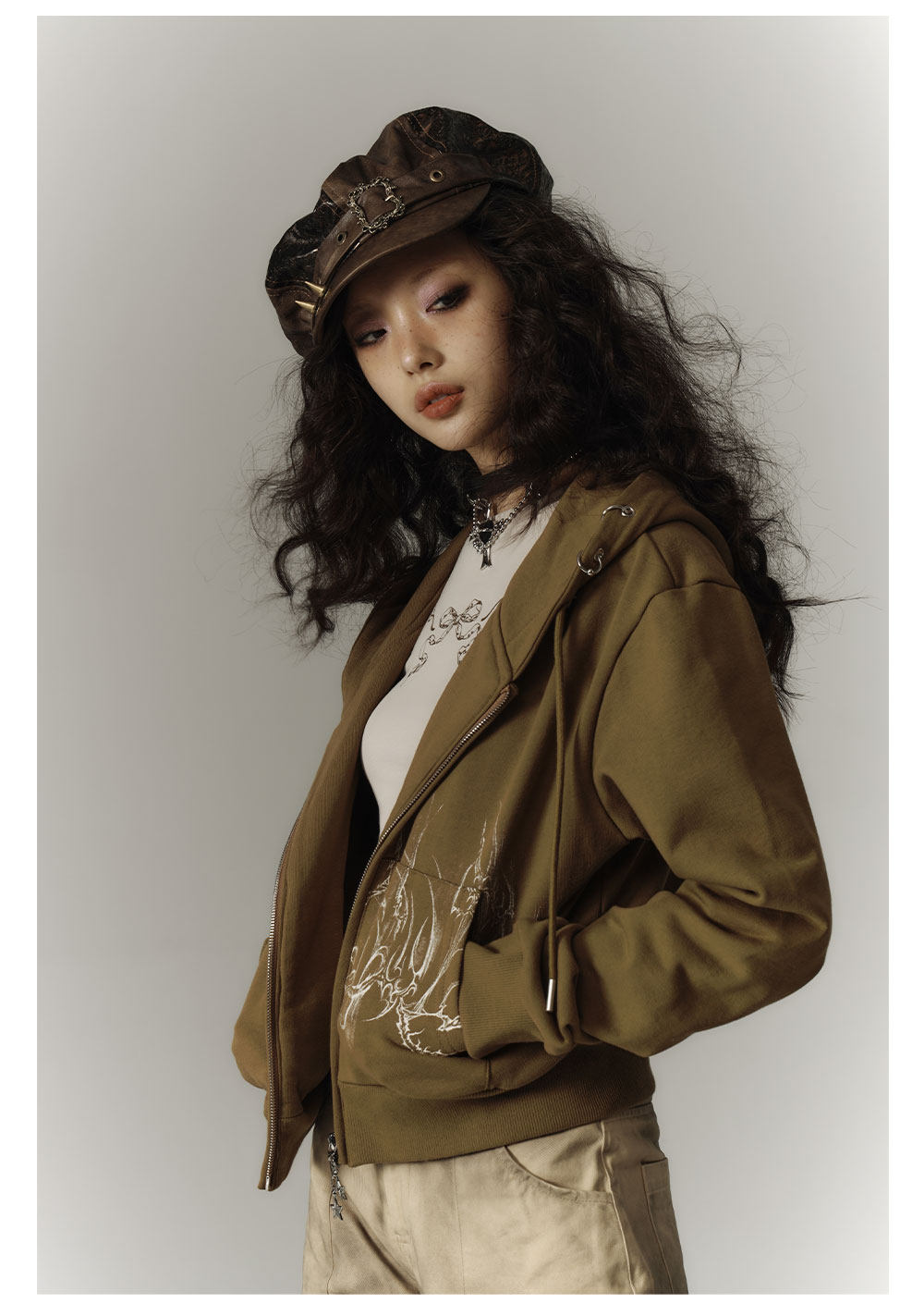 Cropped Graphic Print Zipper Hoodie NA8895
