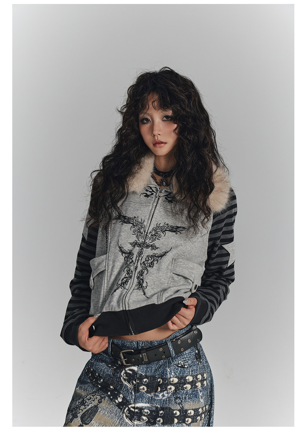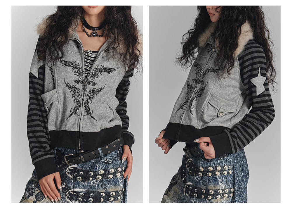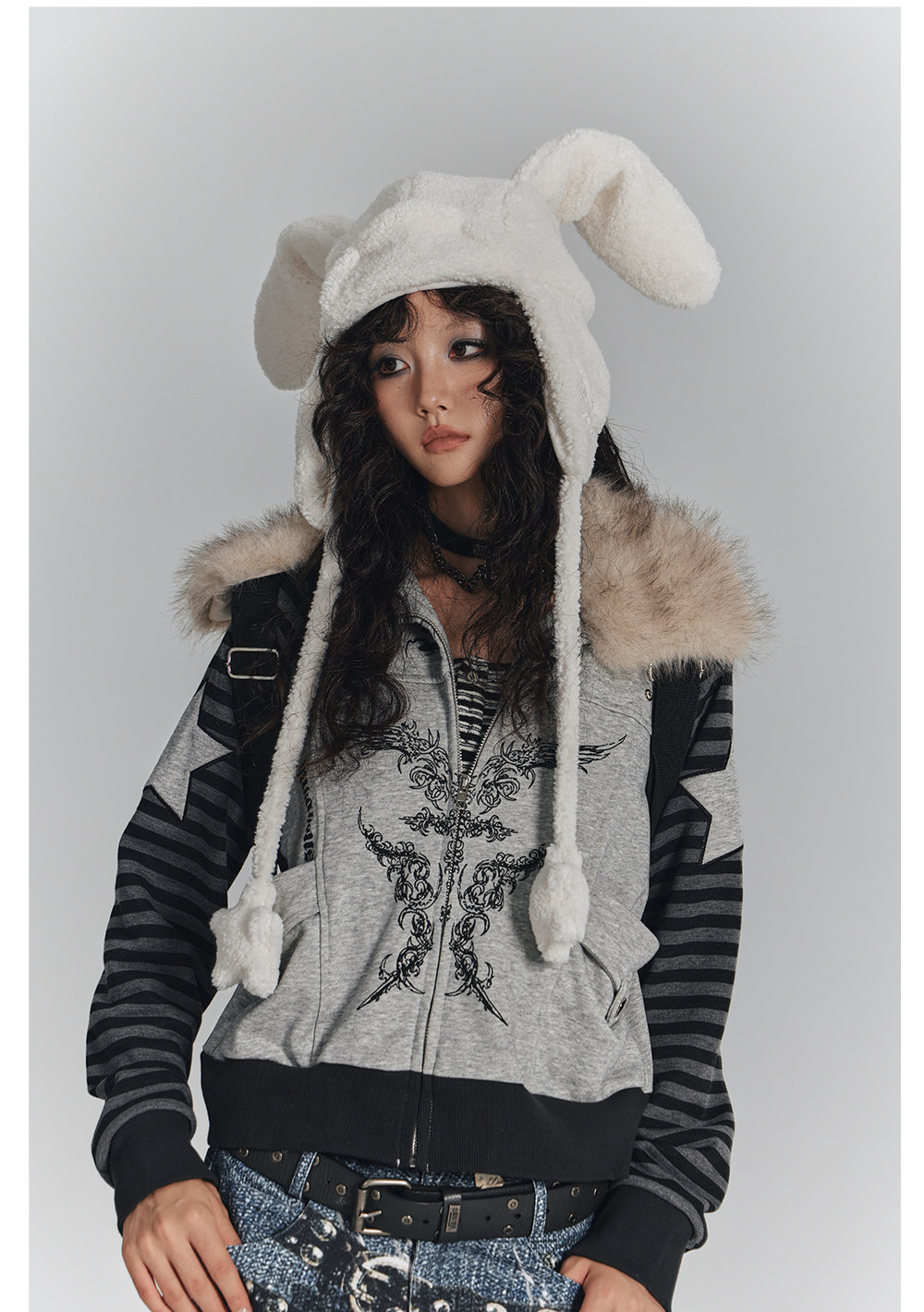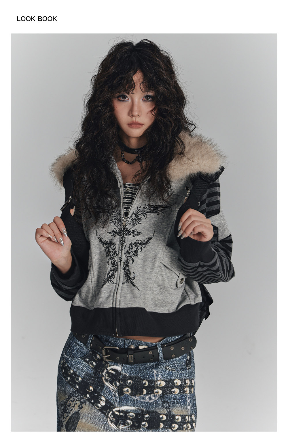 Fur Collar Patchwork Oversize Zipper Hoodie NA8899