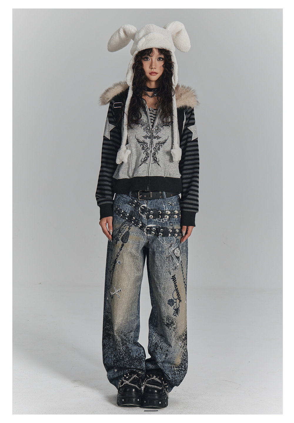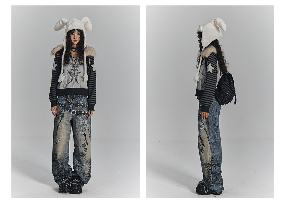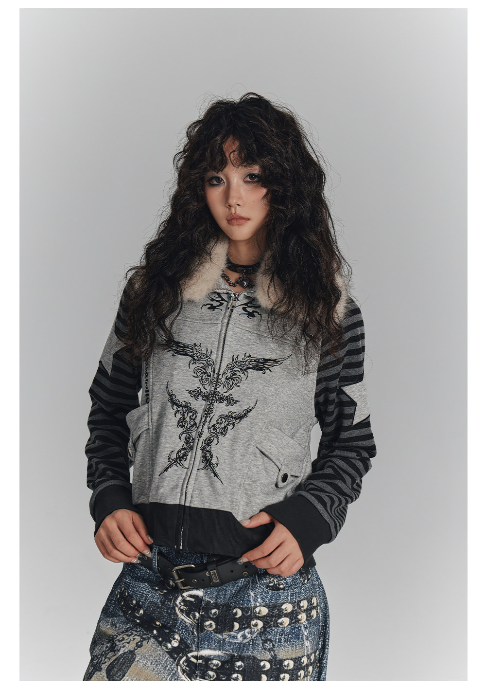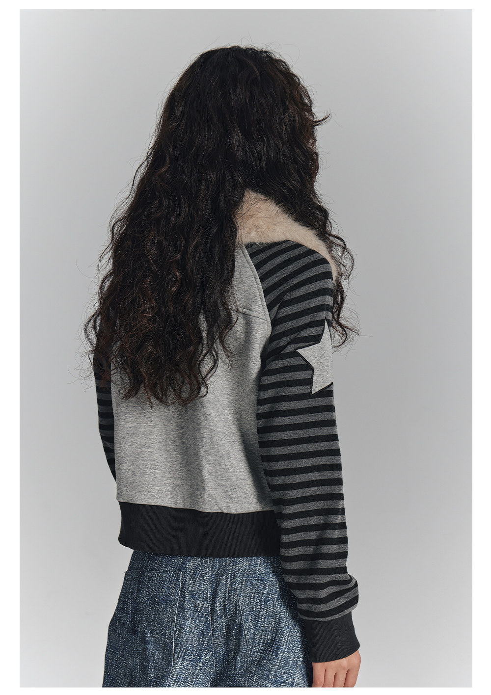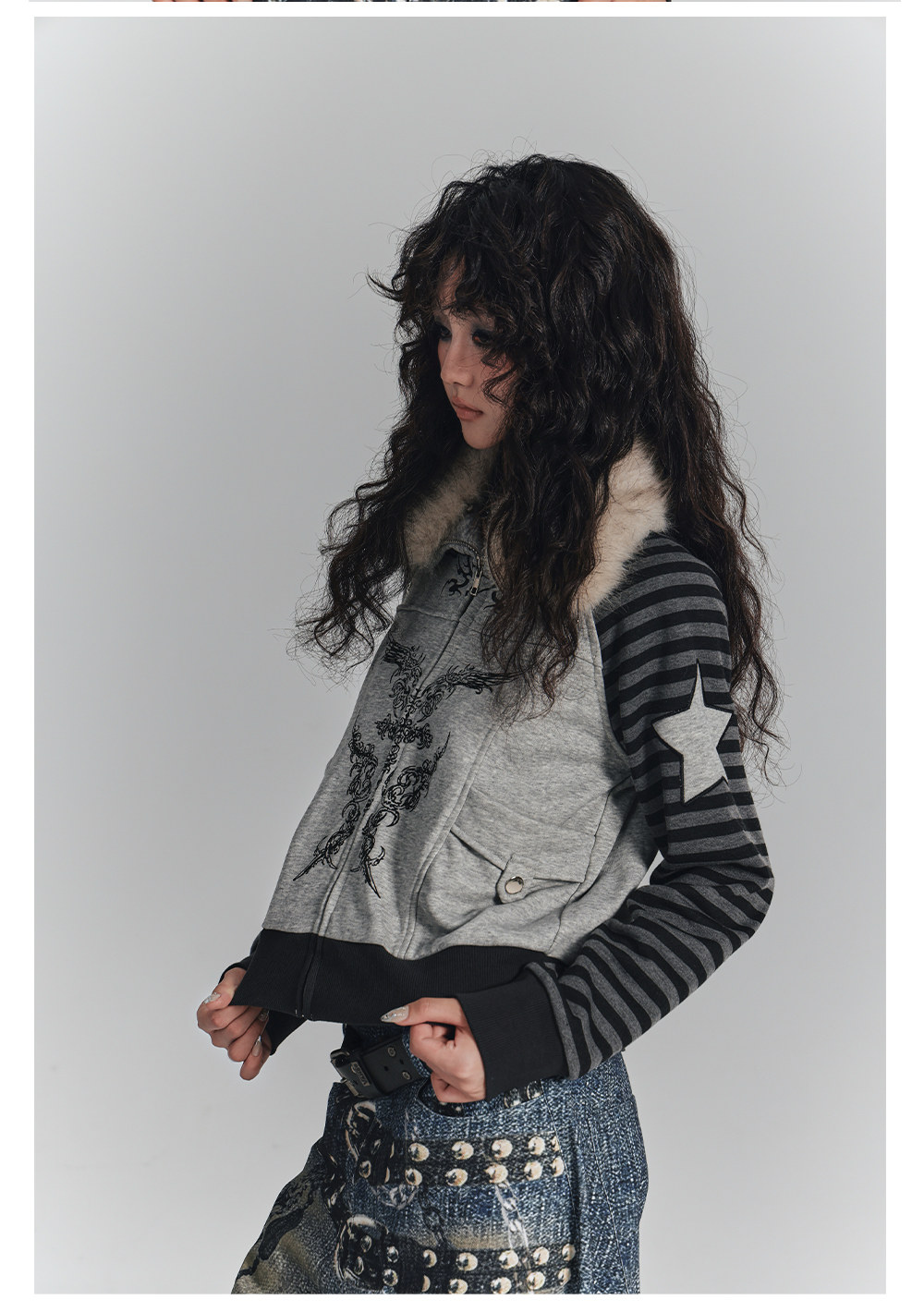 Fur Collar Patchwork Oversize Zipper Hoodie NA8899
