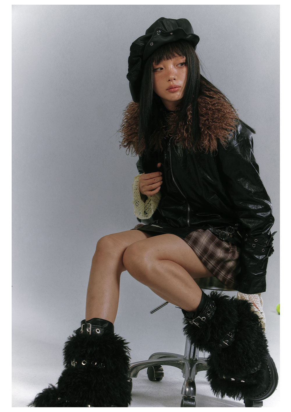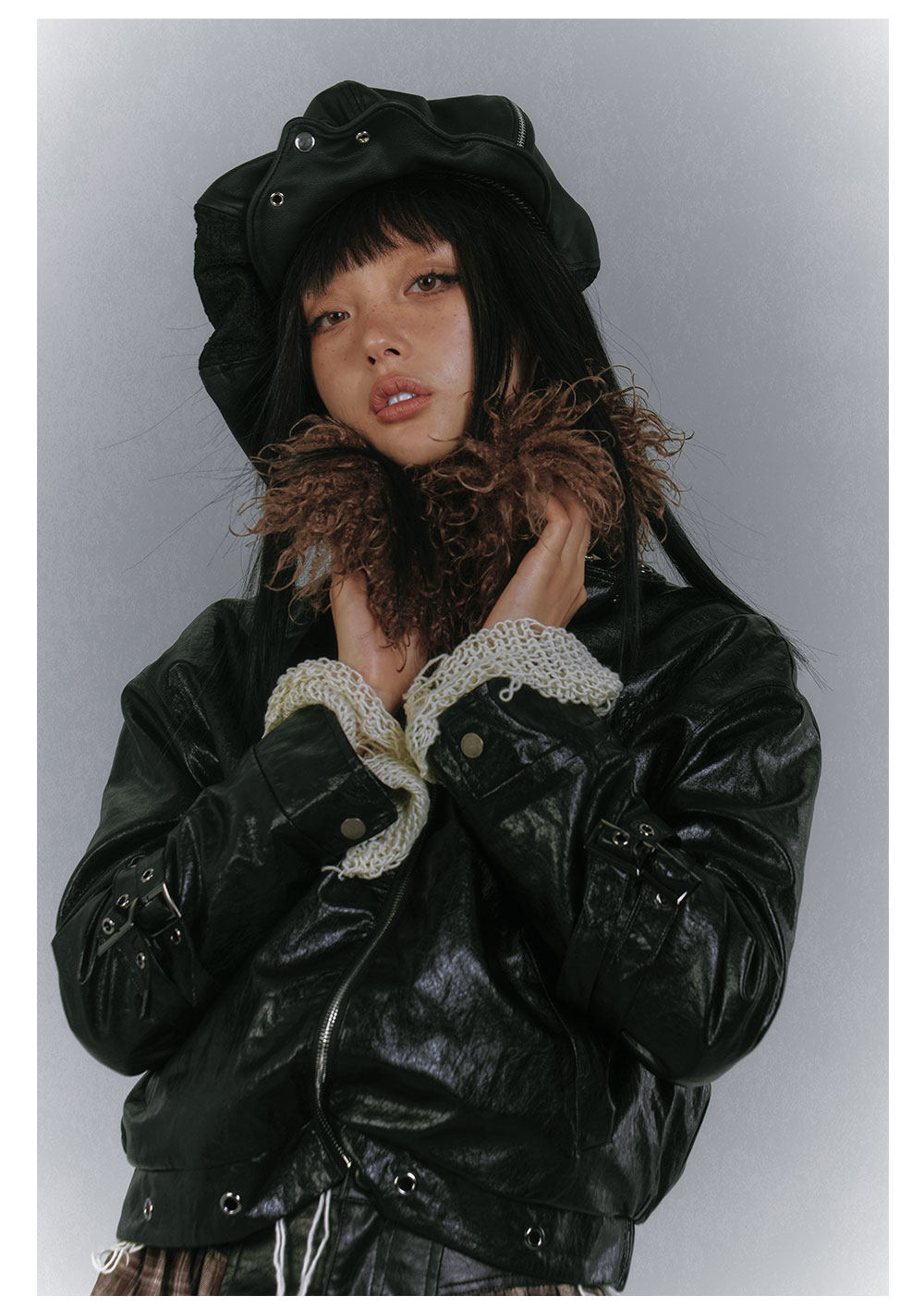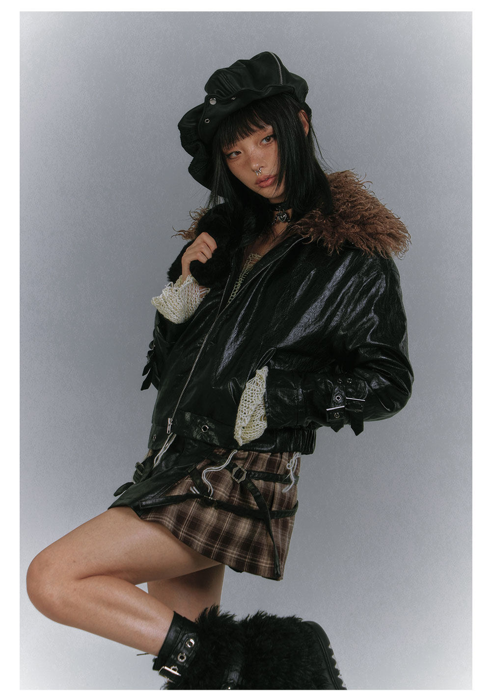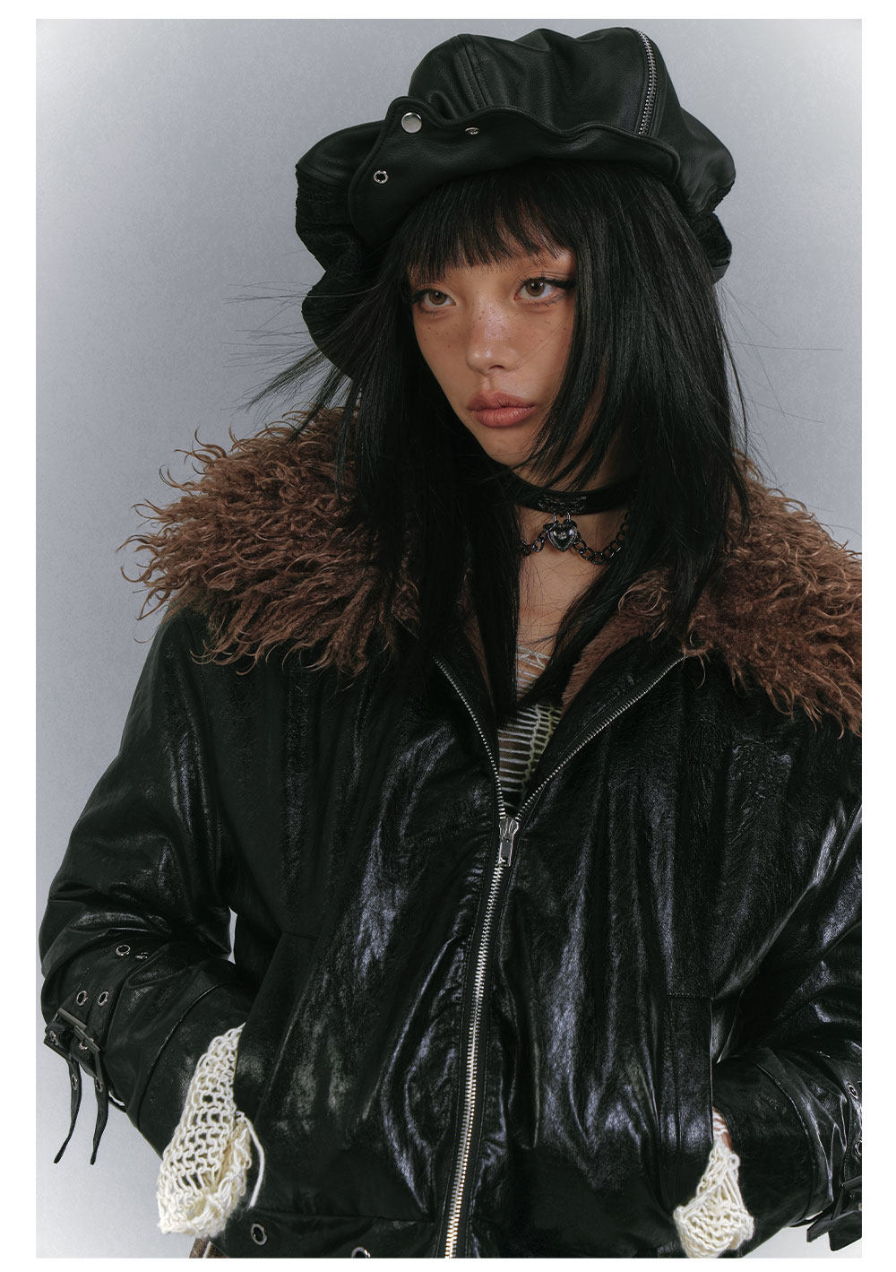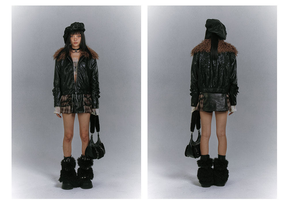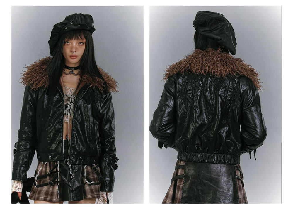Detachable Fur Collar Glossy Padded PU Leather Jacket NA8907
