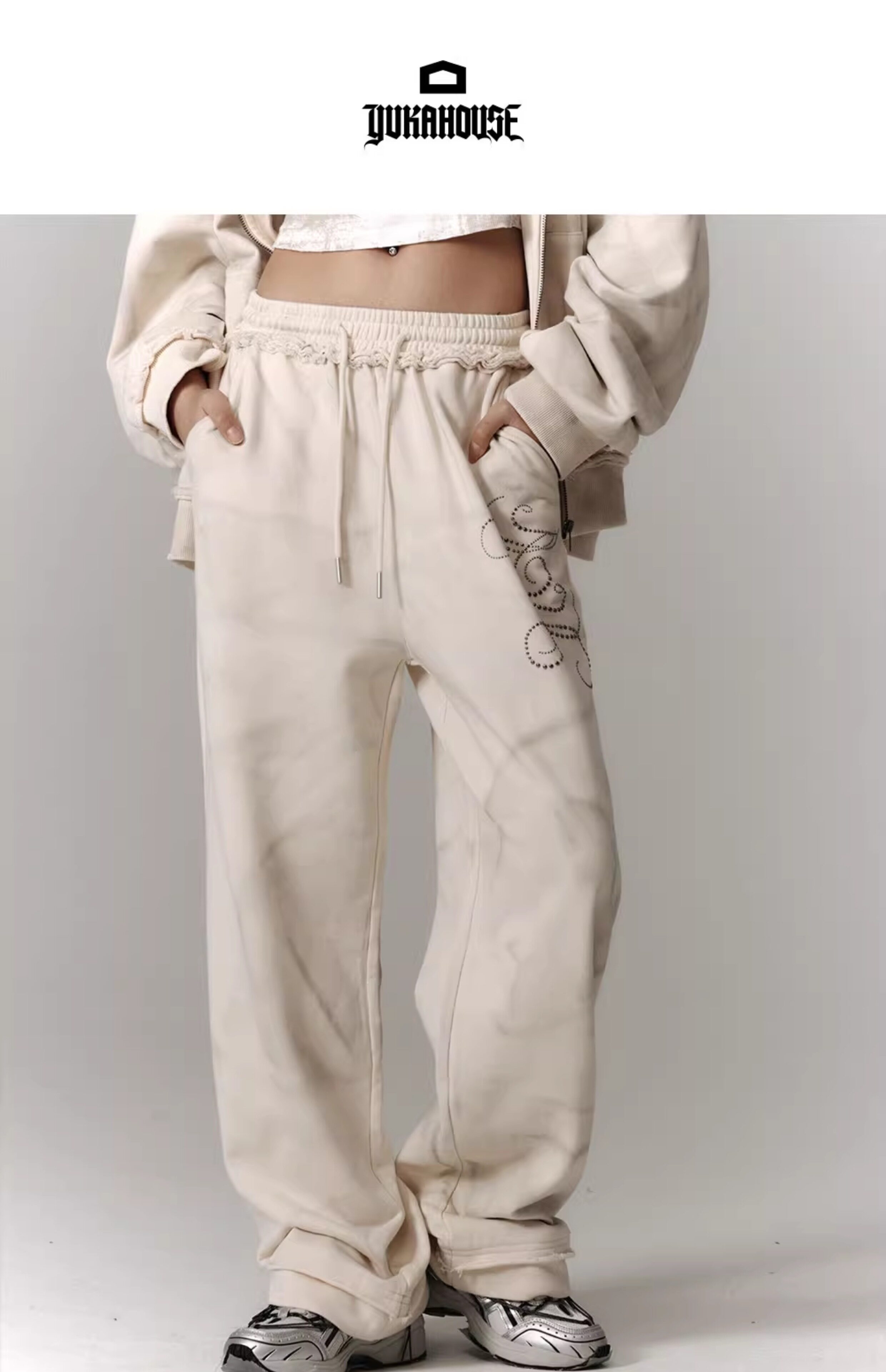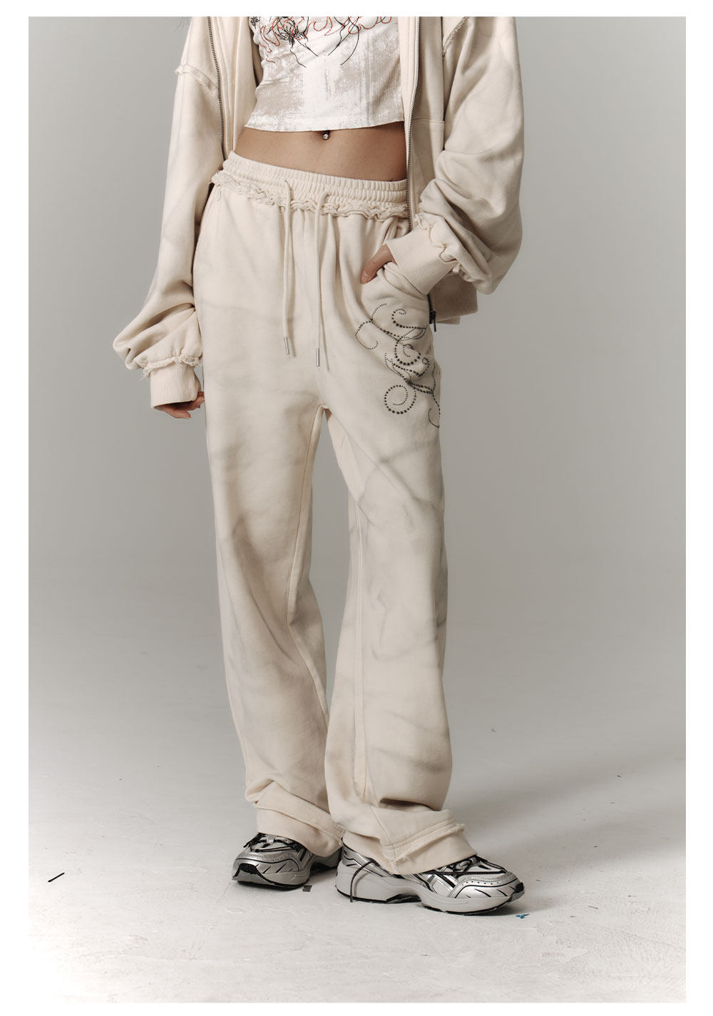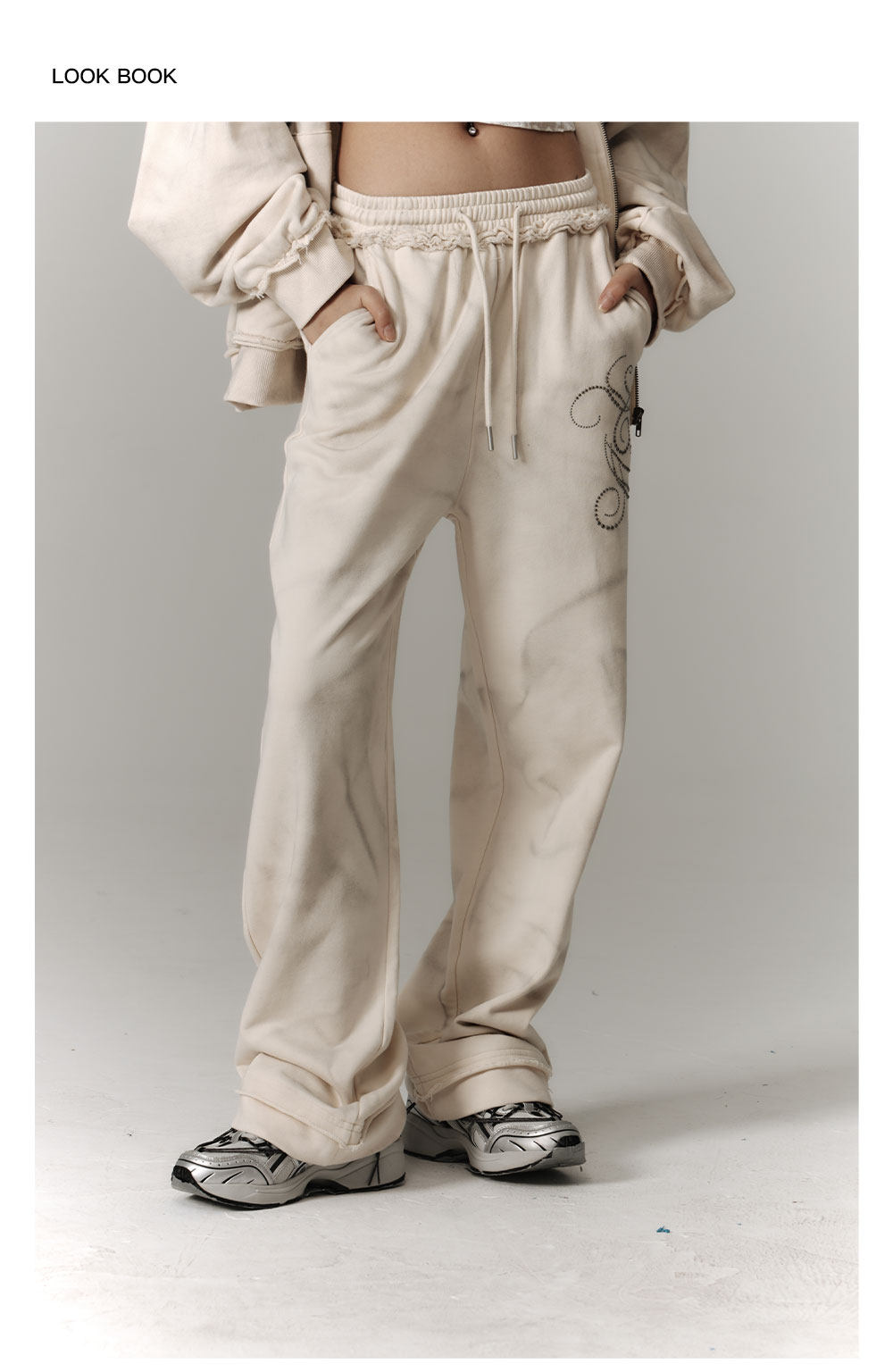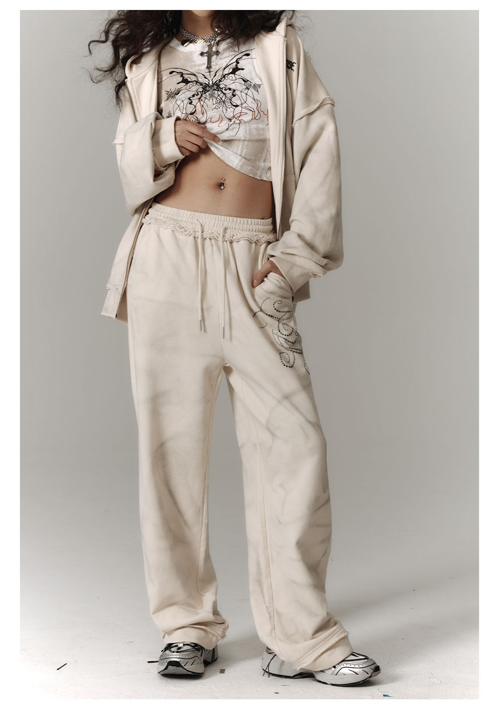 Washed Damage Oversize Zipper Hoodie & Wide Leg Pants Setup NA8913