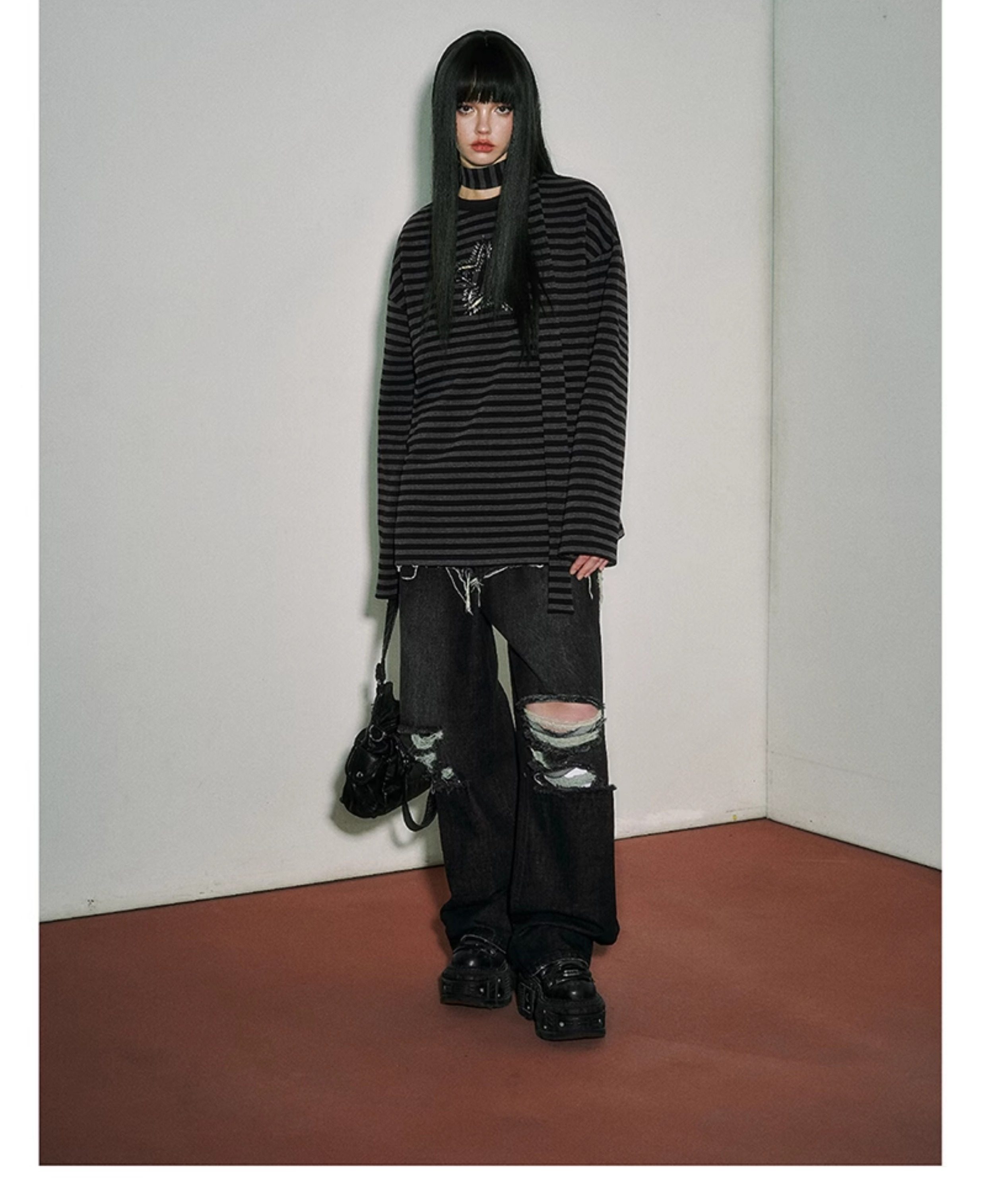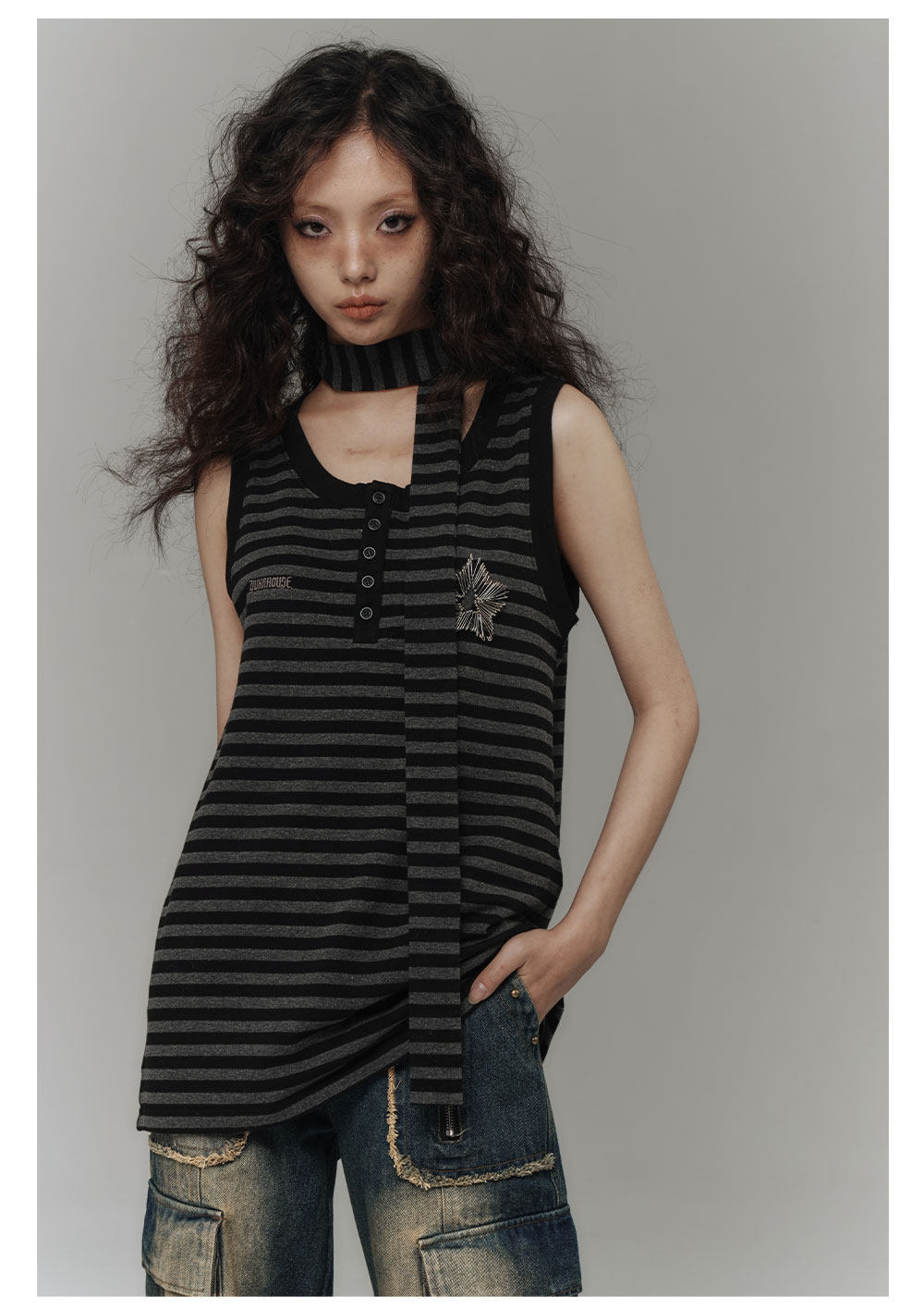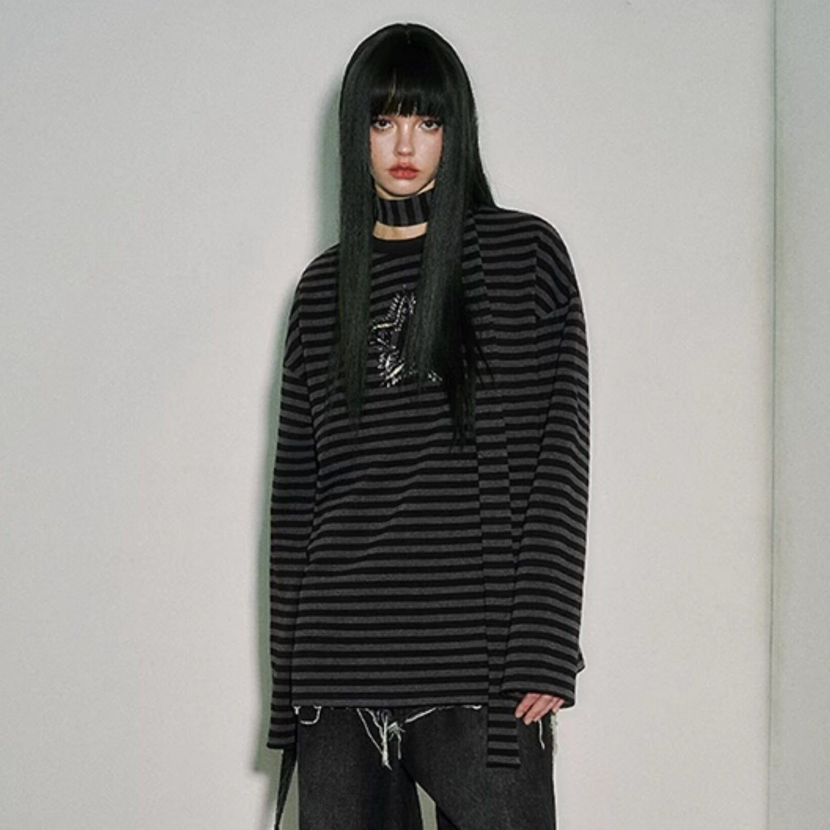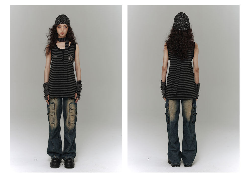 Star Stripe Oversize Long Sleeve T-Shirt & Tank Top NA8919