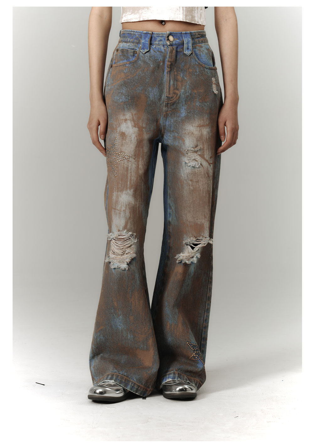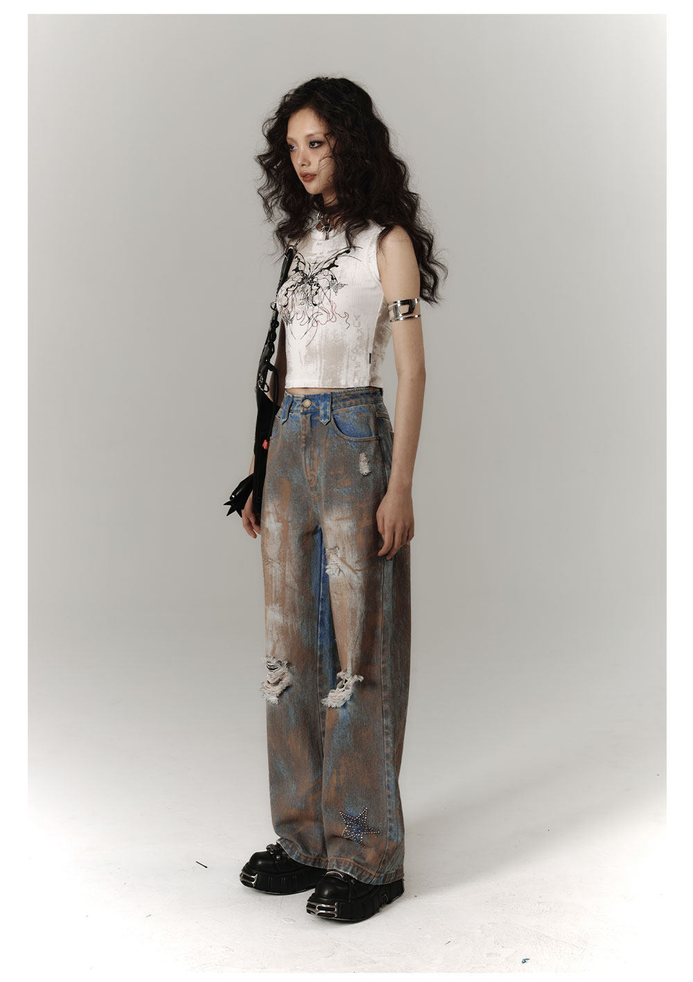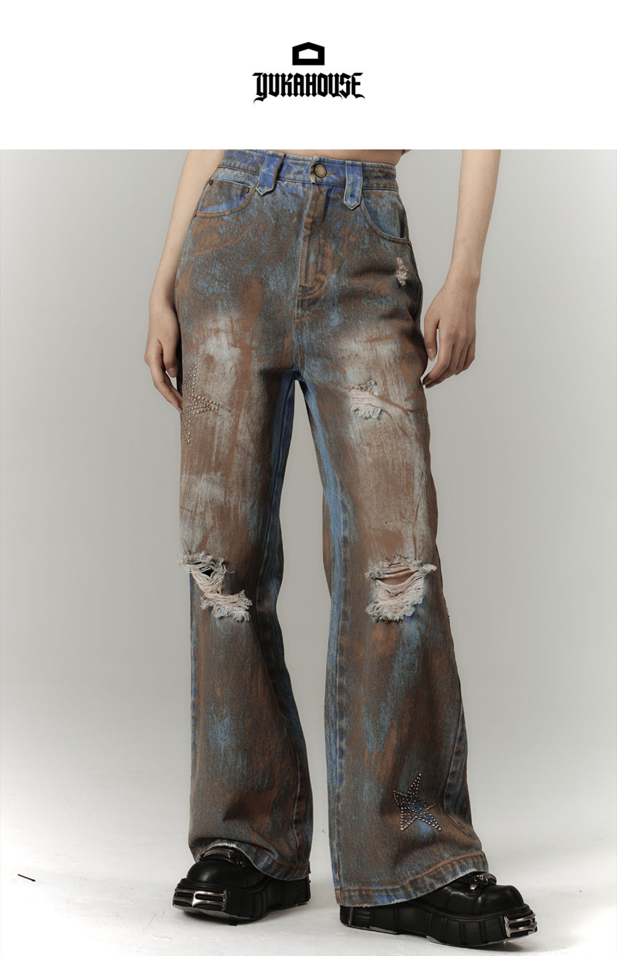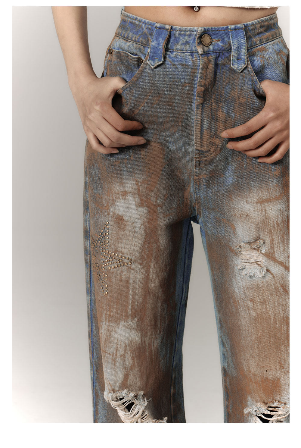 Mud Wash Damage Tie-Dye Wide Leg Straight Denim Jeans NA8928