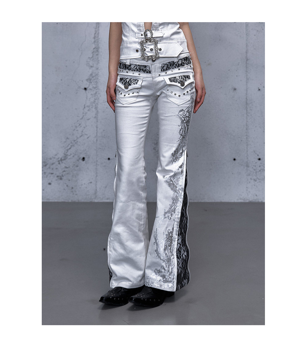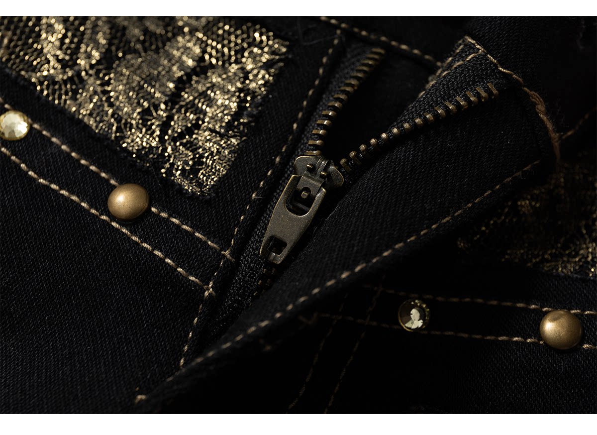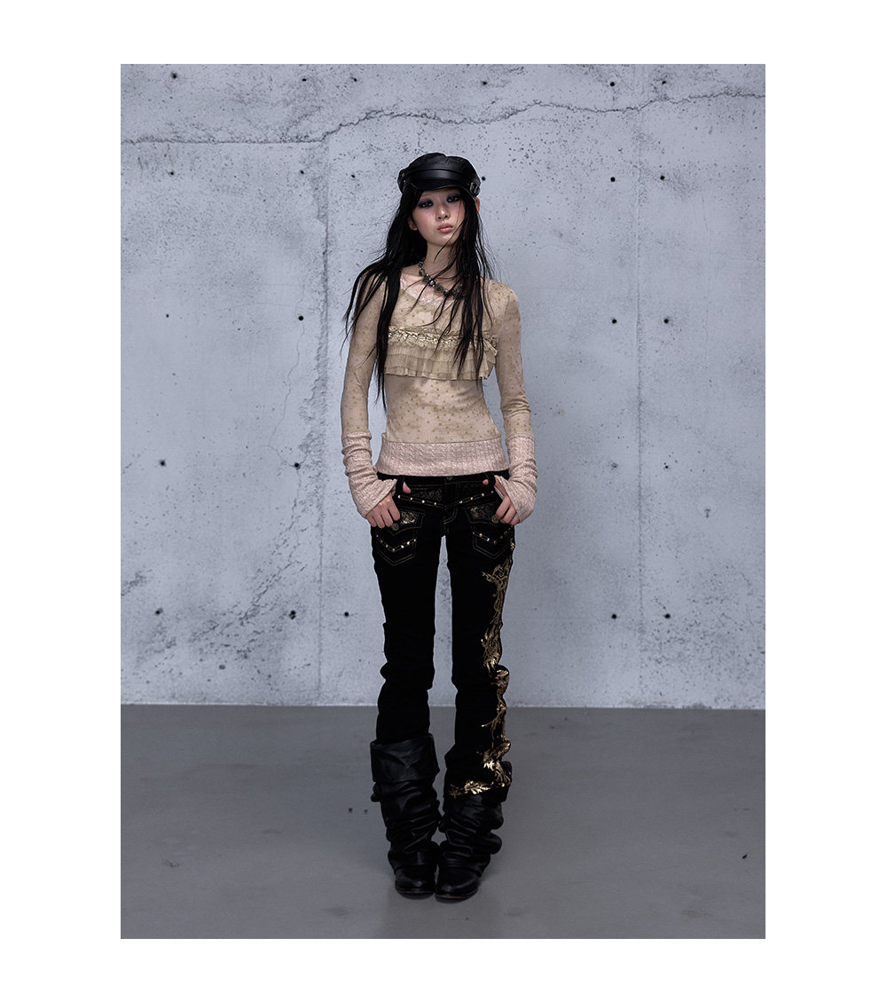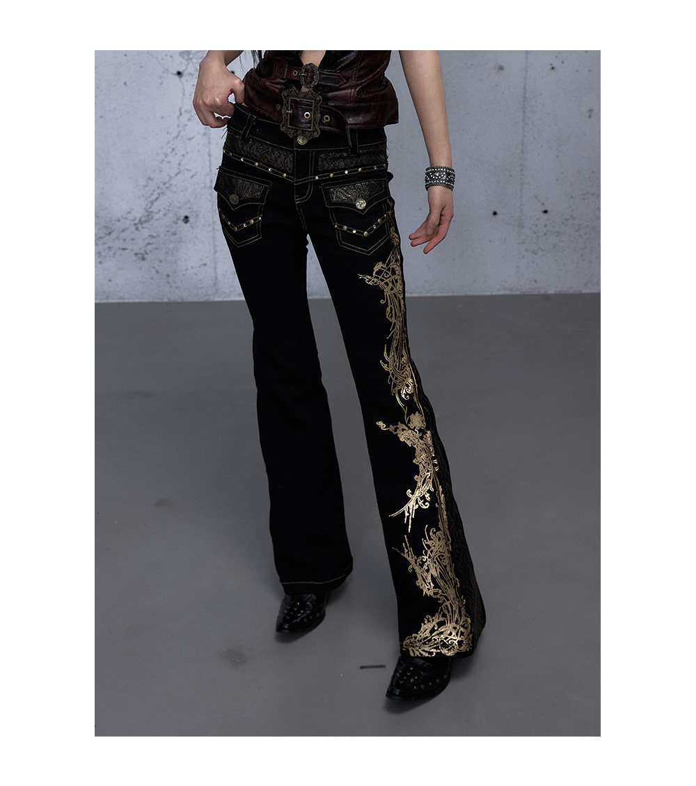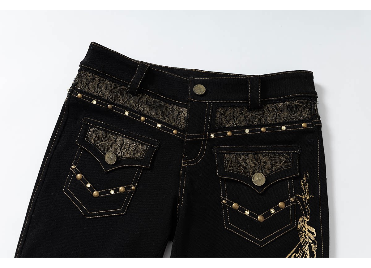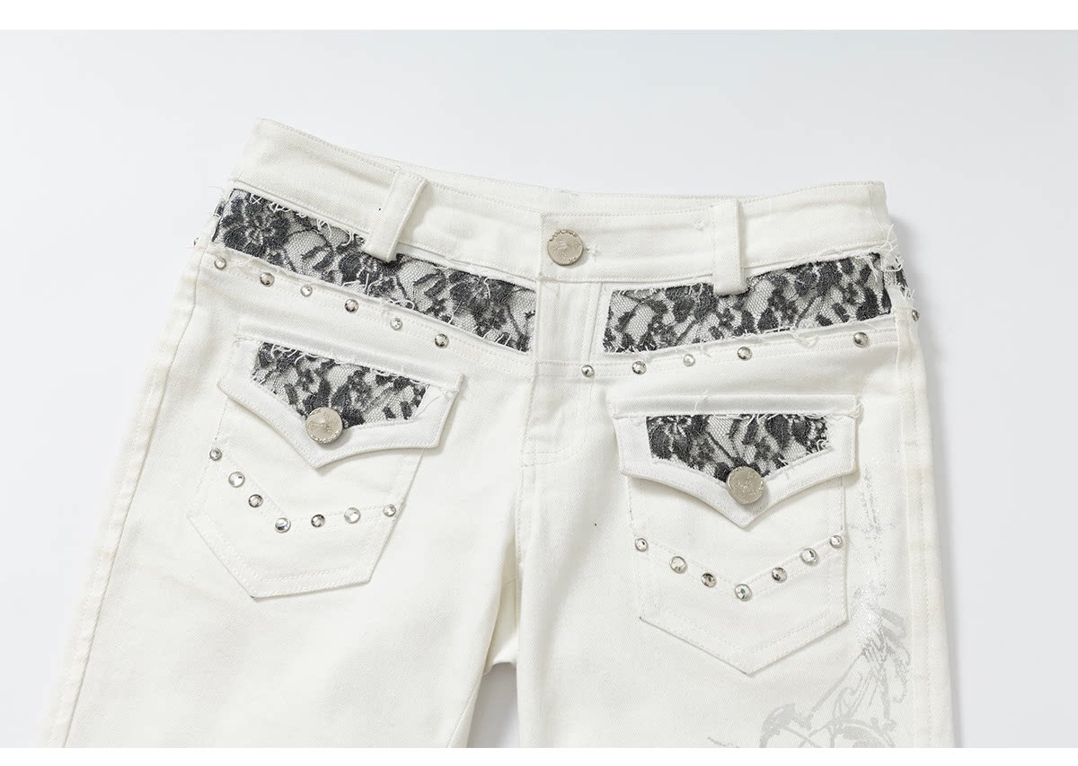 Embroidery Low Rise Straight Denim Jeans NA8998