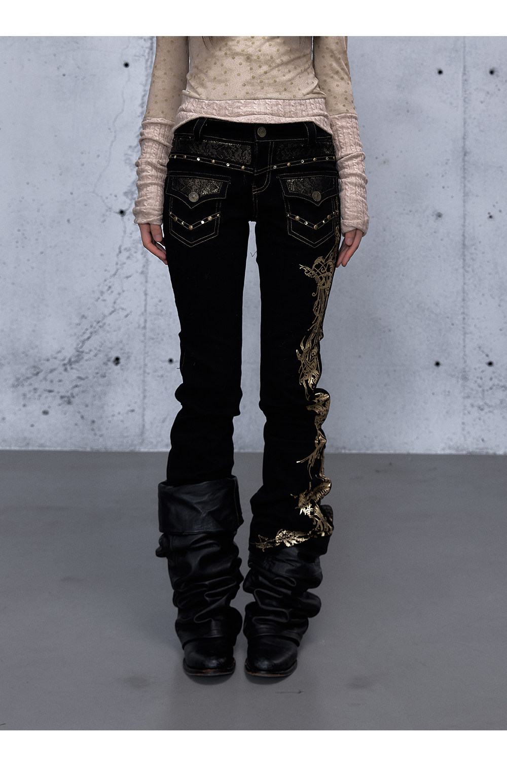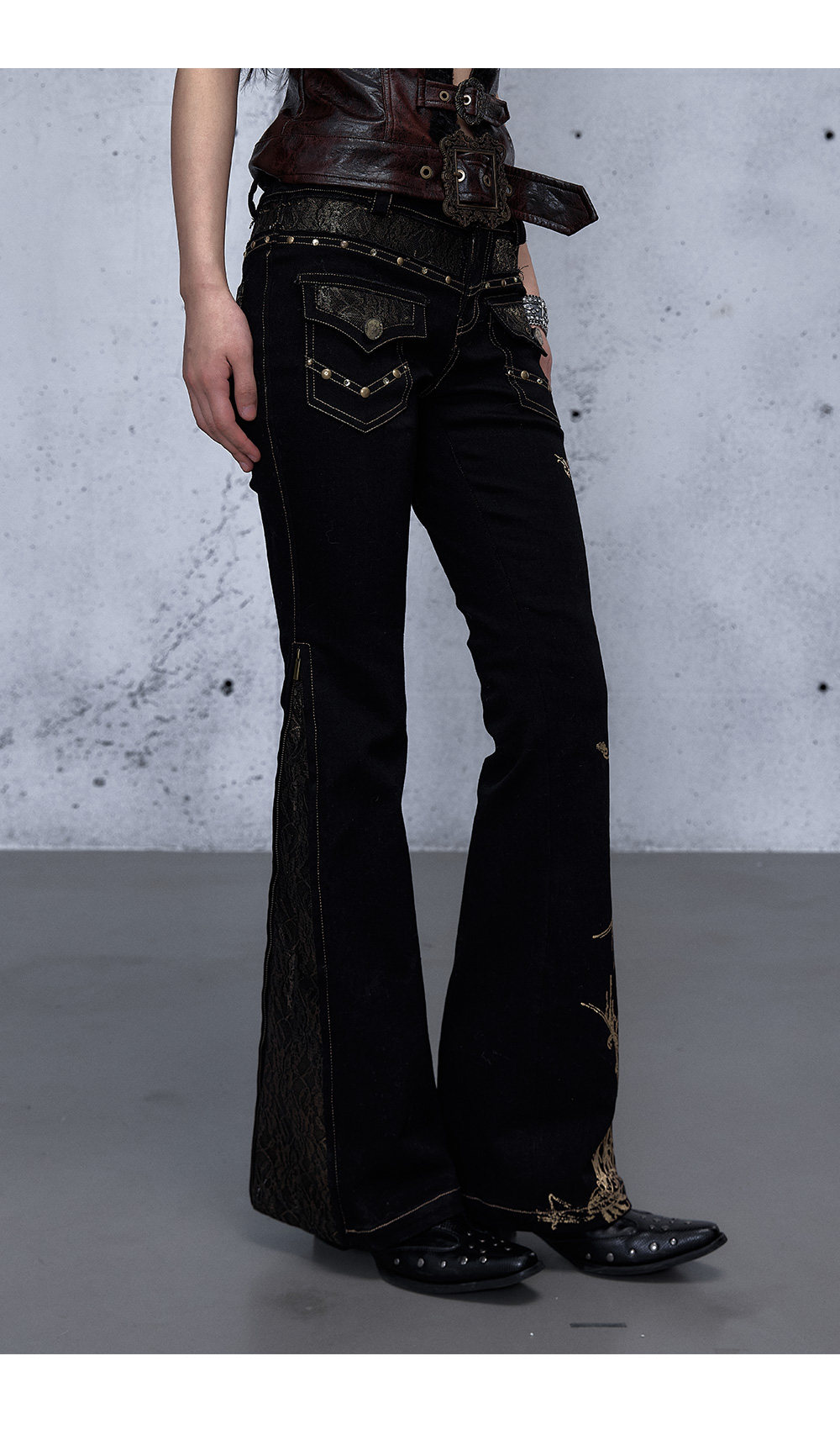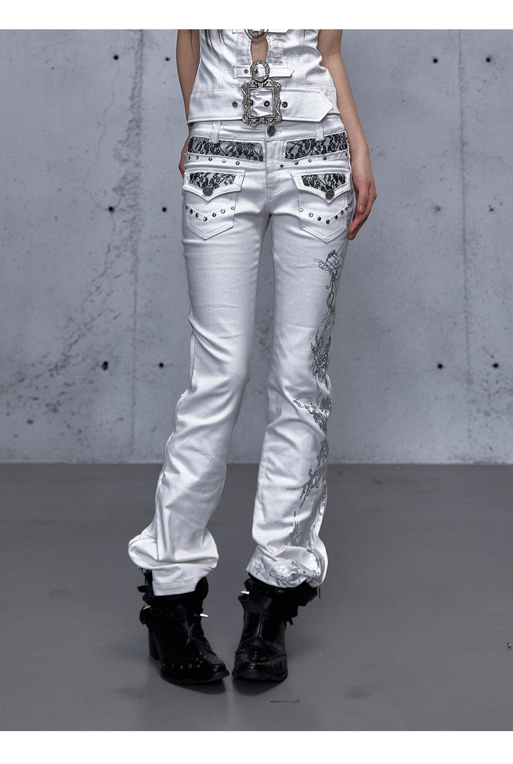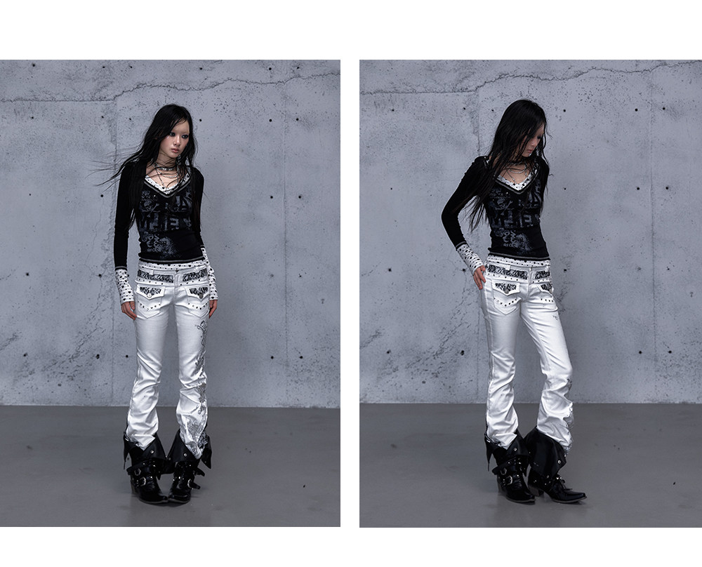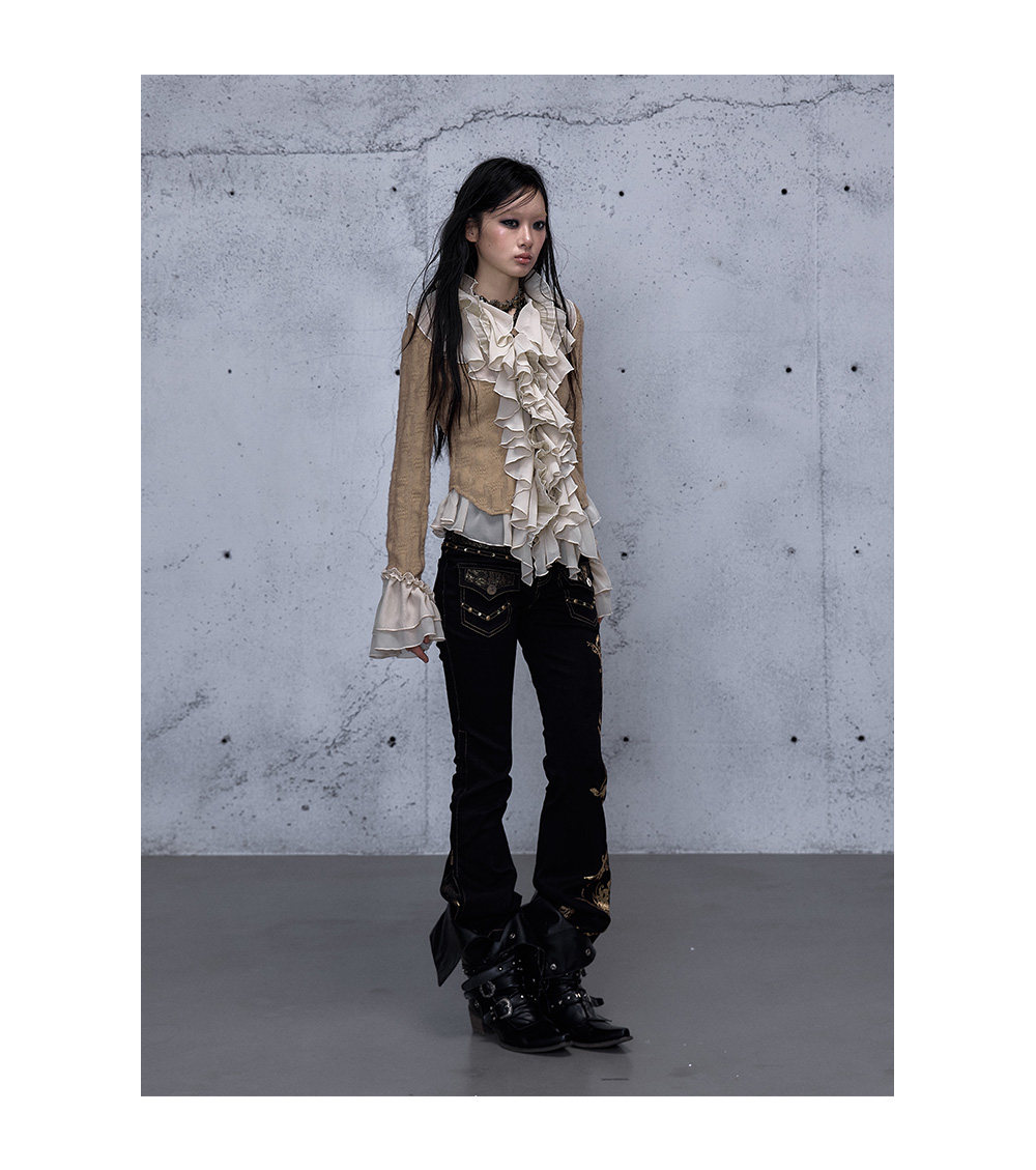 Embroidery Low Rise Straight Denim Jeans NA8998