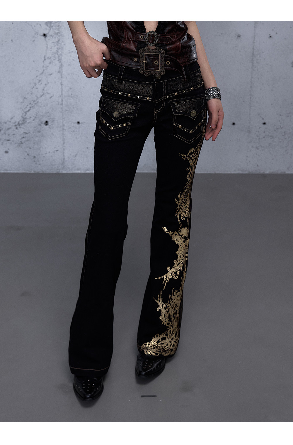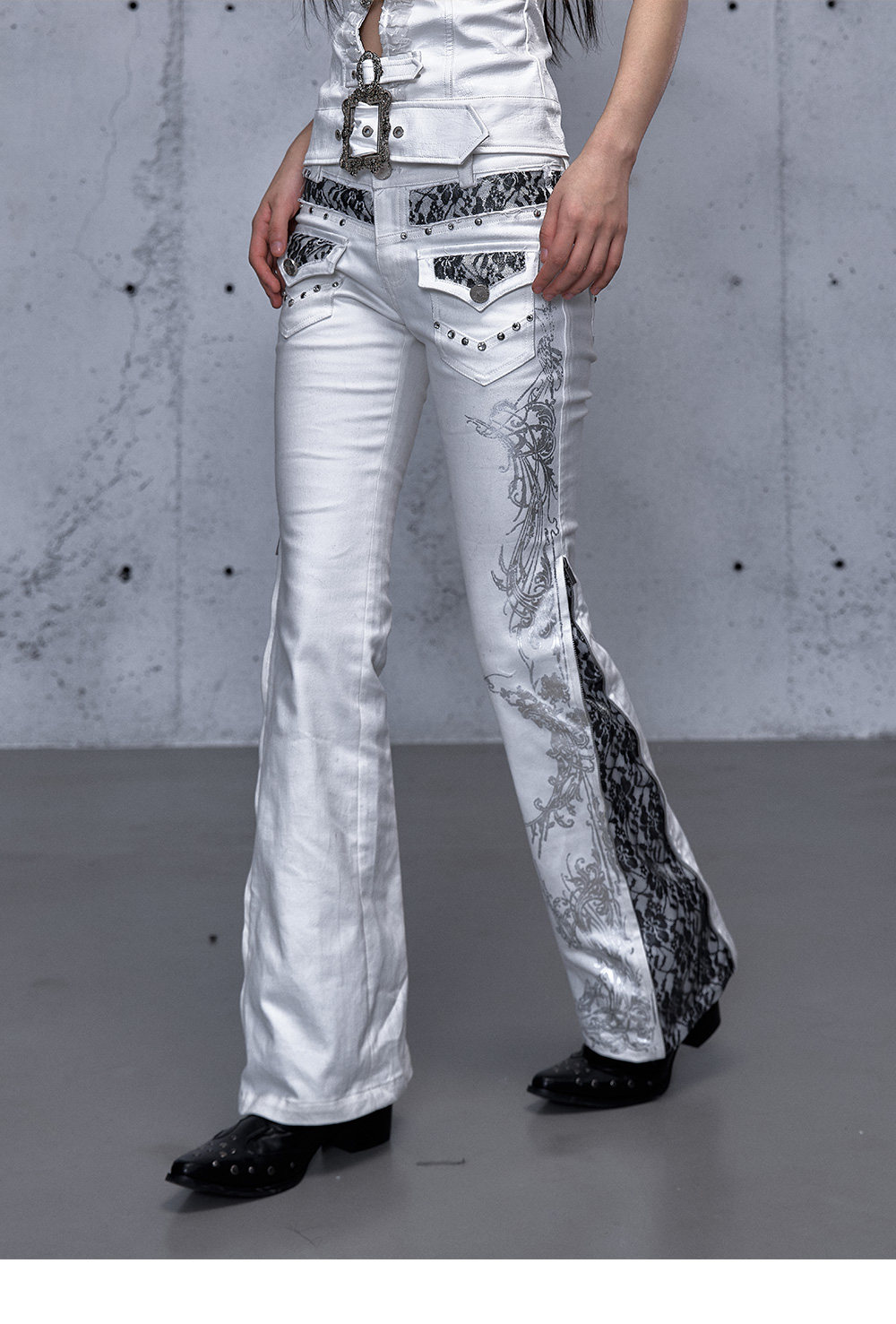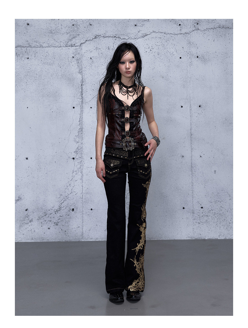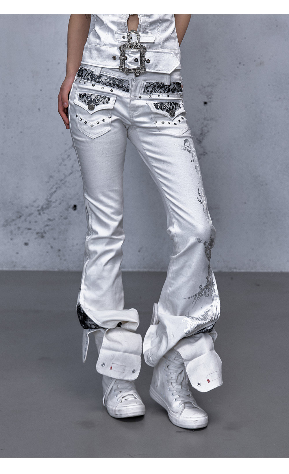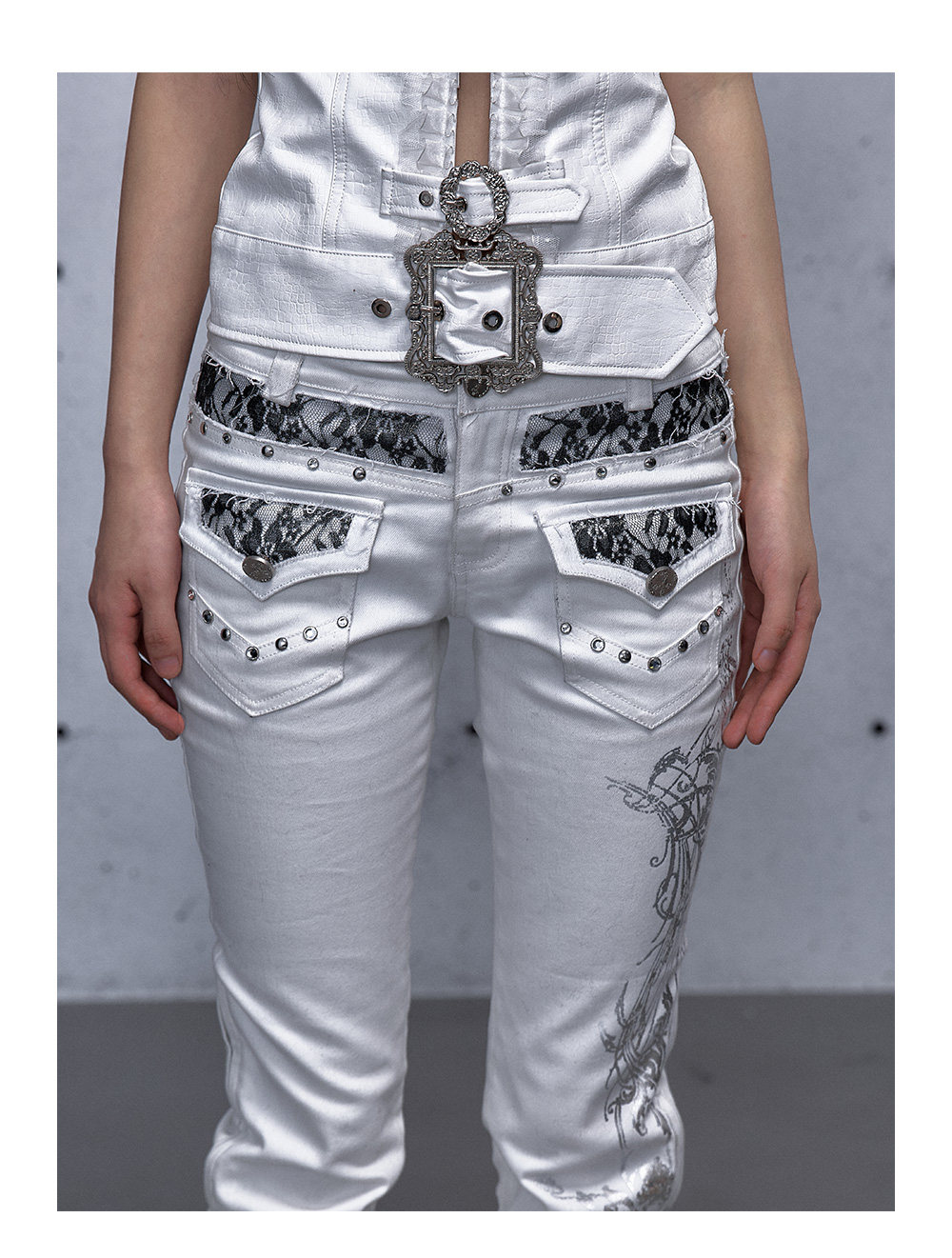 Embroidery Low Rise Straight Denim Jeans NA8998