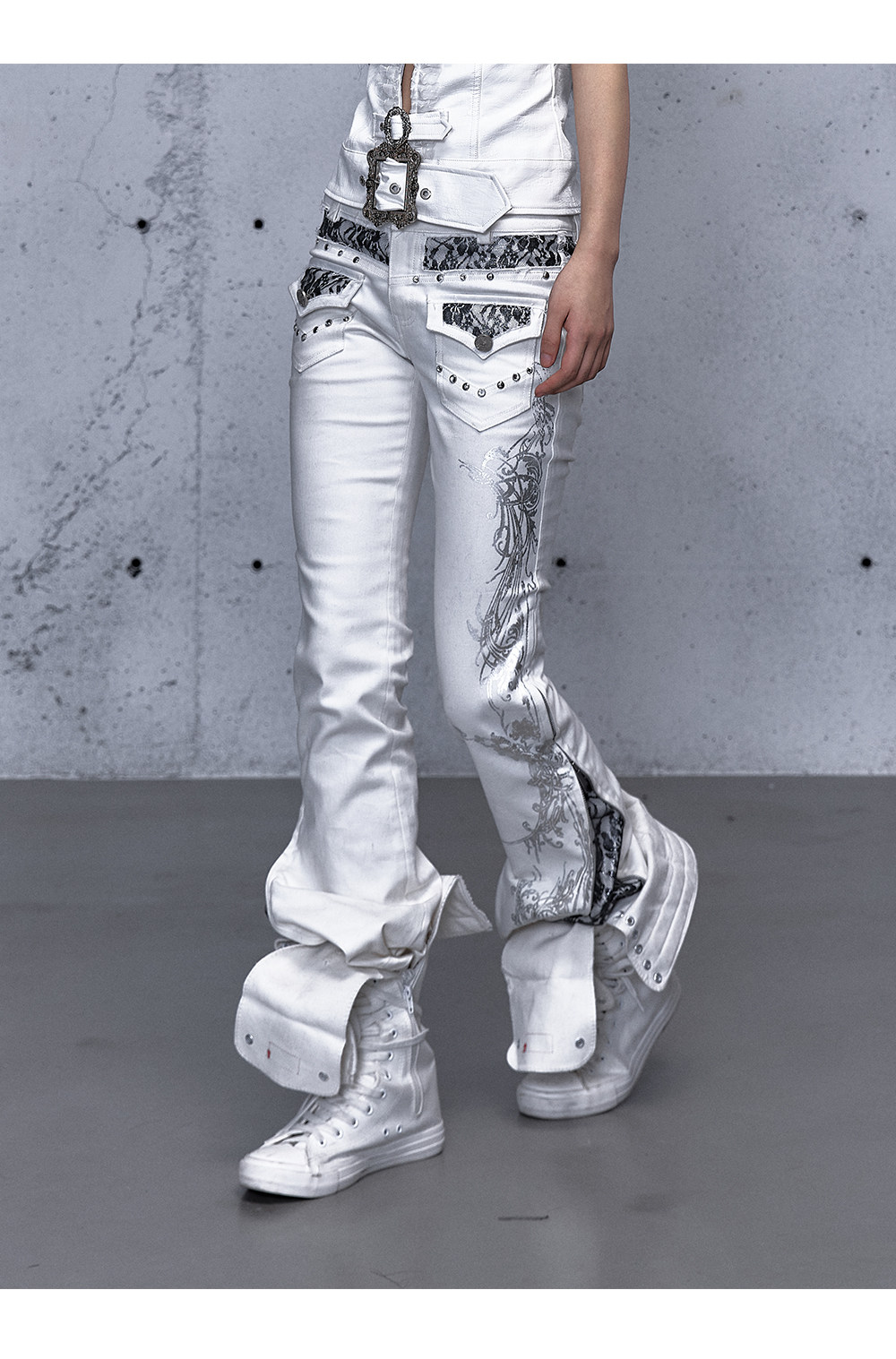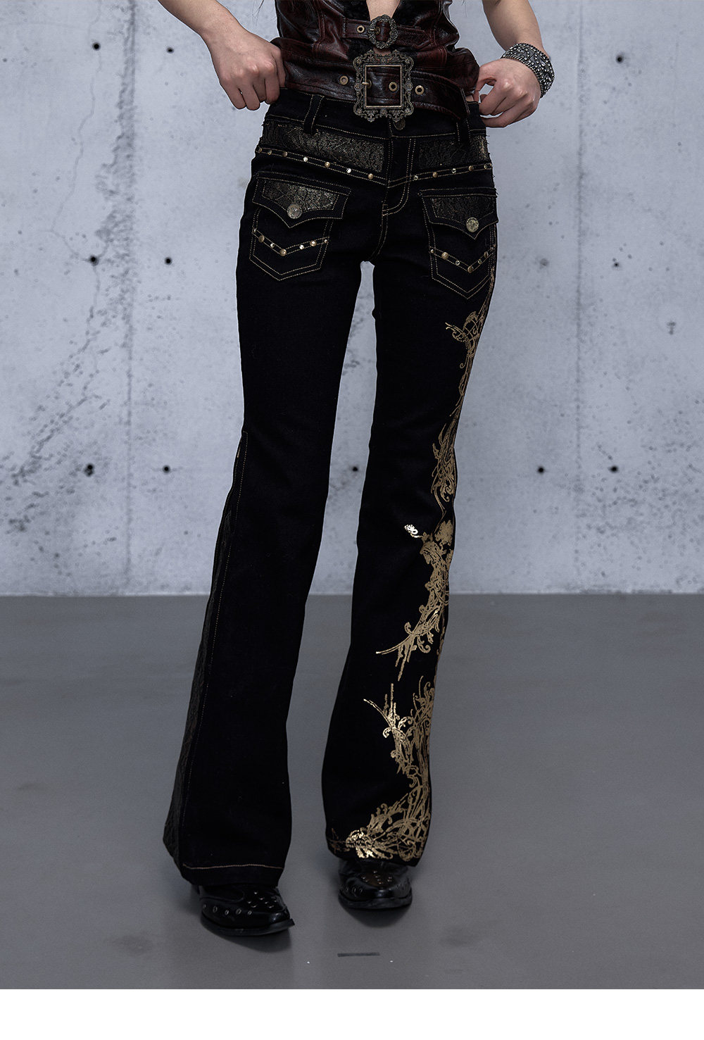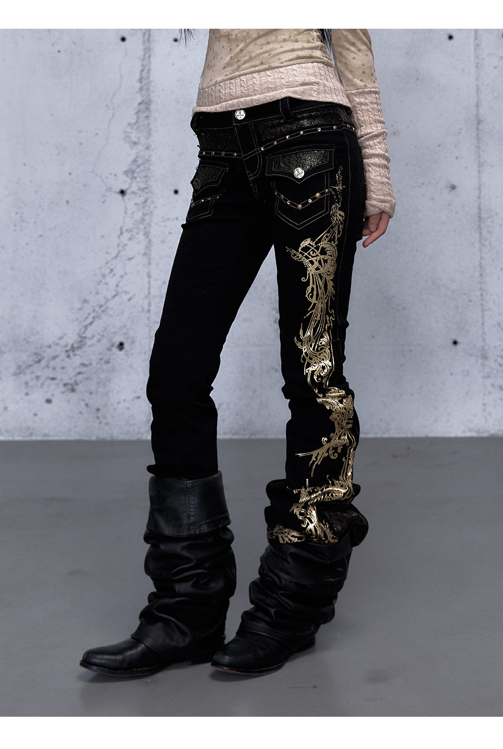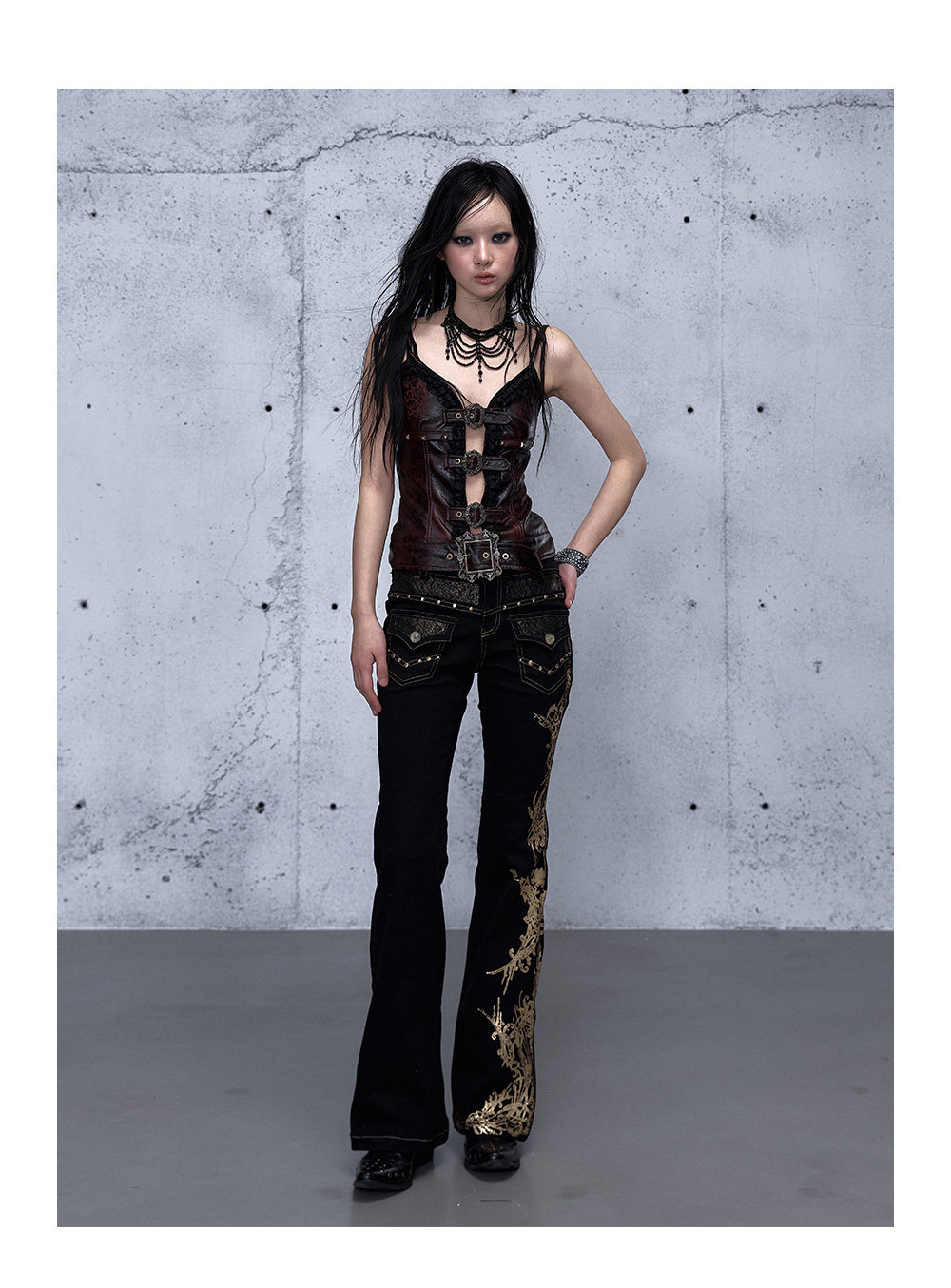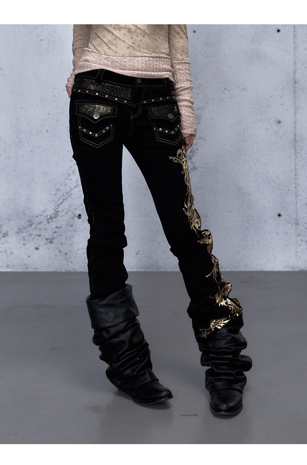 Embroidery Low Rise Straight Denim Jeans NA8998