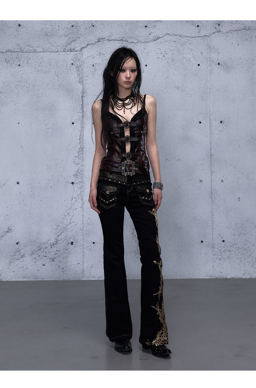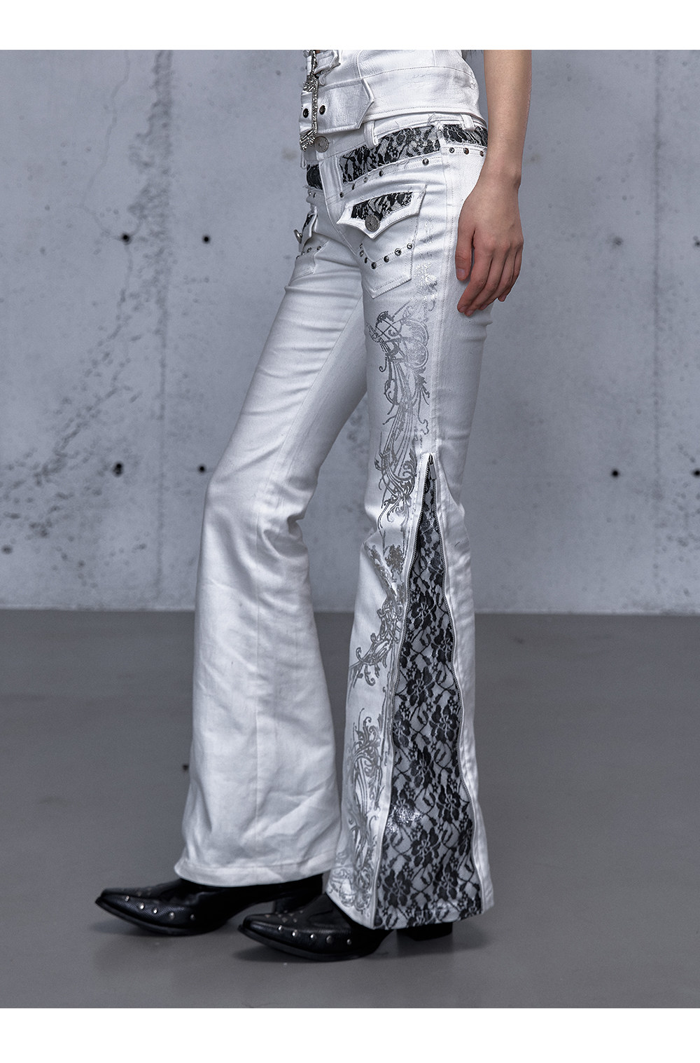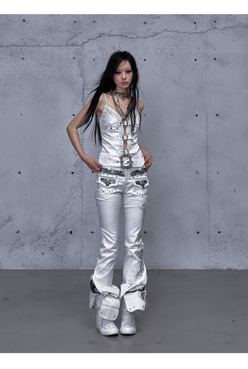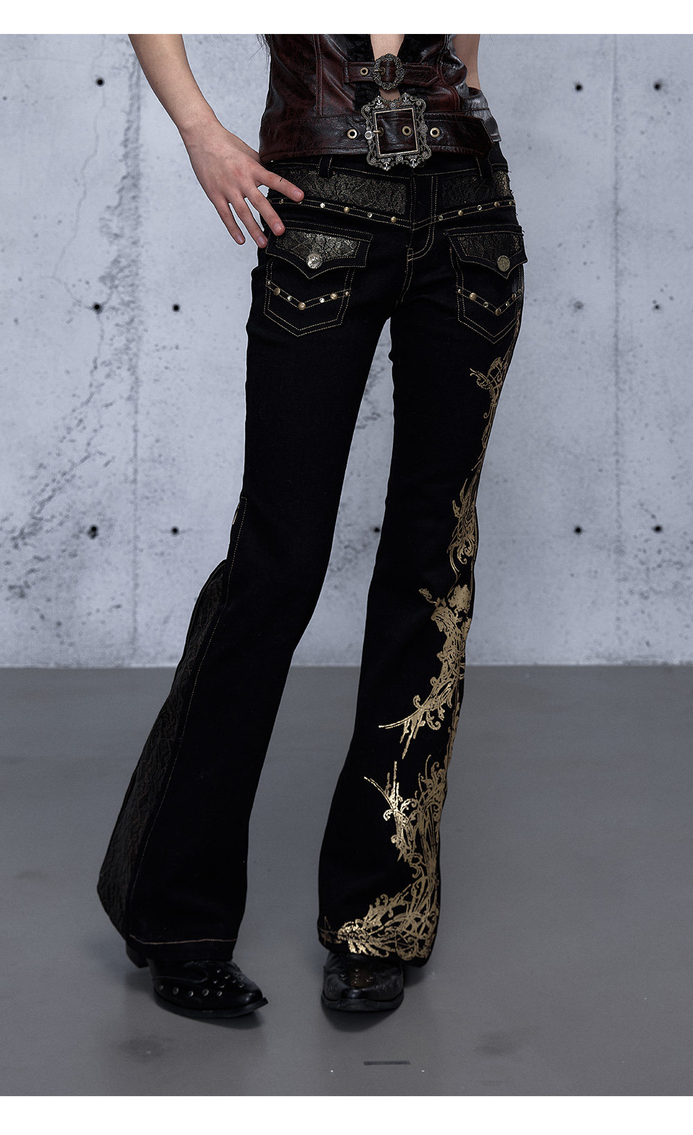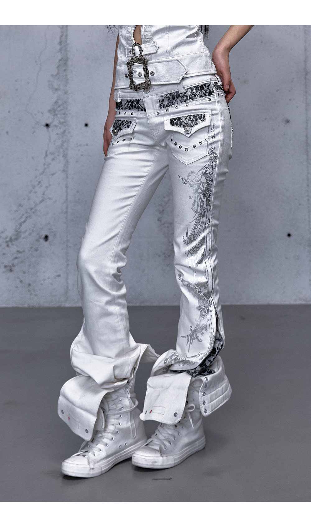 Embroidery Low Rise Straight Denim Jeans NA8998