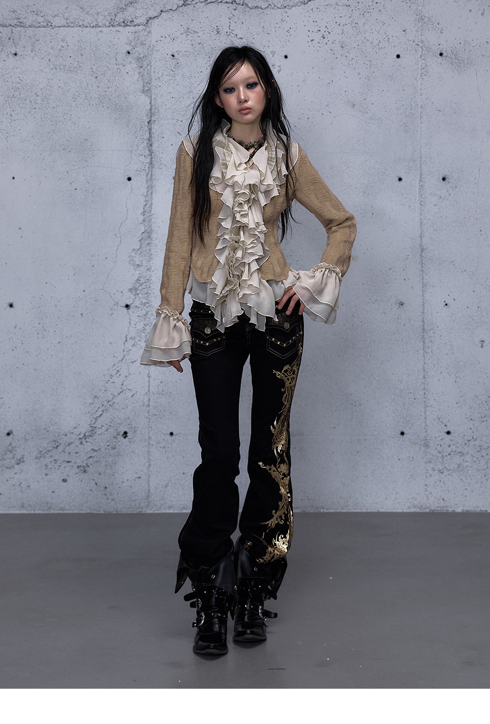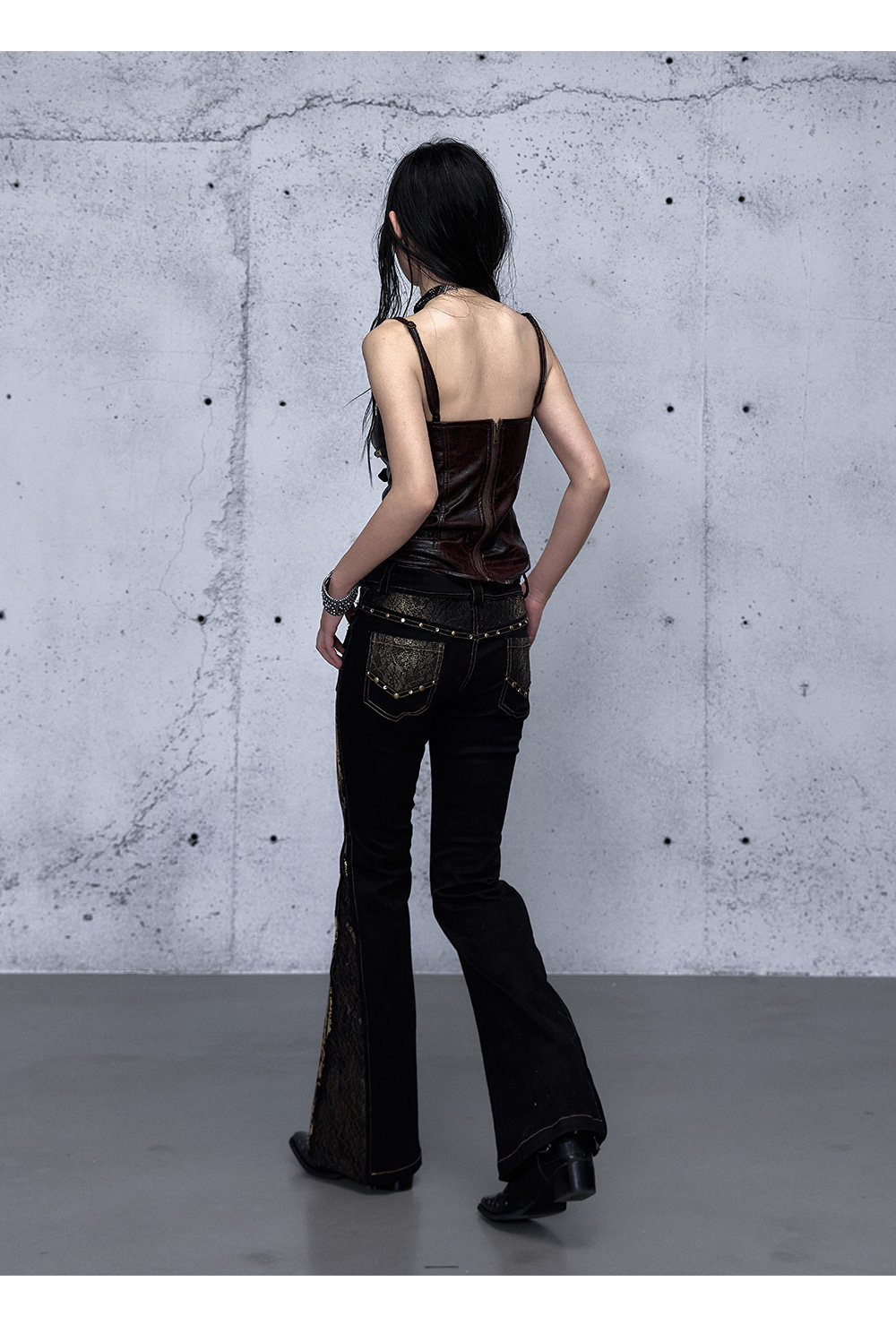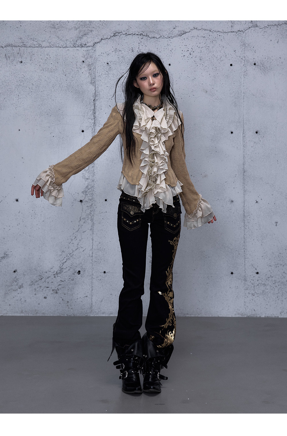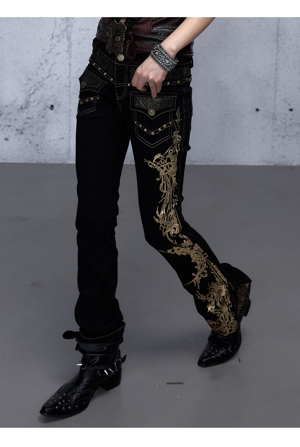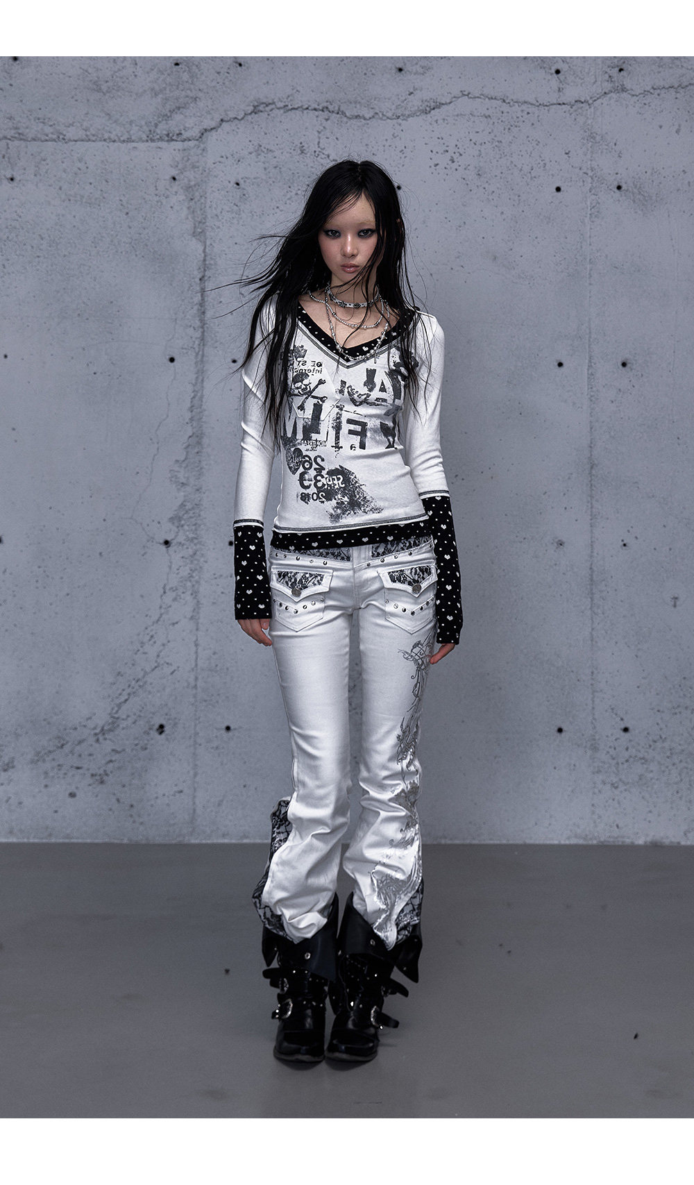 Embroidery Low Rise Straight Denim Jeans NA8998