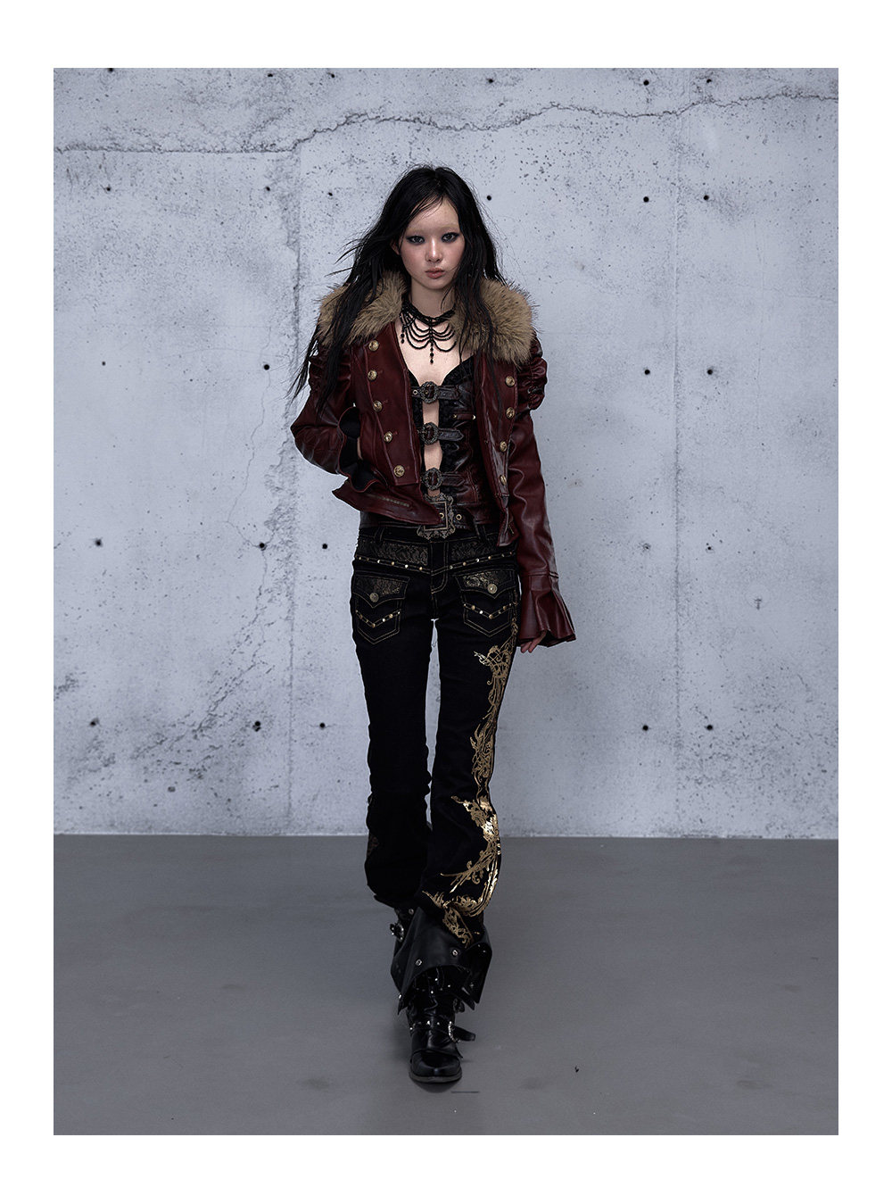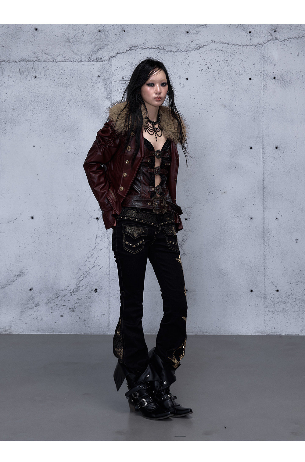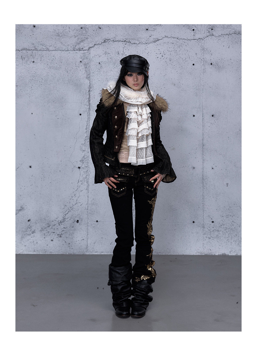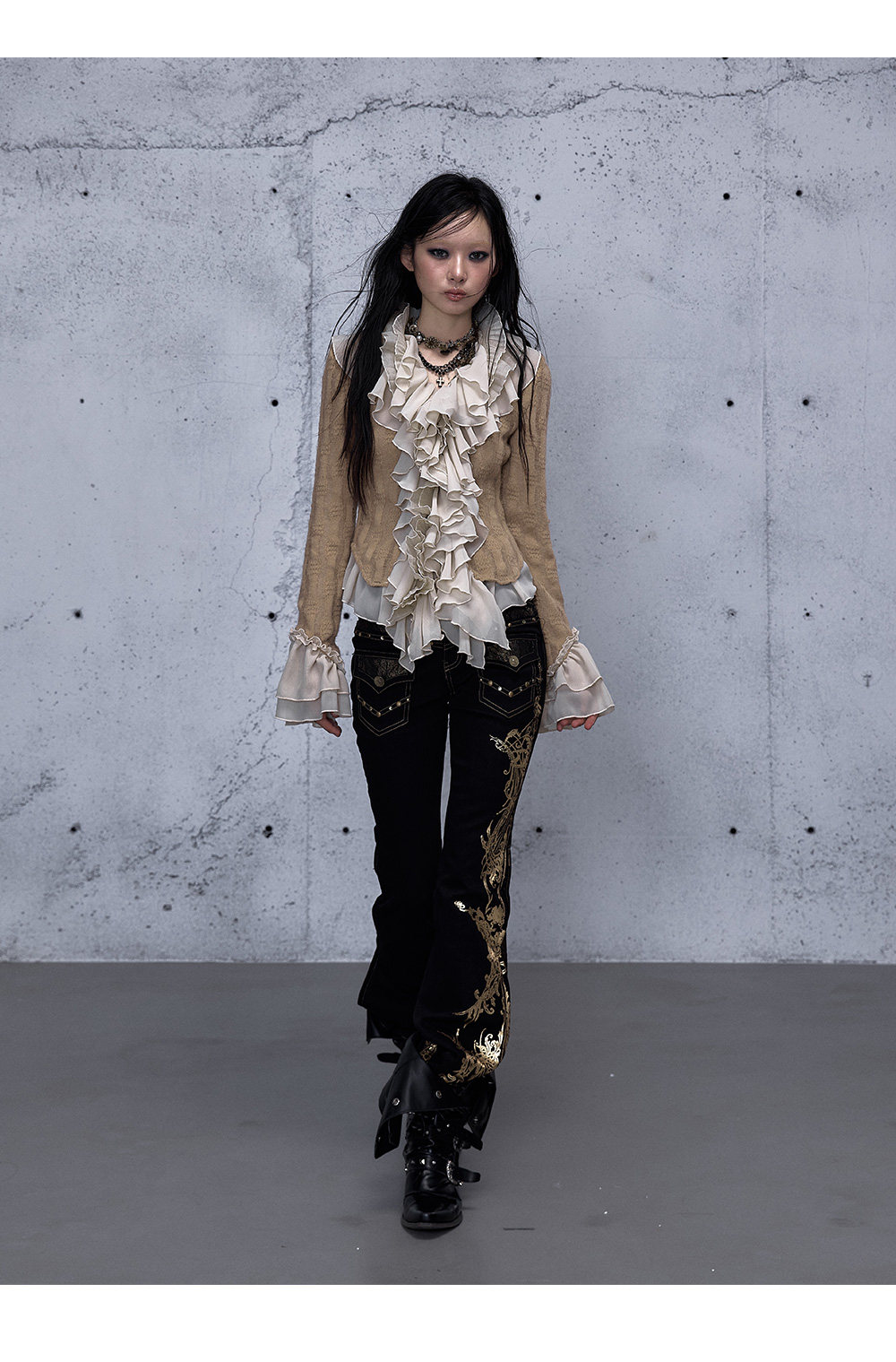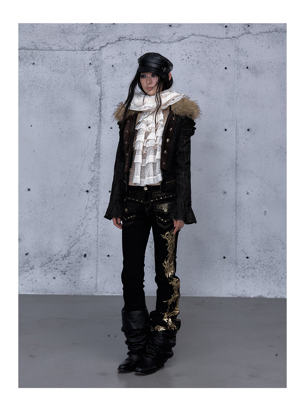 Embroidery Low Rise Straight Denim Jeans NA8998