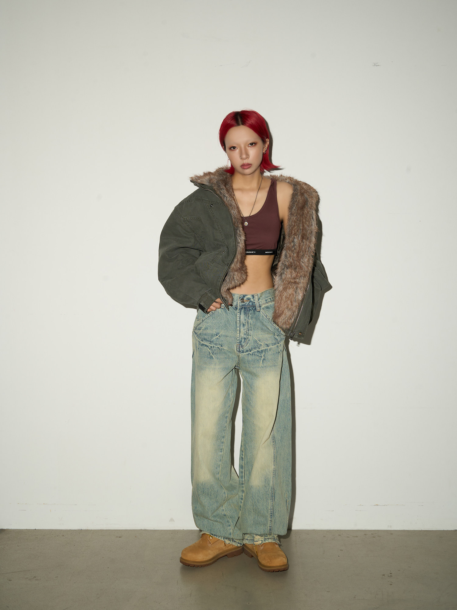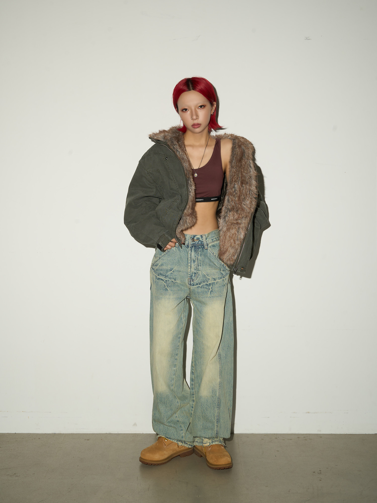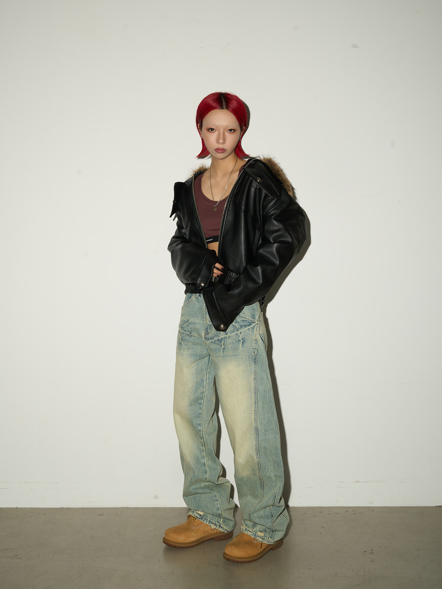 Washed Wide Leg Denim Jeans NA9110