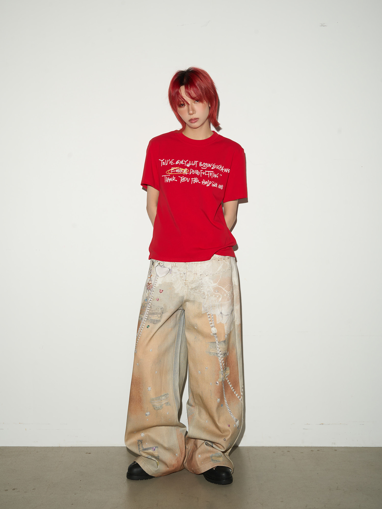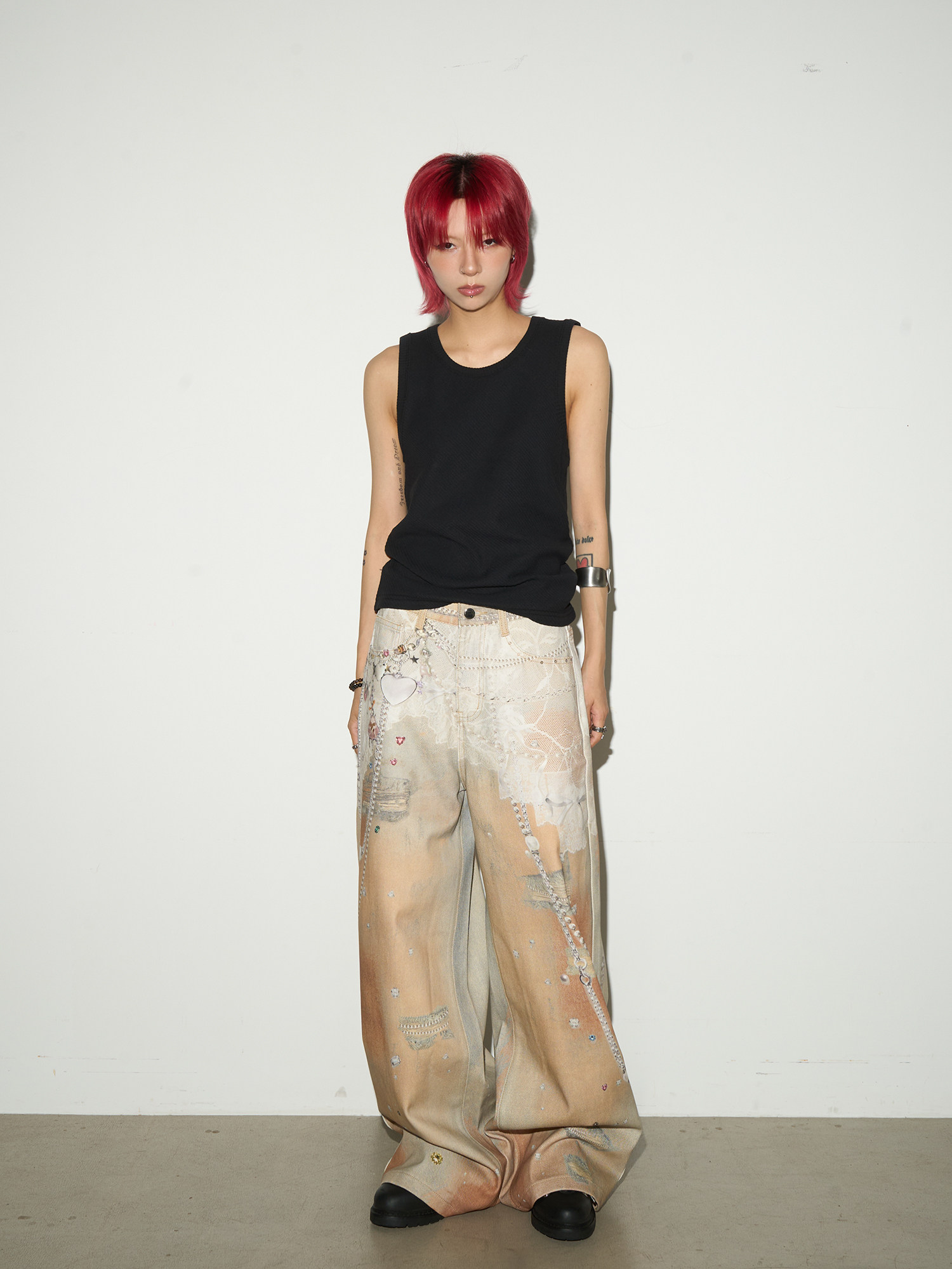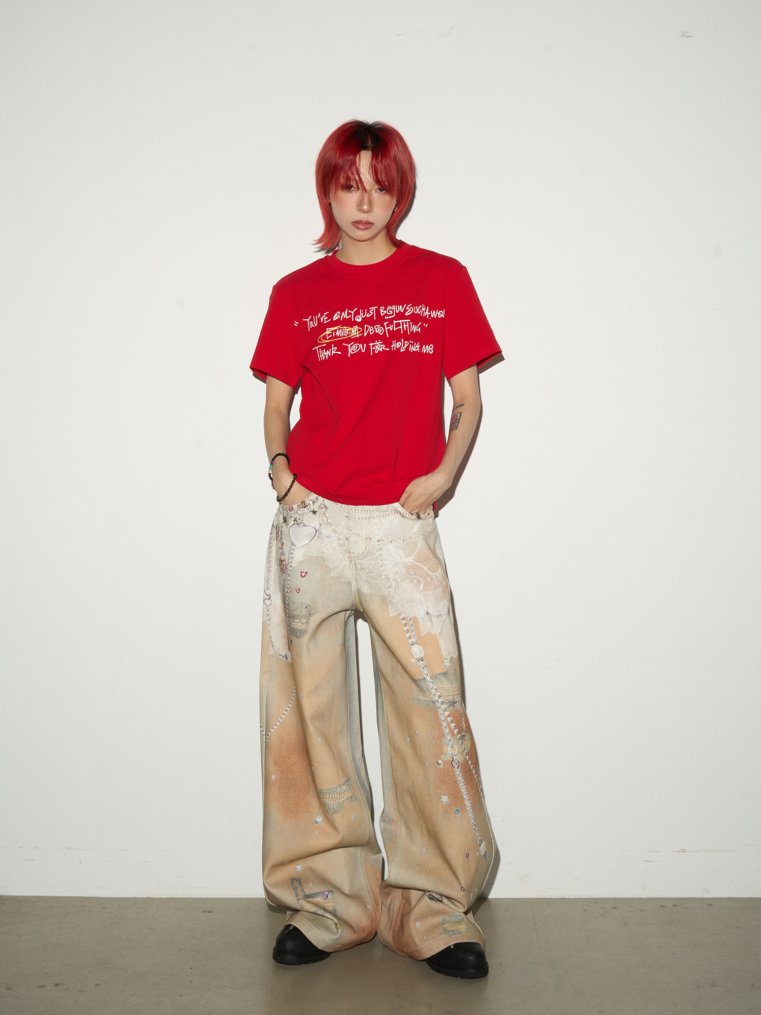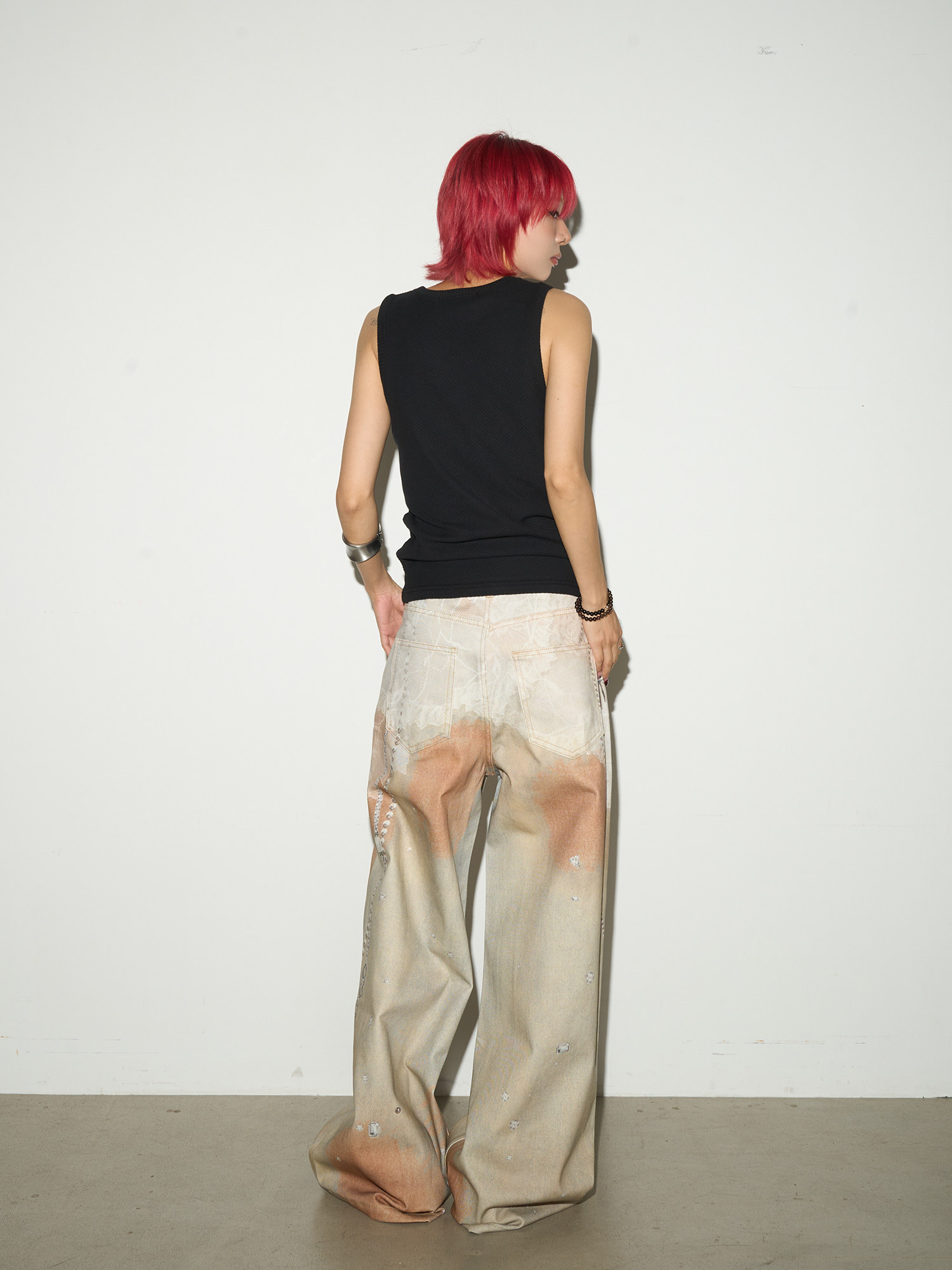 Digital Hand-Drawn Print Wide Leg Denim Jeans NA9112