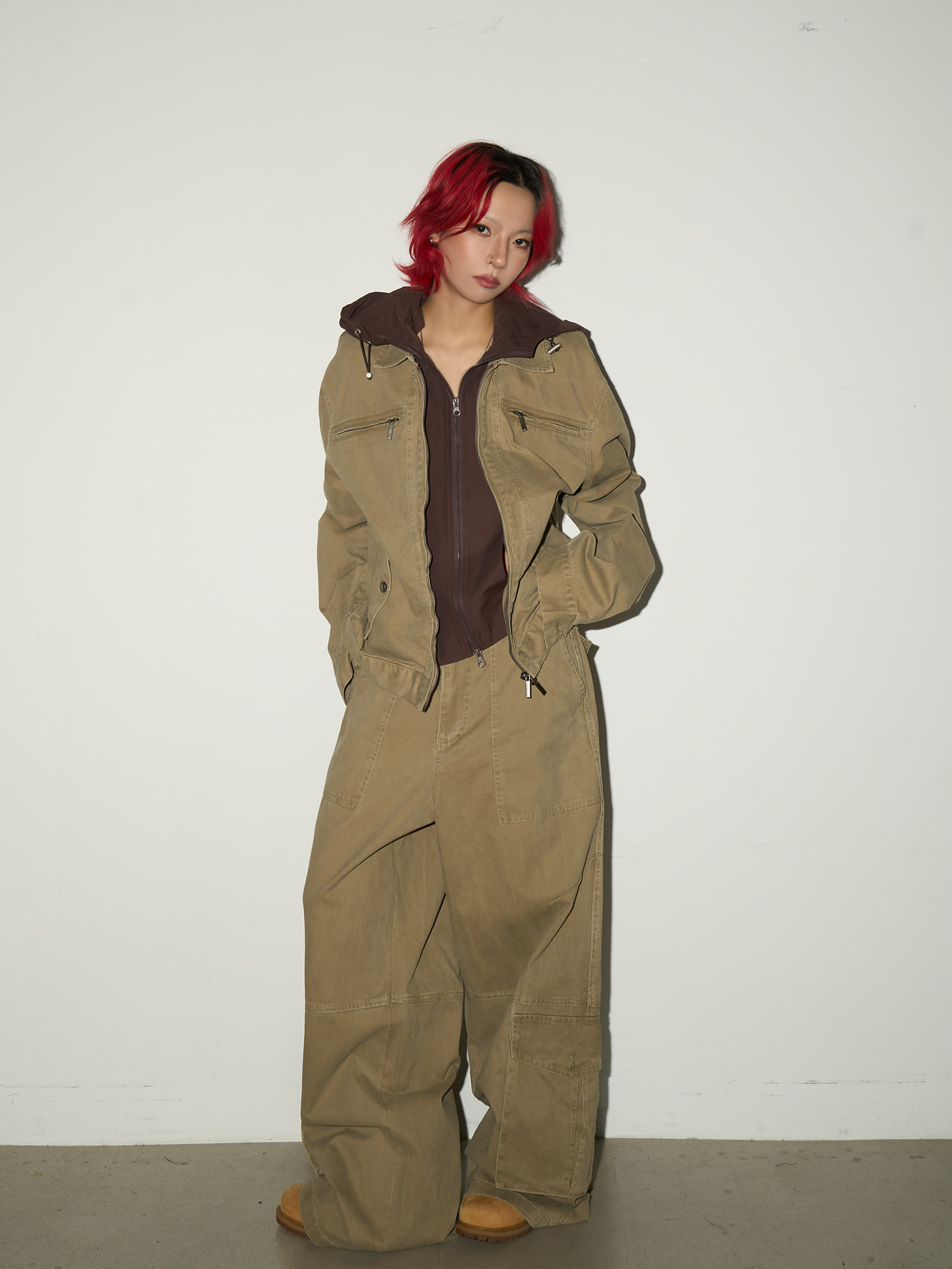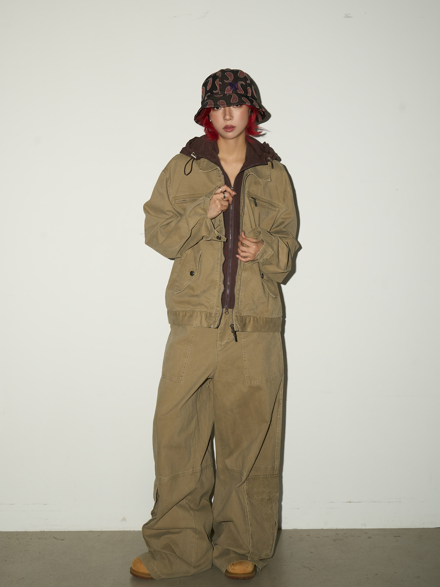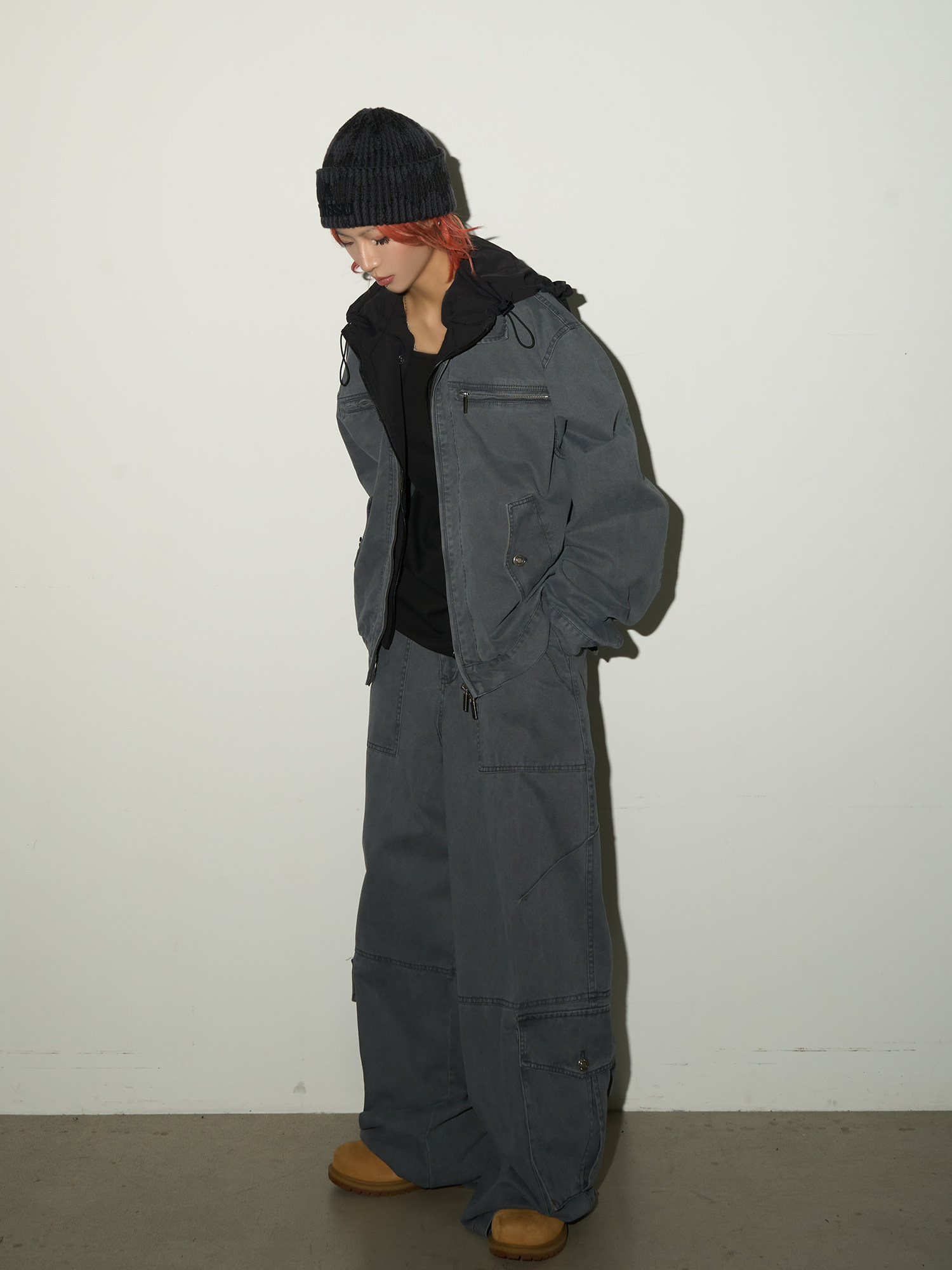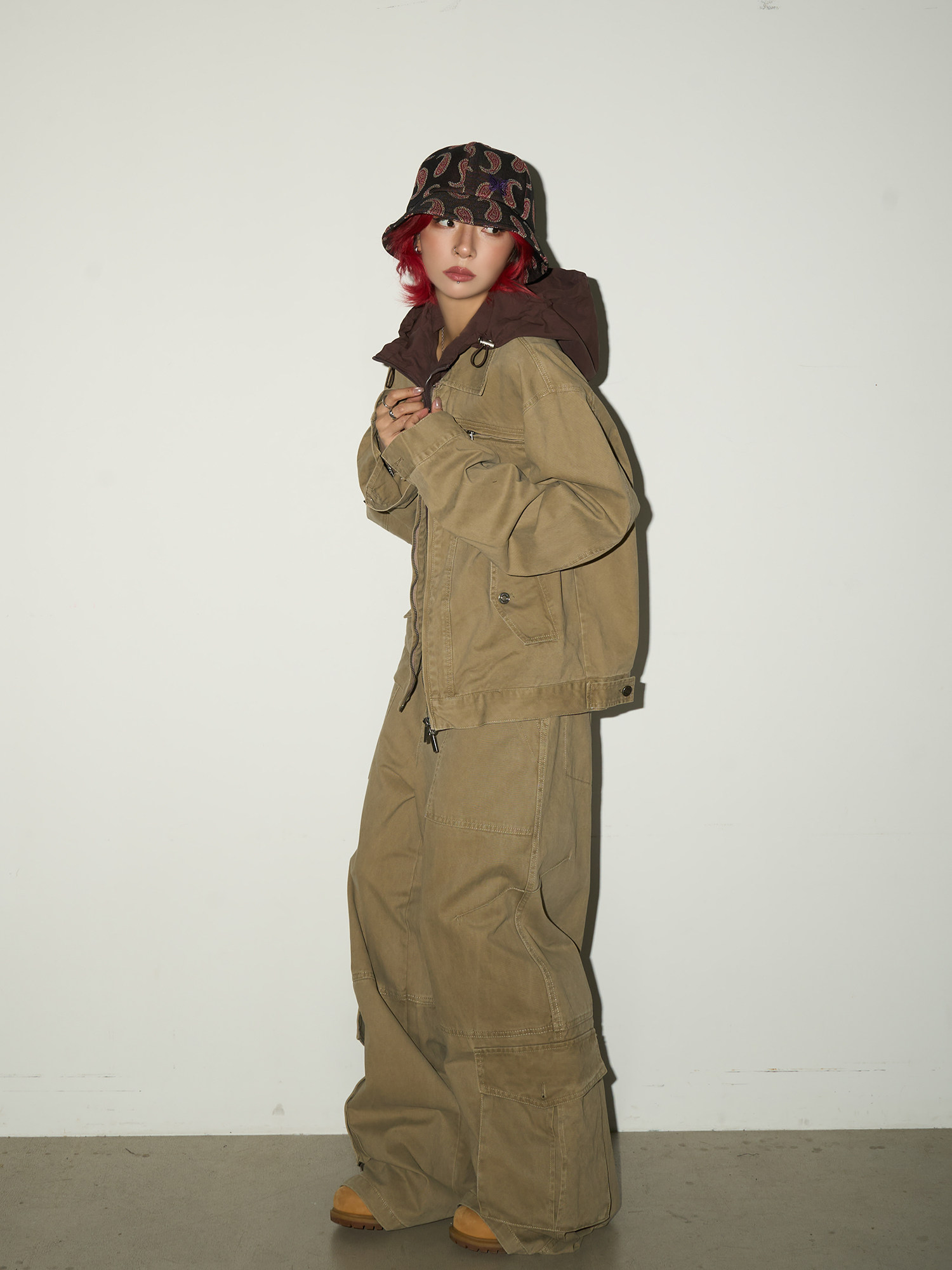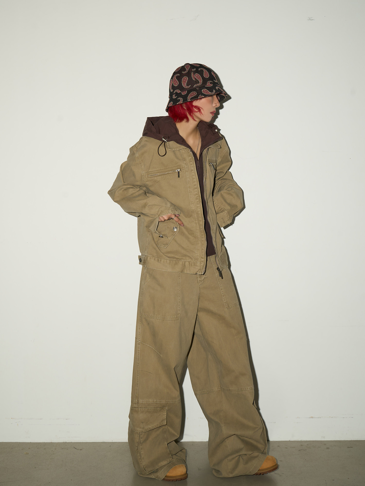 Fake Layered Hooded Jacket & Multi Pocket Cargo Pants Setup NA9118