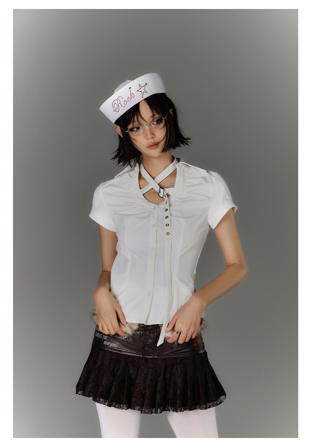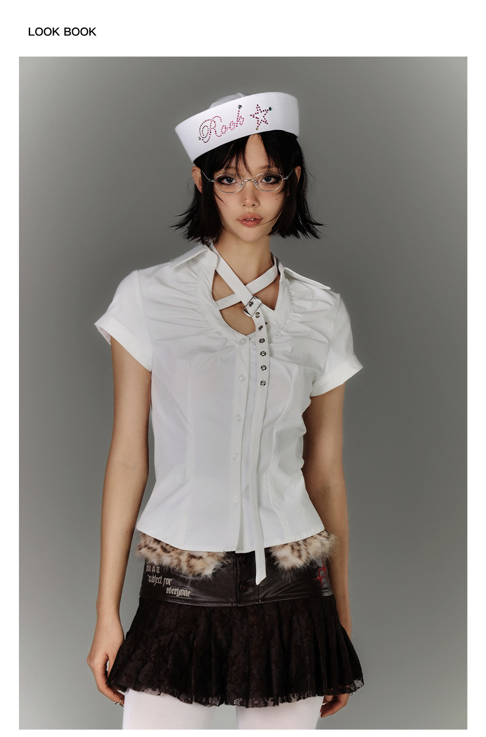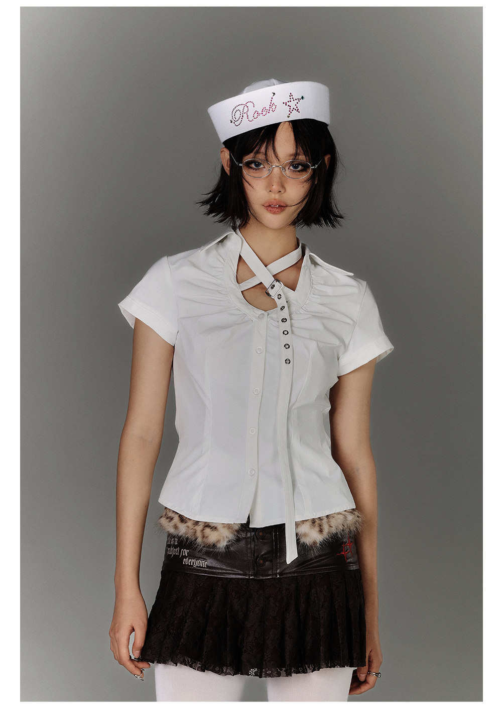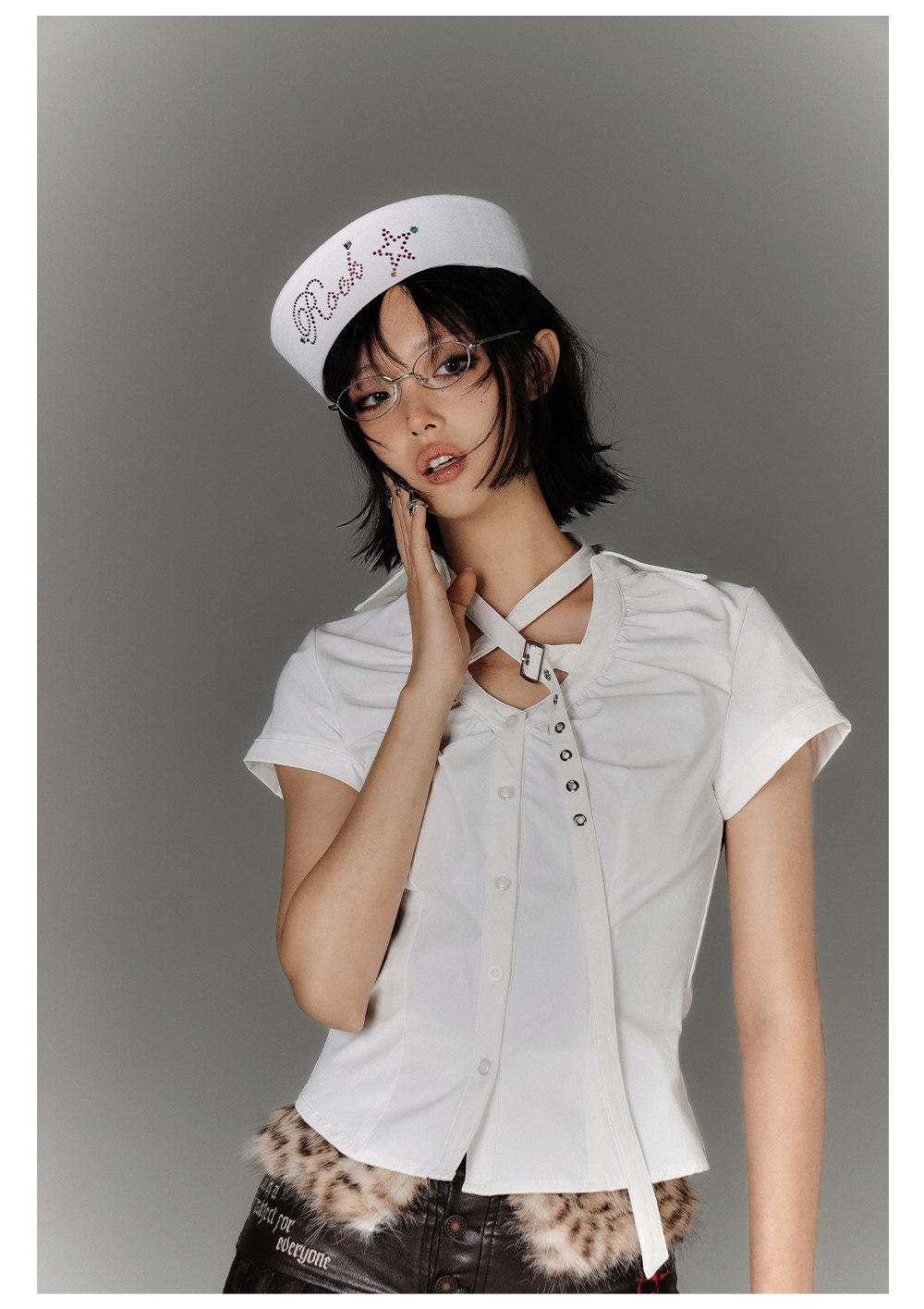 Button Strap Detail Fitted Short Sleeve Shirt NA9229