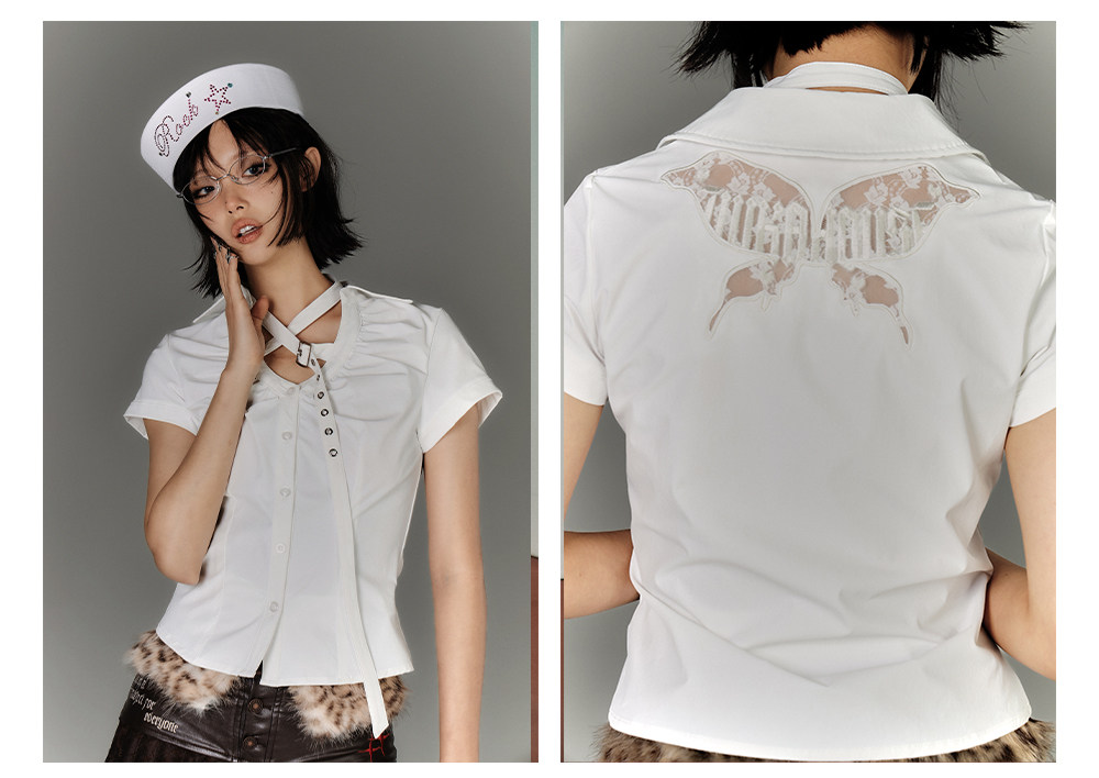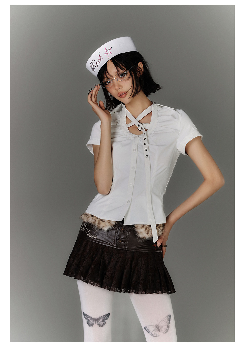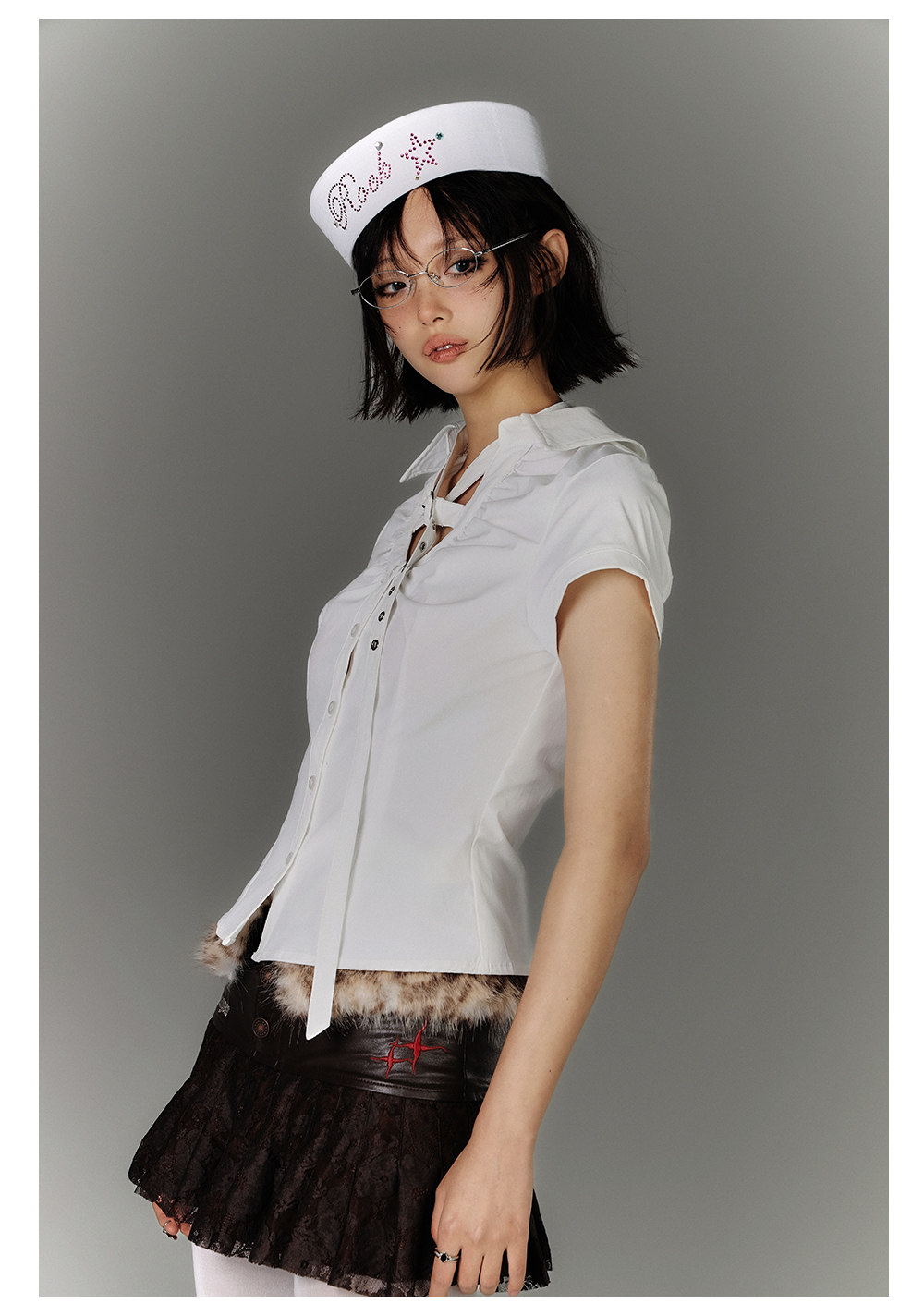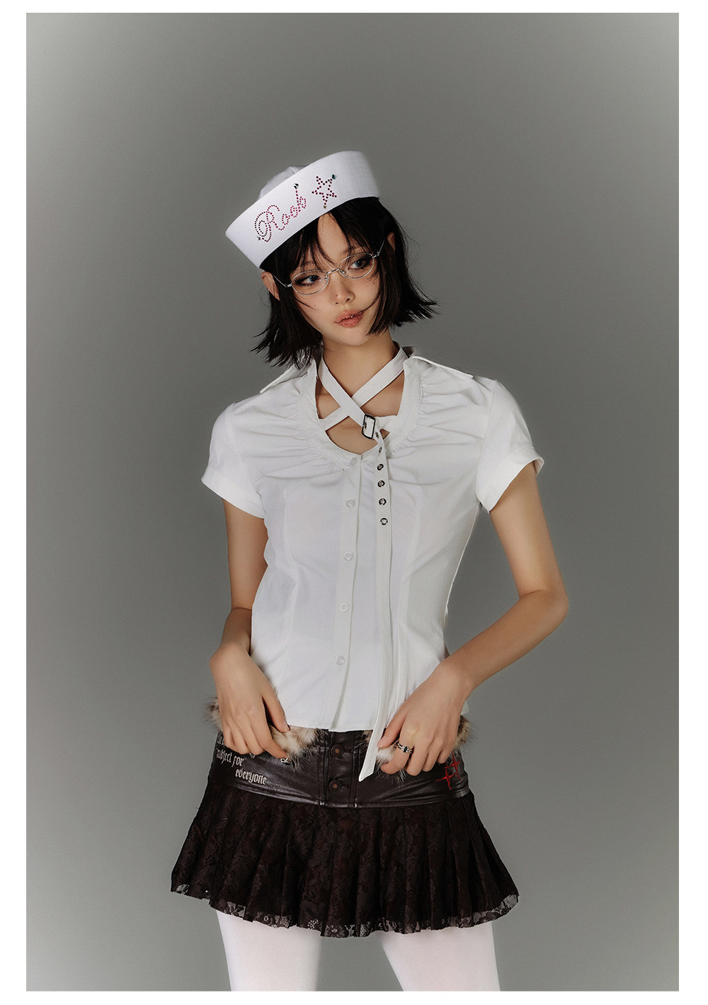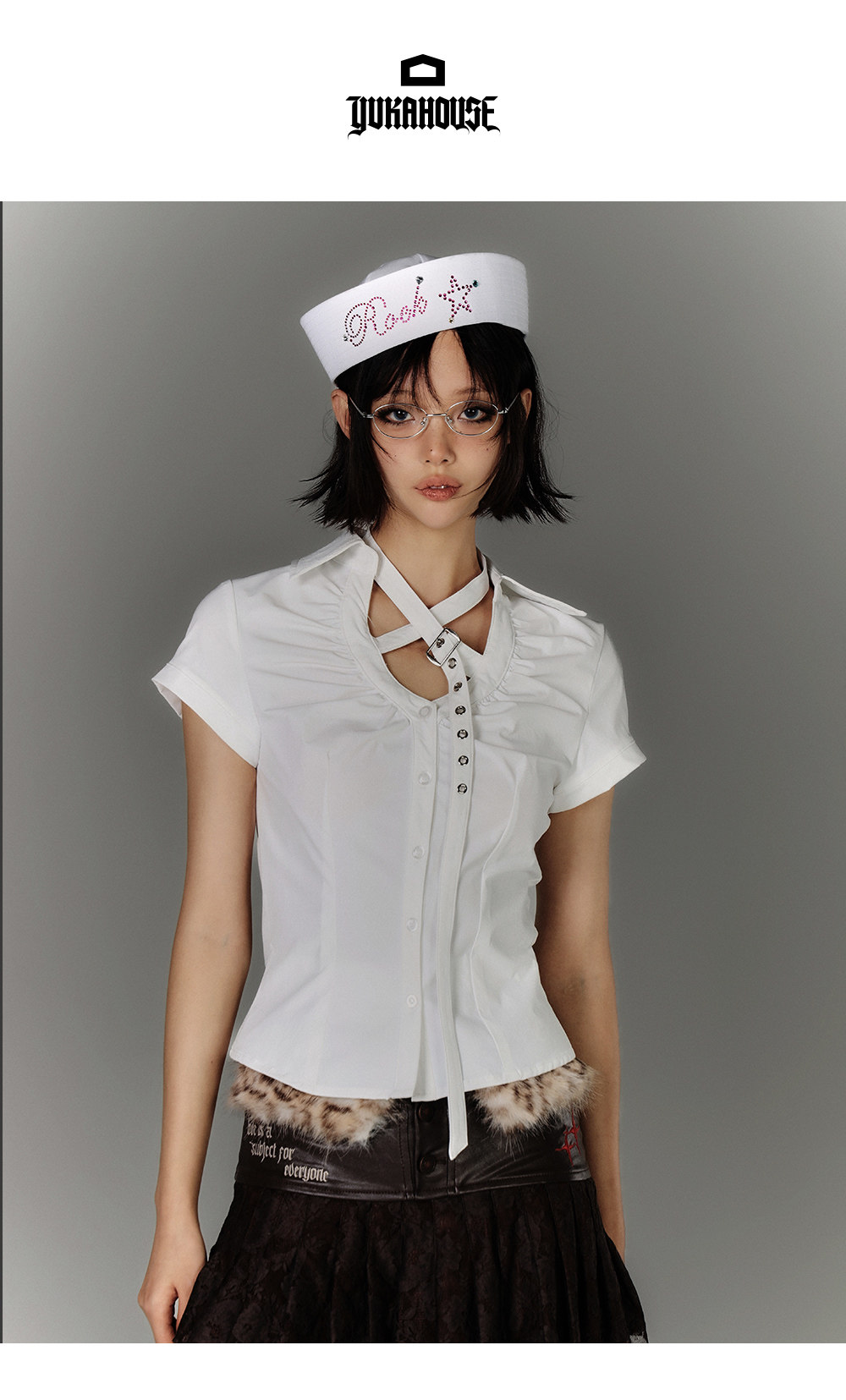 Button Strap Detail Fitted Short Sleeve Shirt NA9229