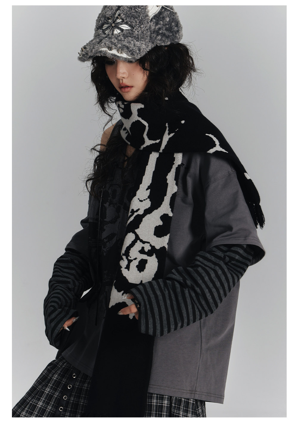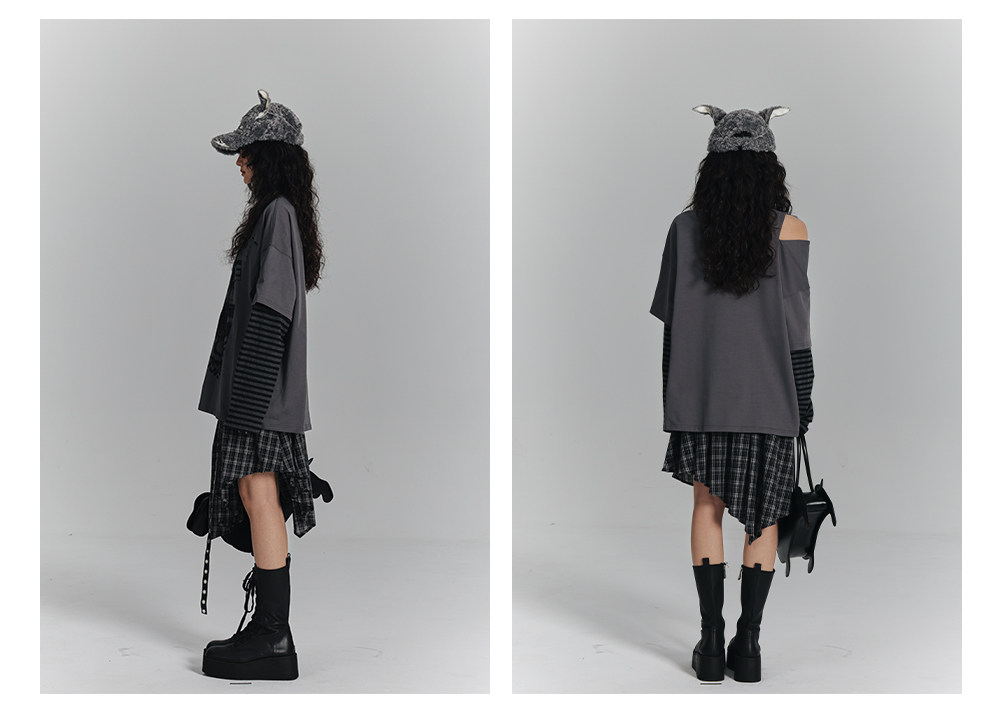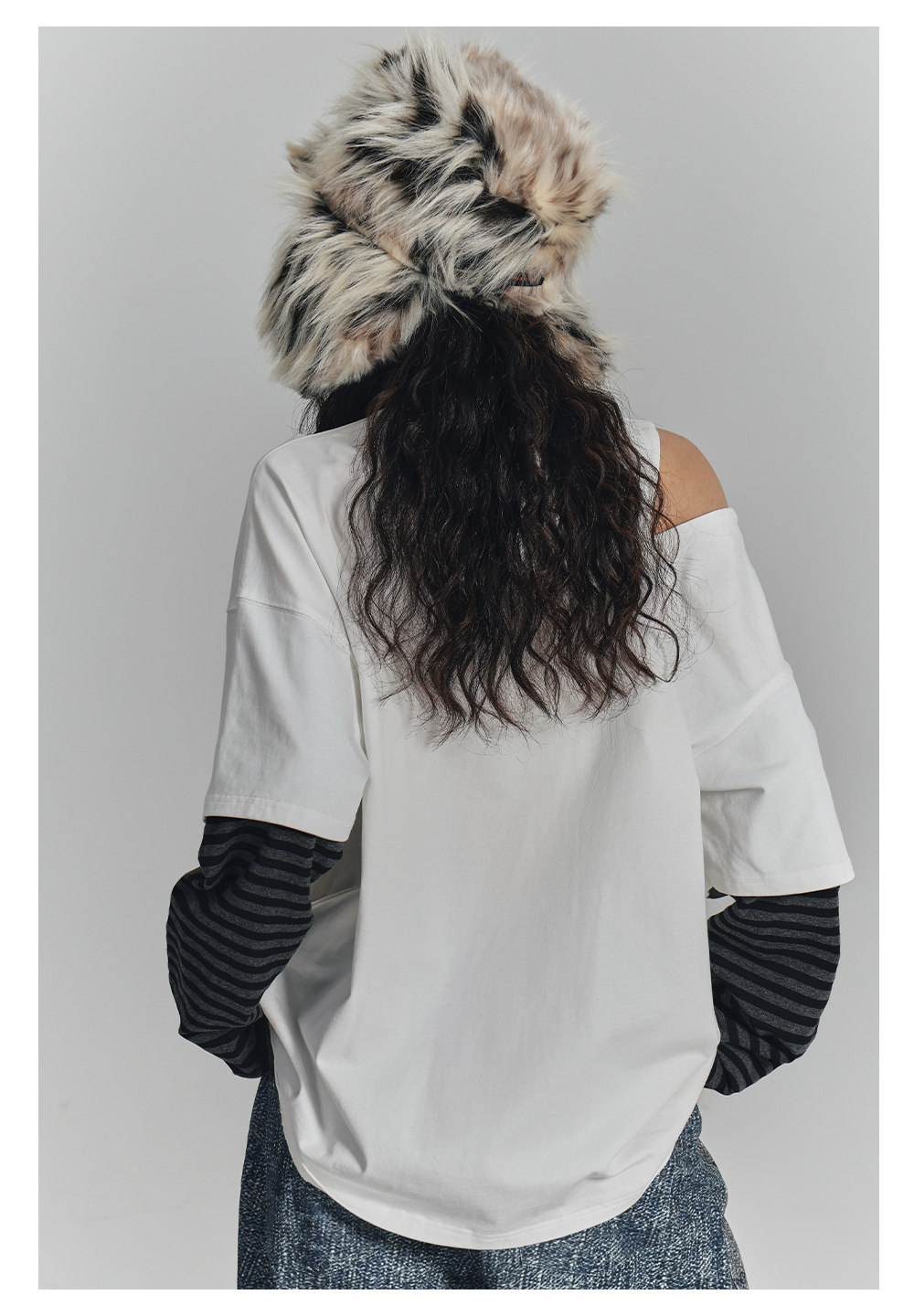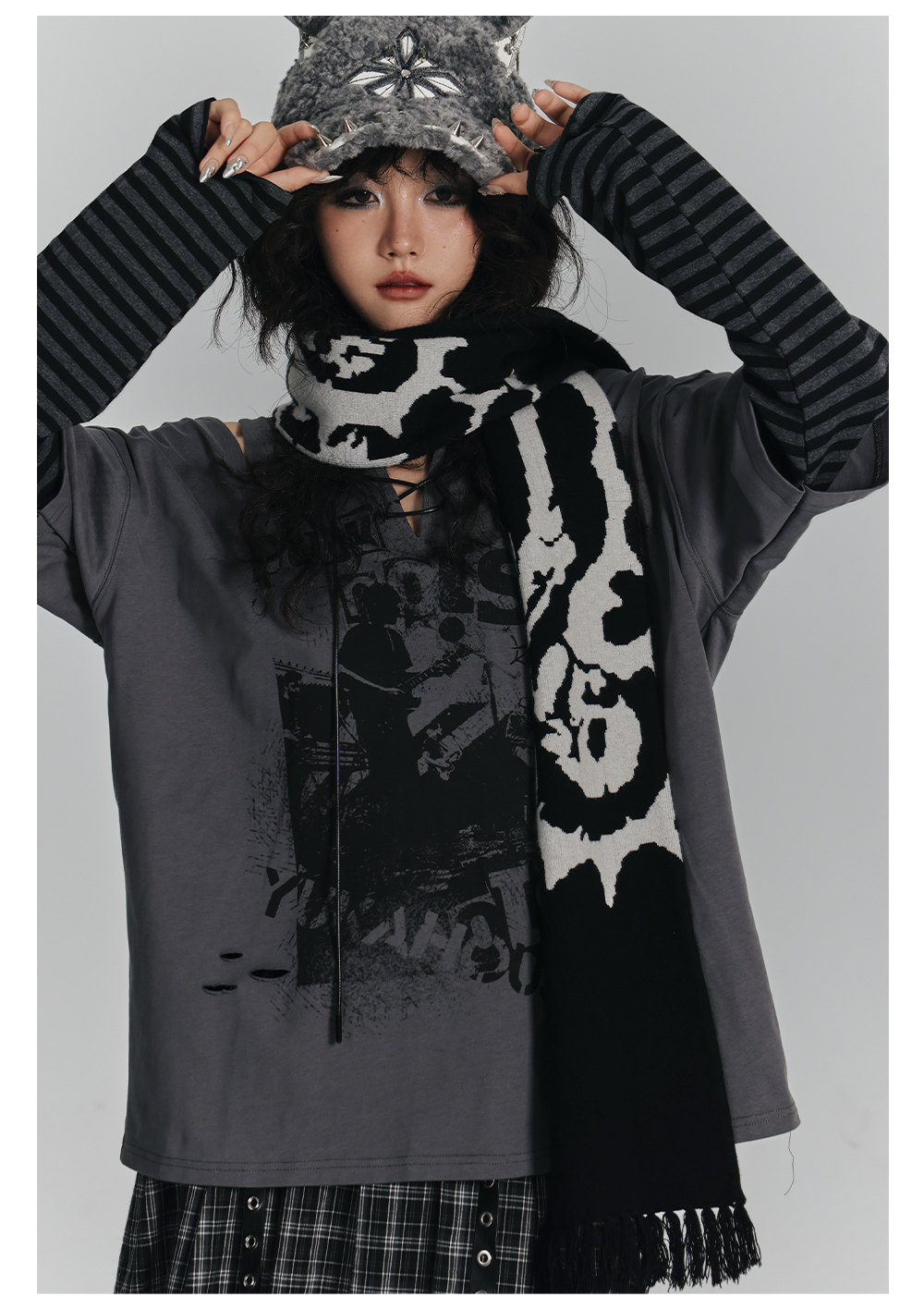 Fake Layered Drawstring V-Neck Long Sleeve T-Shirt NA9235