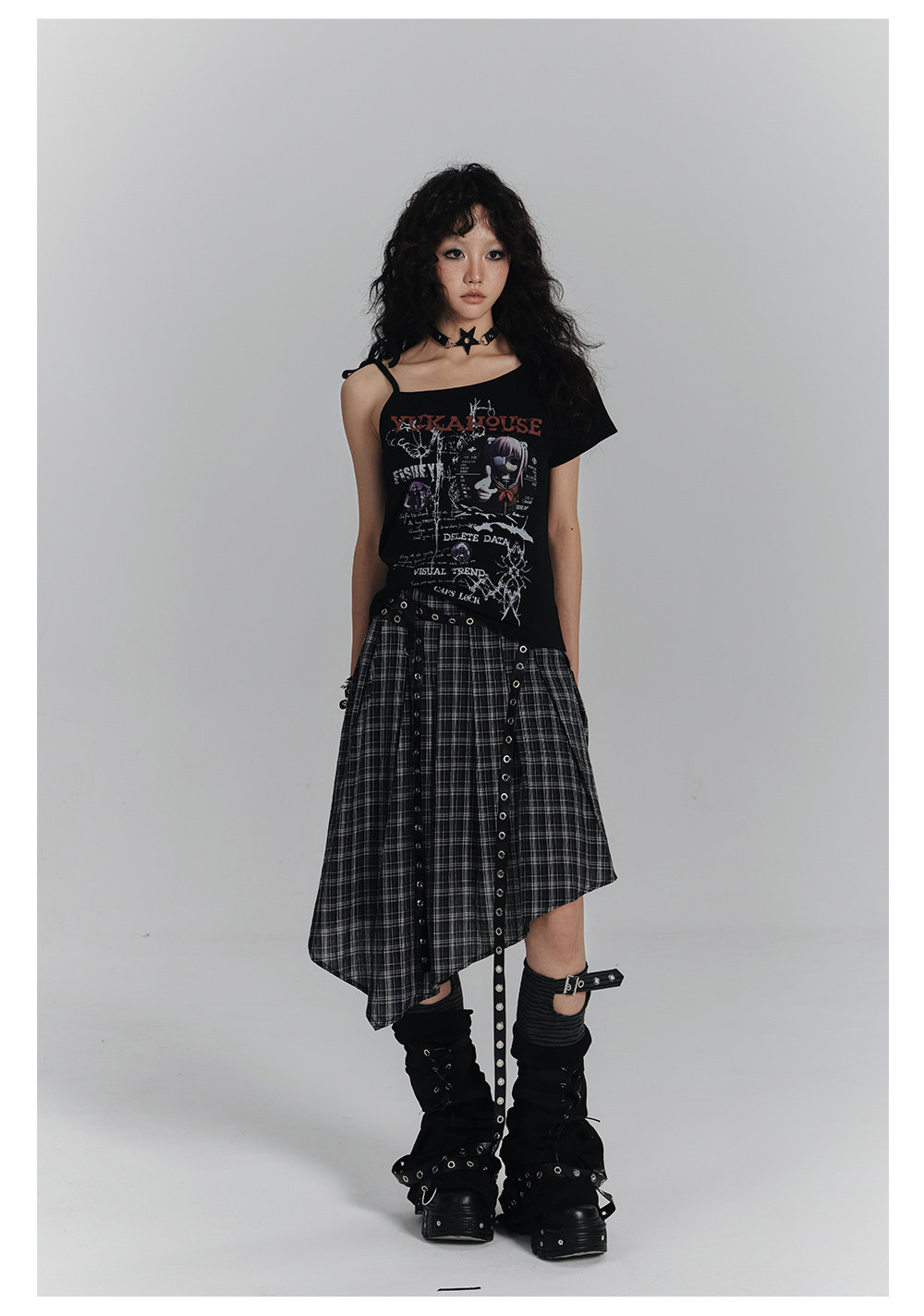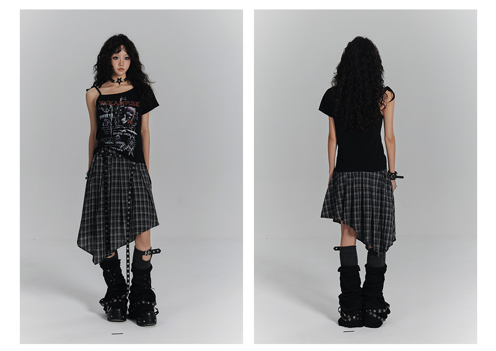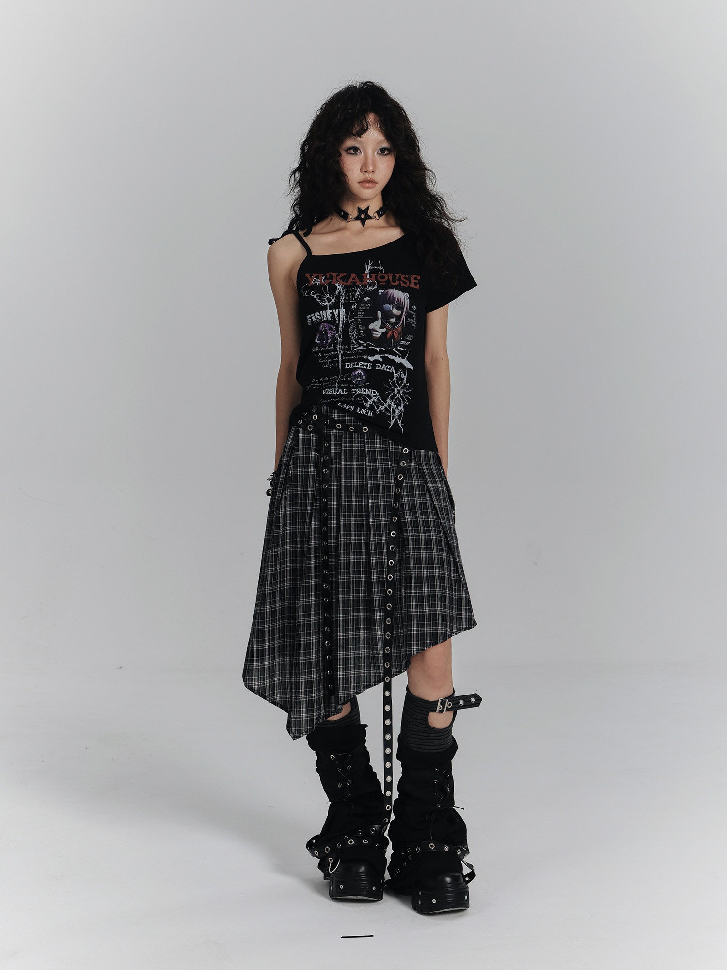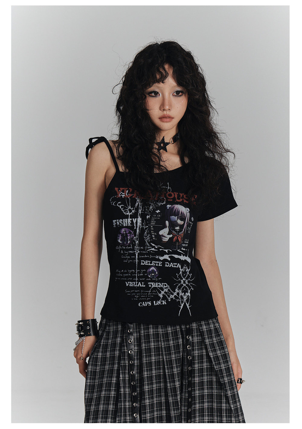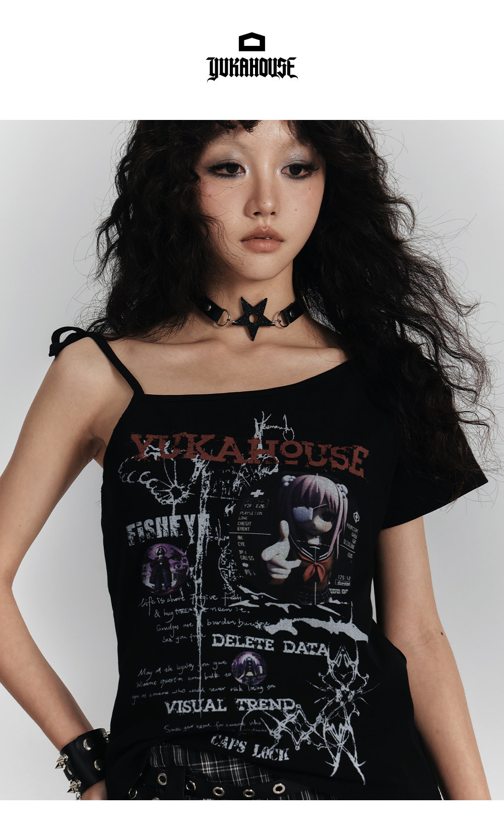 Off-Shoulder Graphic Print Slim Short Sleeve T-Shirt NA9237